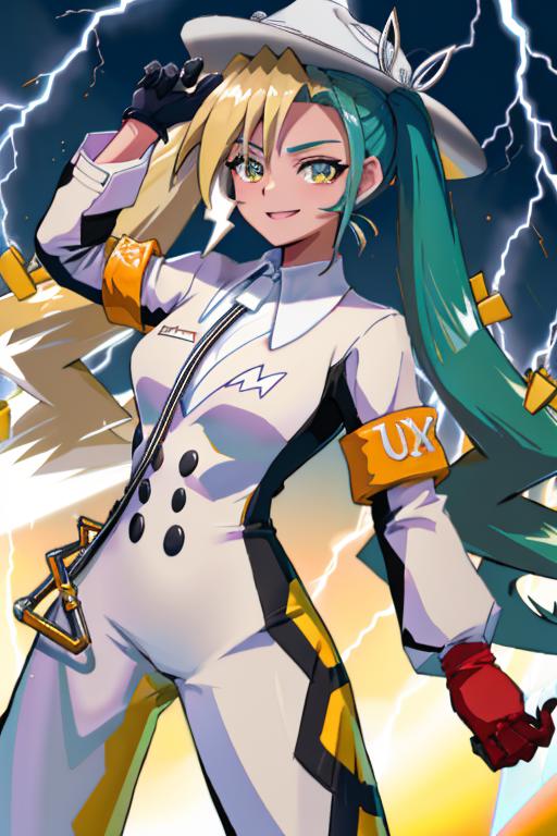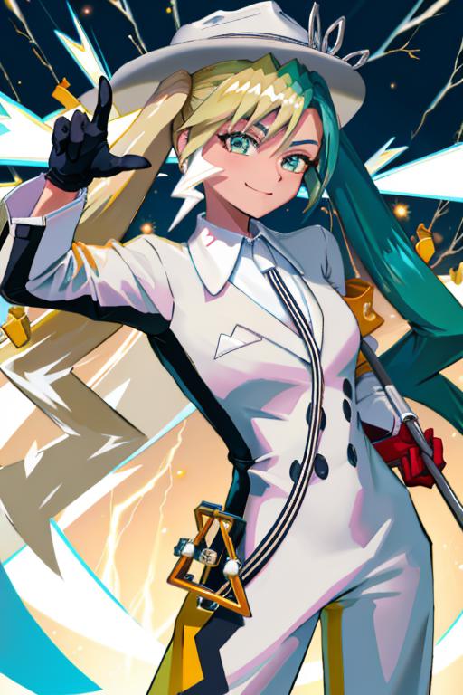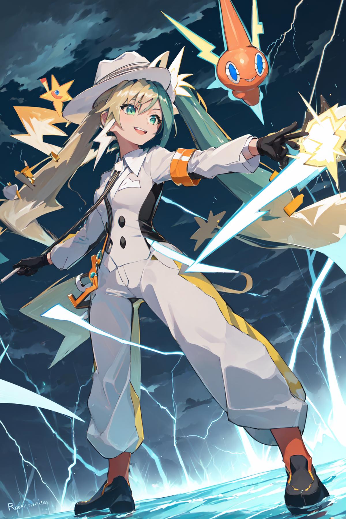 Electric-type Trainer Miku from Pokémon feat. Hatsune Miku Project VOLTAGE.