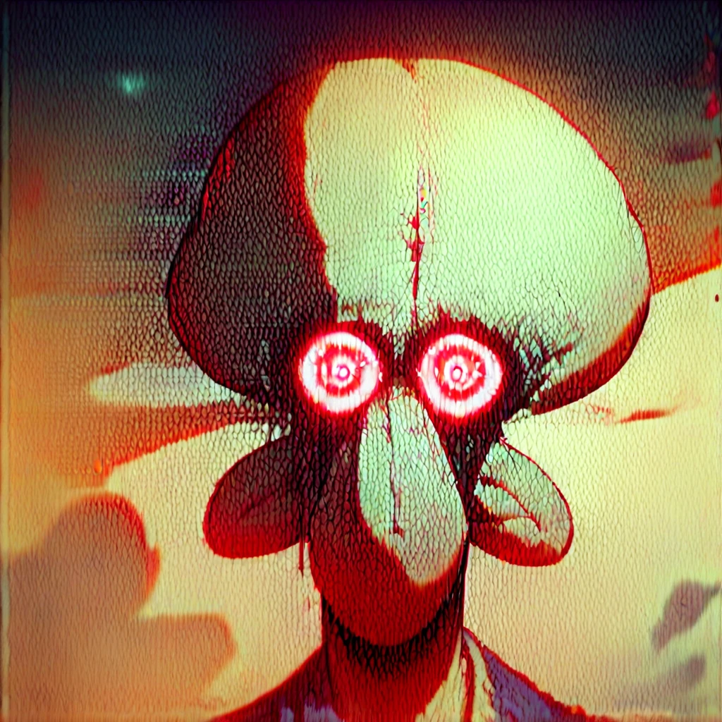 Redmisteyes,red eyes, white eyes, eye glow, black round shadow on eyes,,grainy texture resembling TV static noise