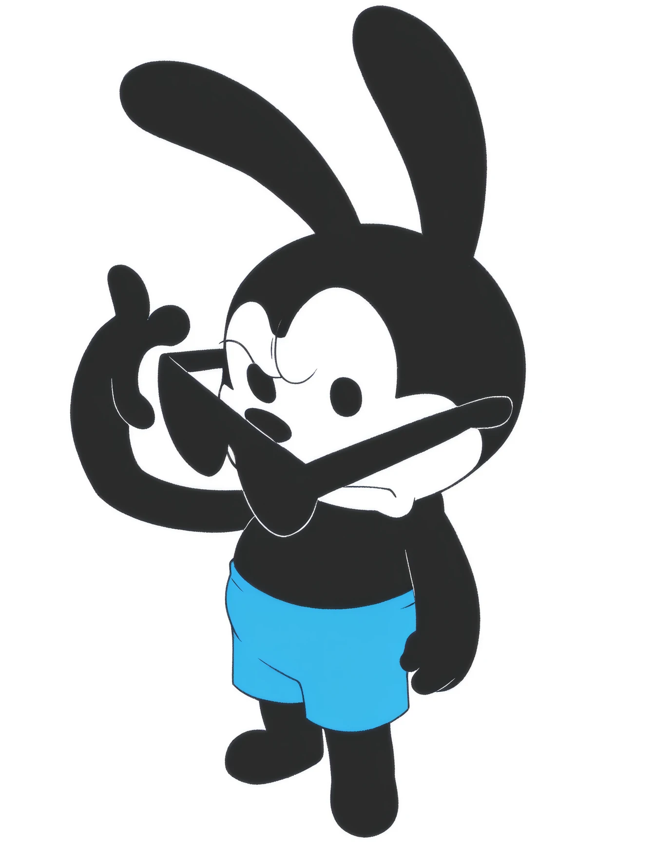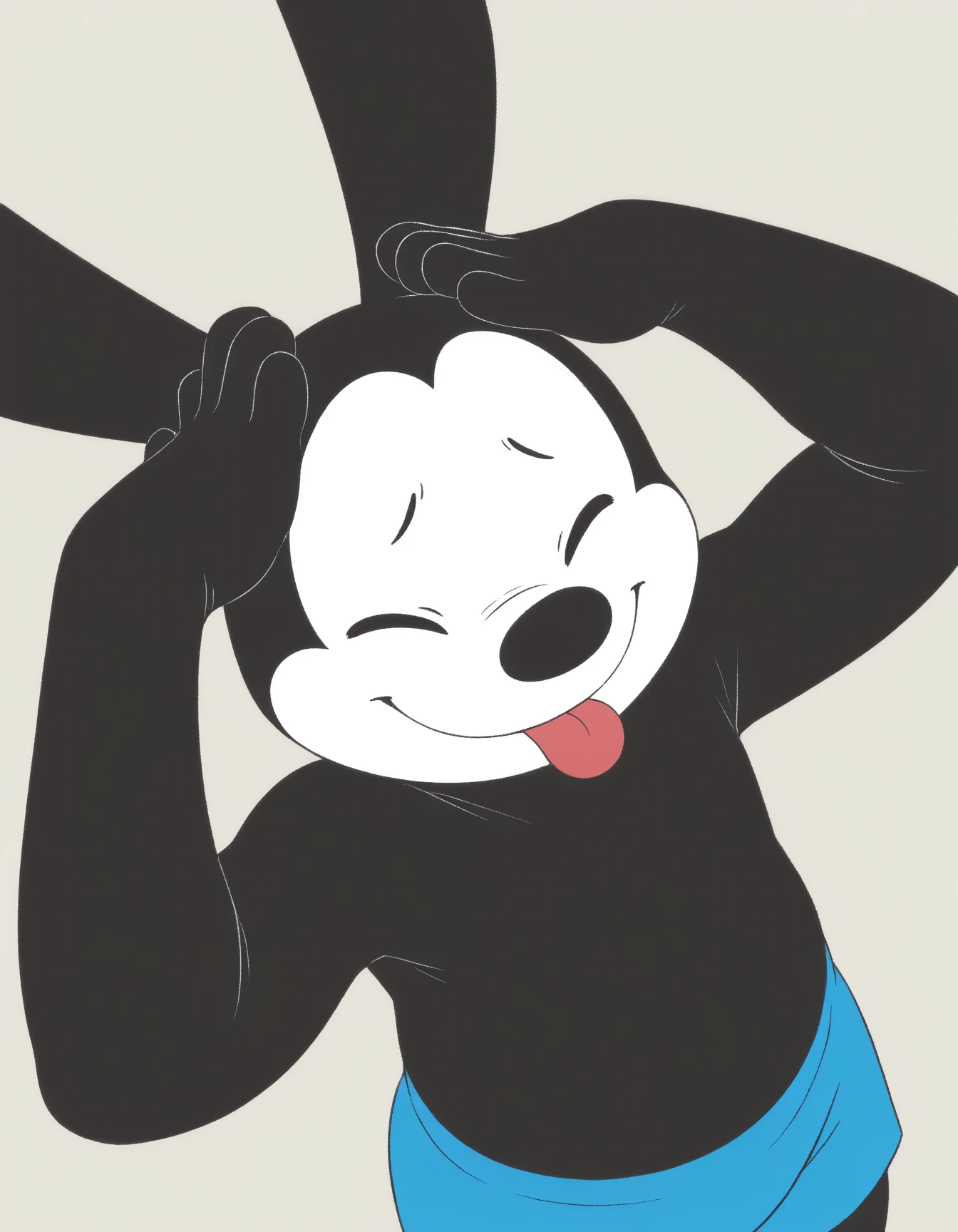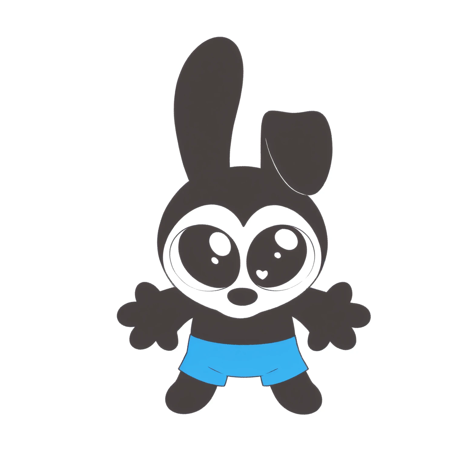 Promt: Oswald, cartoon, male, white face, blue shorts.