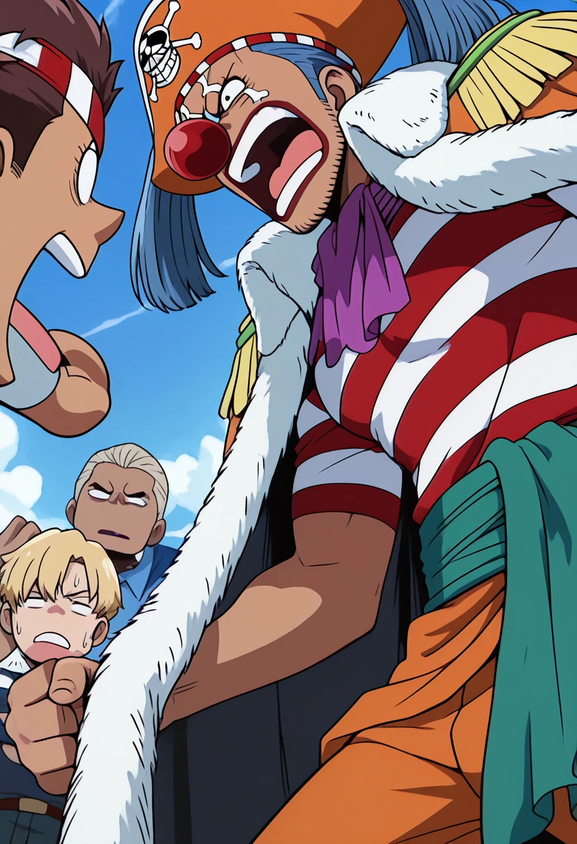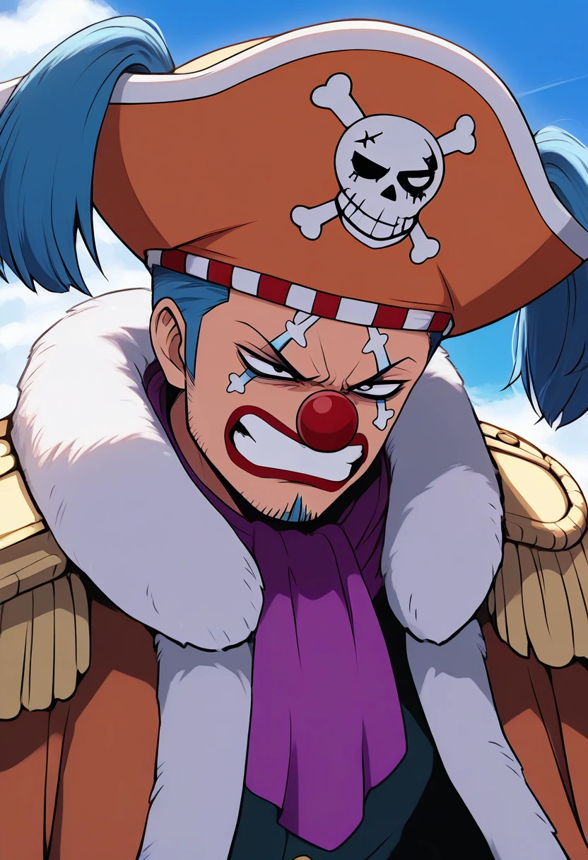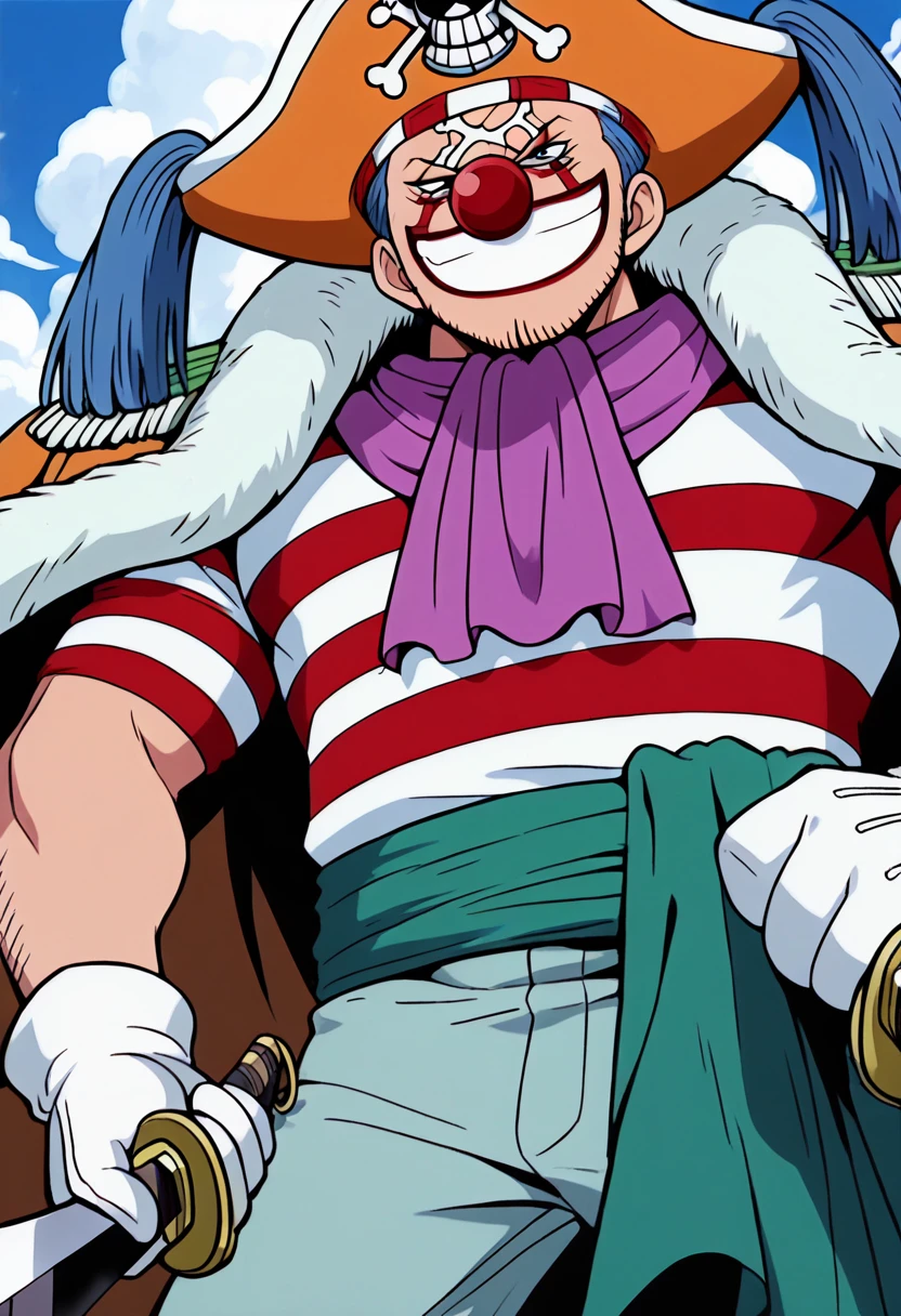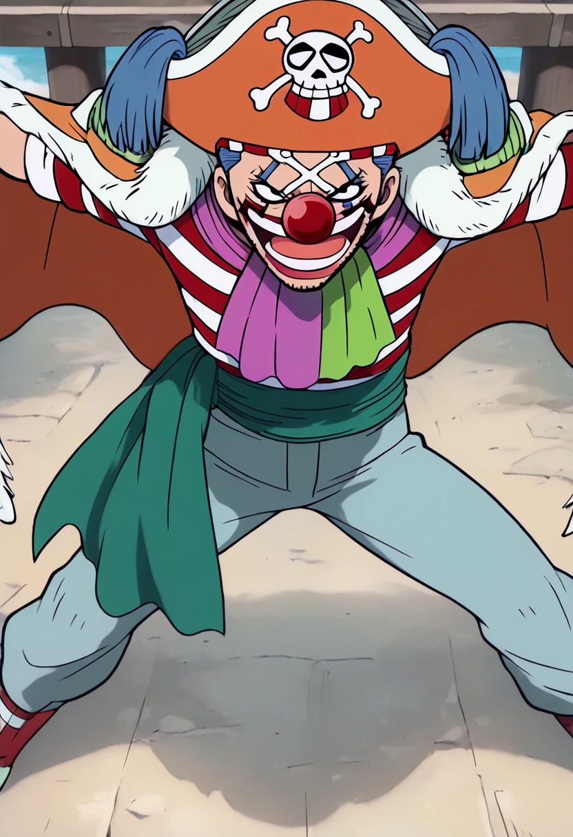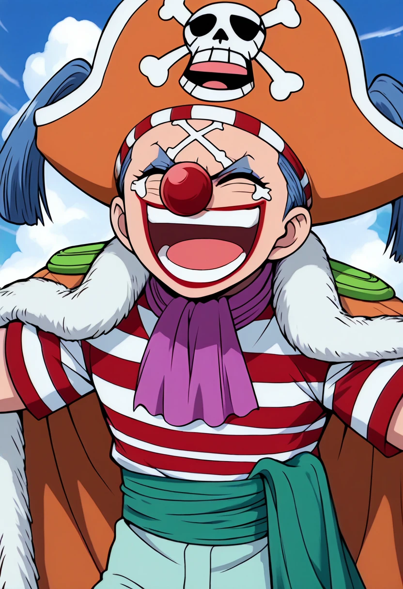 A character LoRa for Buggy the Clown from One Piece. He is the captain of the Buggy Pirates and the main antagonist of Orange Town Arc. His first appearance is in Episode 4 "Luffy's Past! The Red-Haired Shanks Appears" of the anime series. Trained on screencaps of Orange Town Arc only.