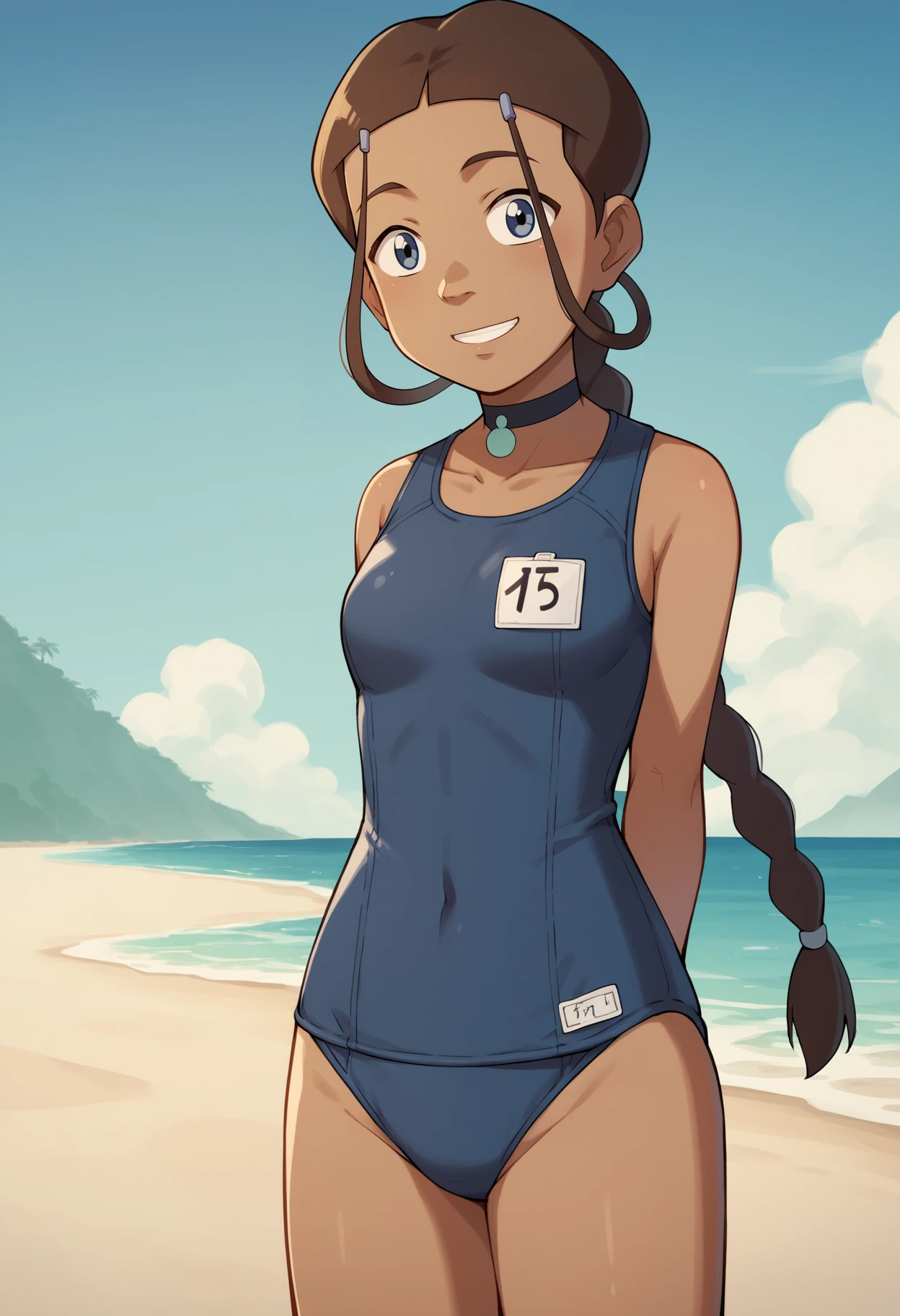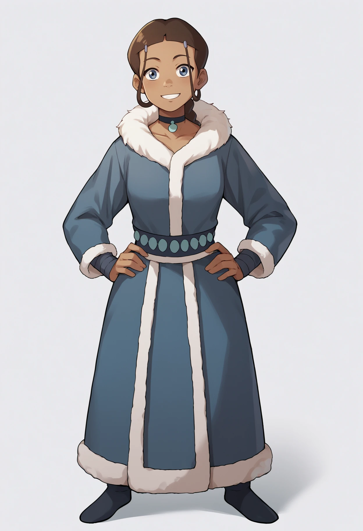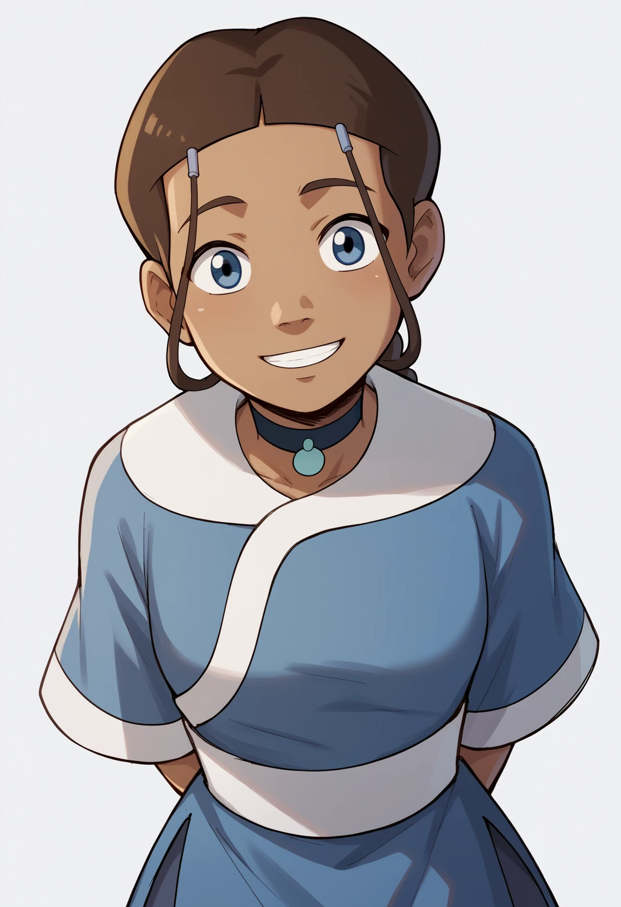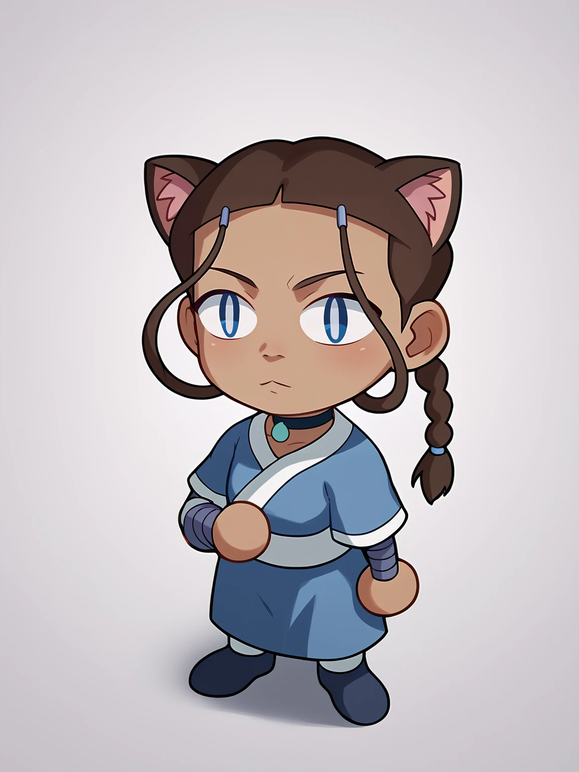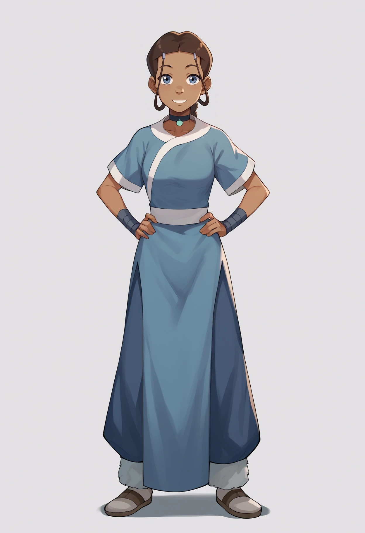 Basic prompts : 1girl, katara, brown hair, braid, blue dress, blue eyes, dark skin, choker