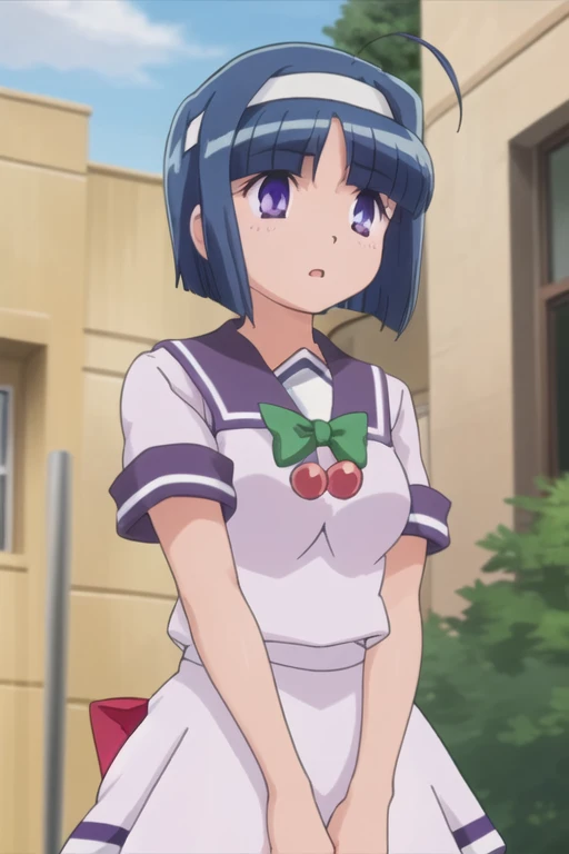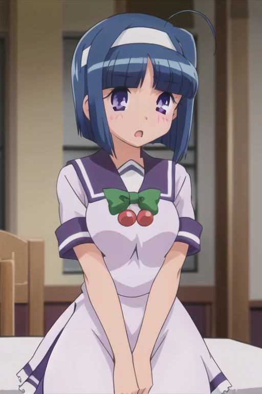 Trigger Words: kannazuki aoi, blue hair, short hair, purple eyes