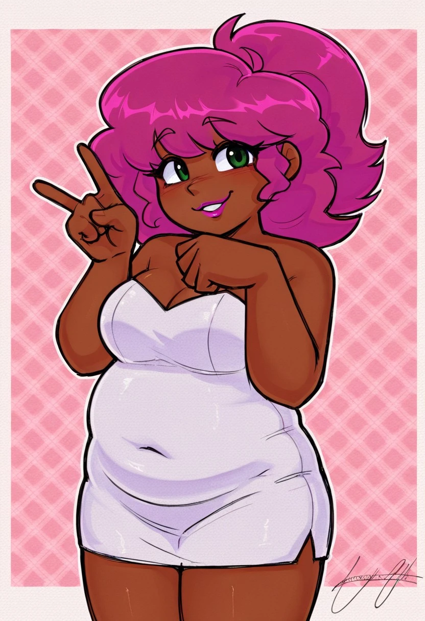 cowboy shot, cute pose, looking at viewer, soft colors, sketch, simple background, pattern background, white border, paper texture