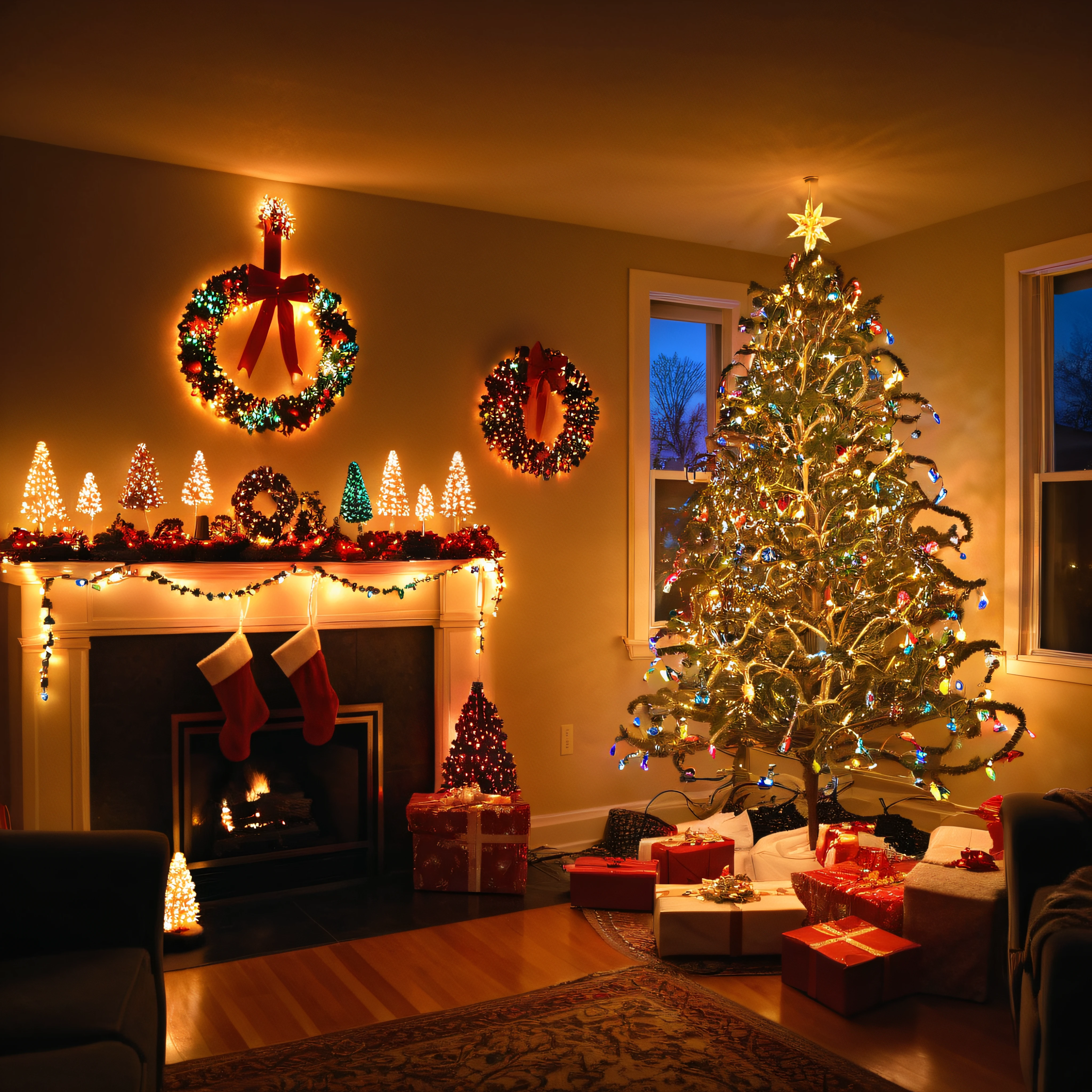 Please just add "christmas lights" (no quotes) to the prompt and it should work. I know its late, but hey, it'll be here next year God willing.