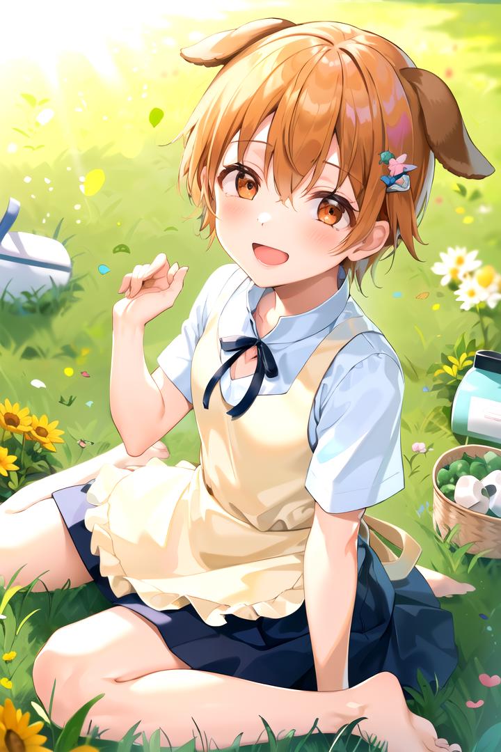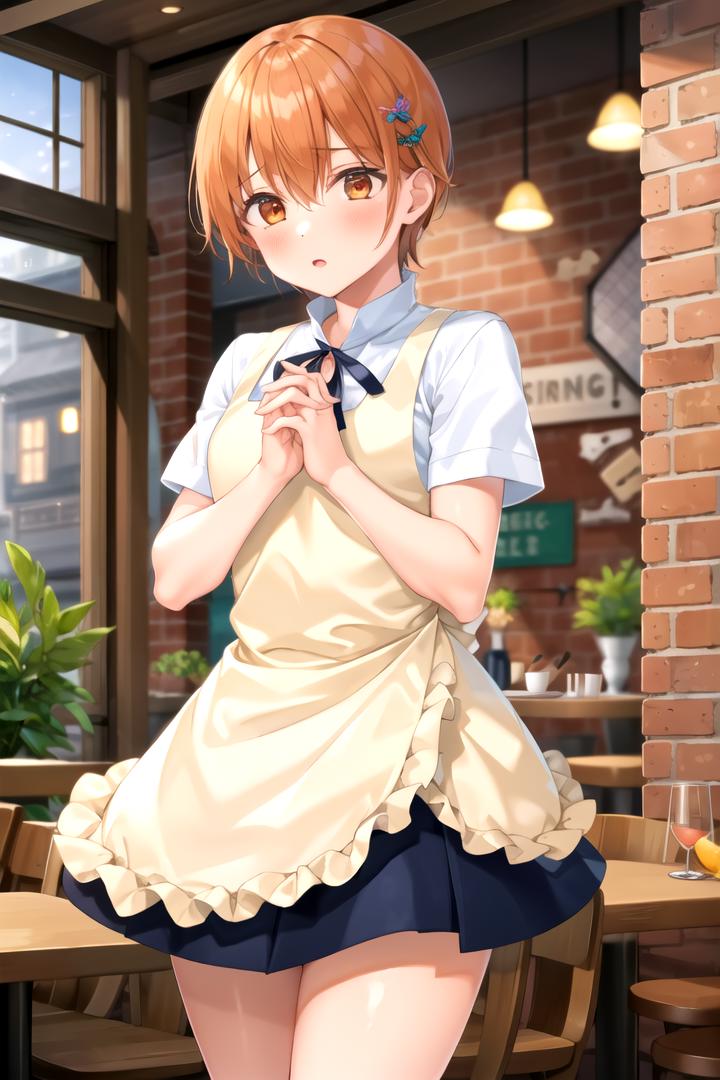 Use white shirt, ribbon, hairpin, apron, skirt for her standart outfit.