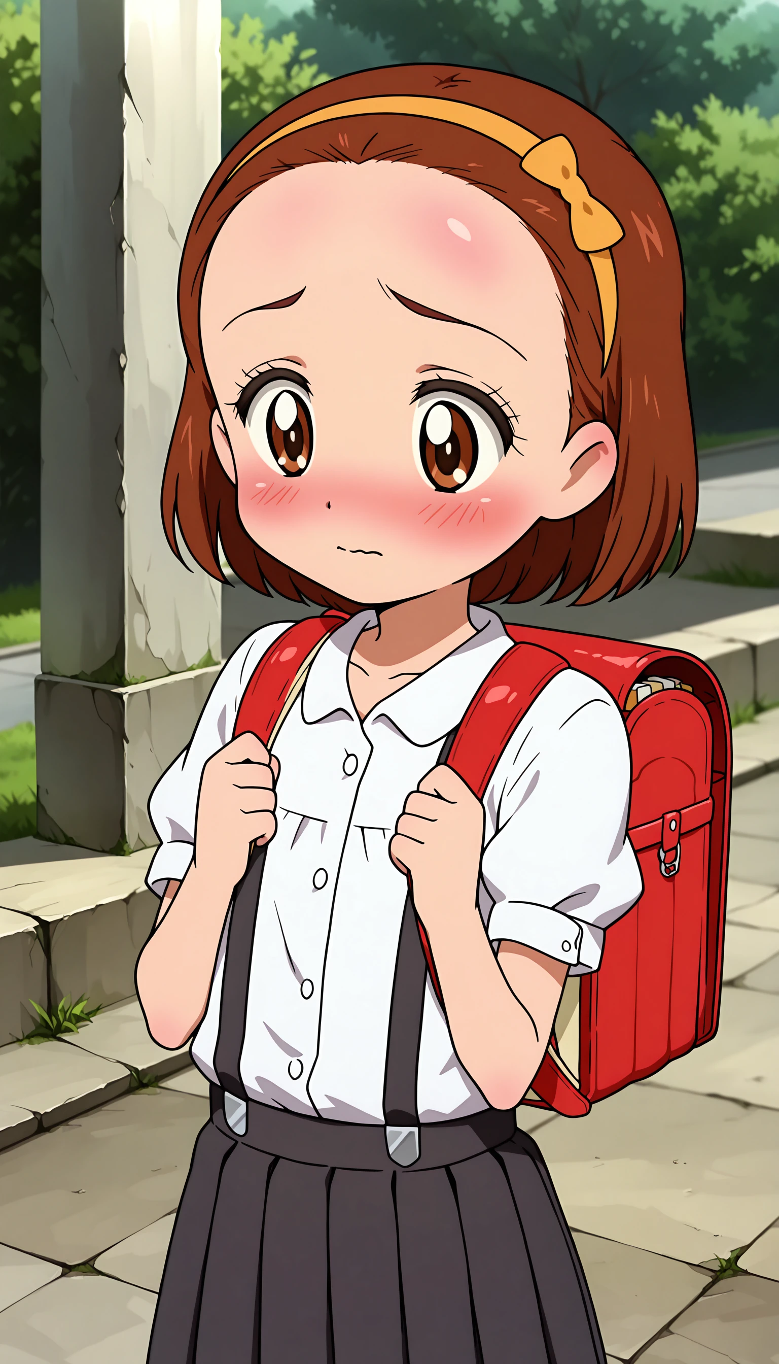 rita rossi,brown hair,brown eyes,hairband,short hair,hair bow,eyelashes,forehead,(child:1.4)