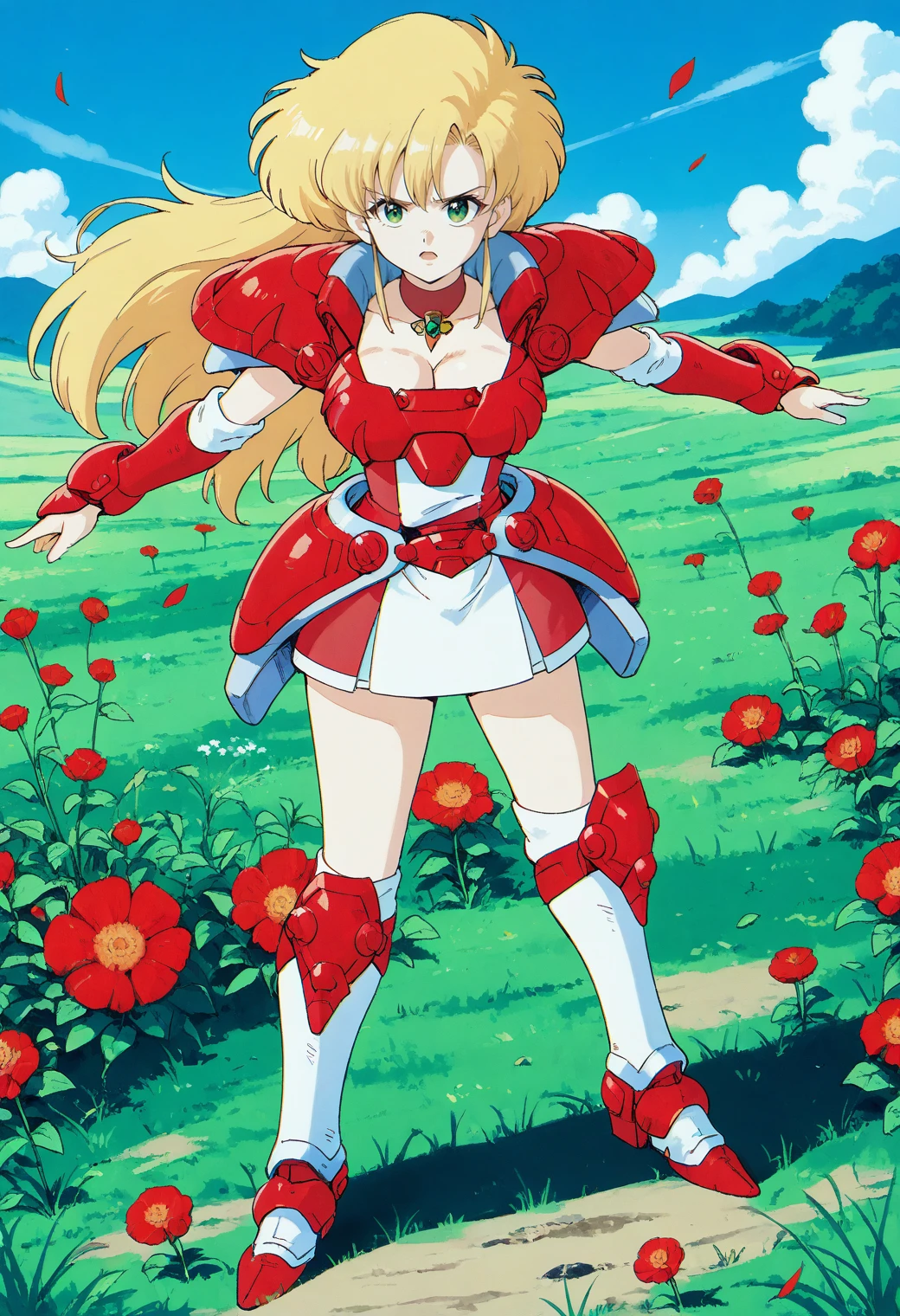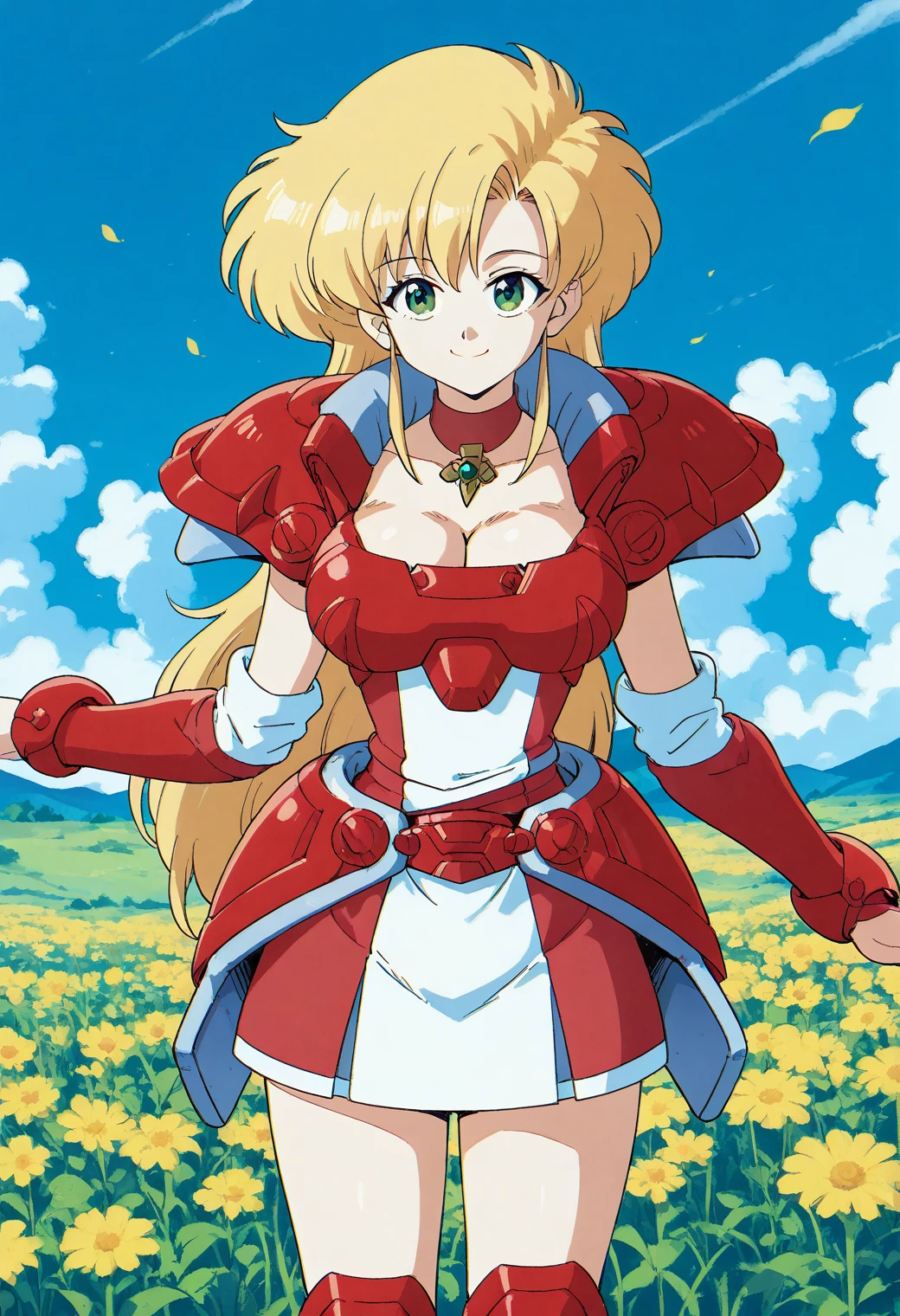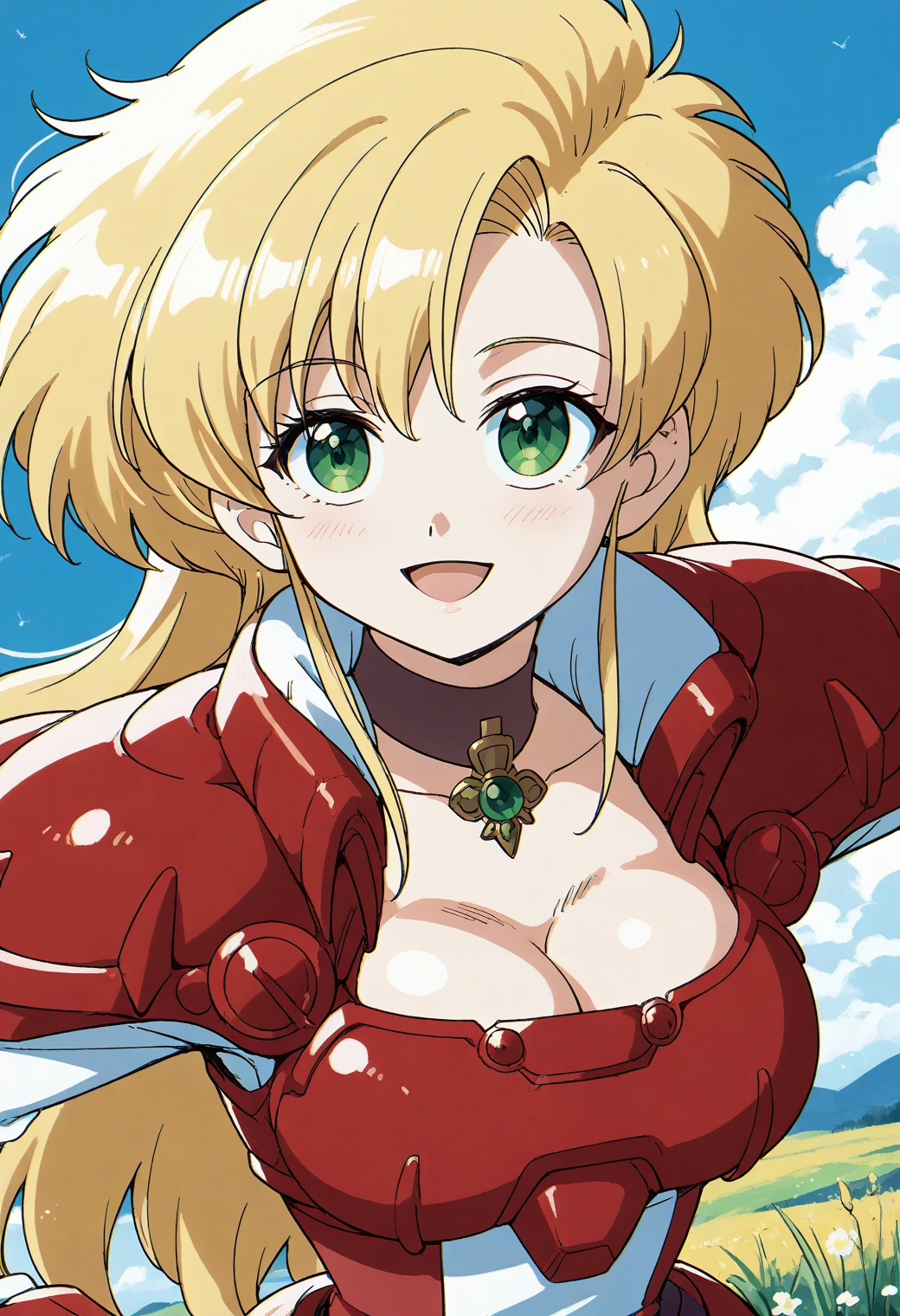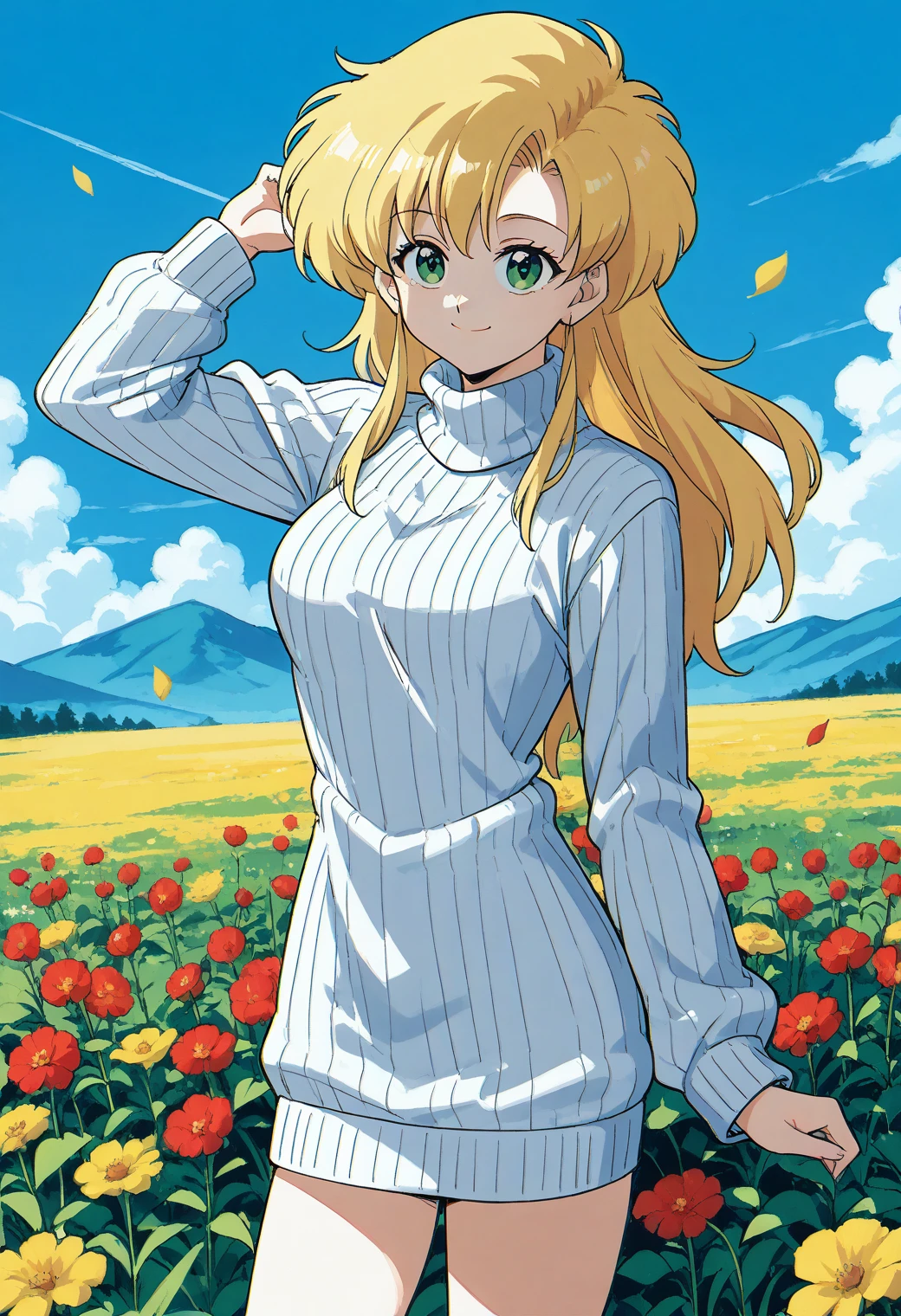 Trigger word: aretha_materia, retro artstyle, green eyes, blonde hair, long hair,