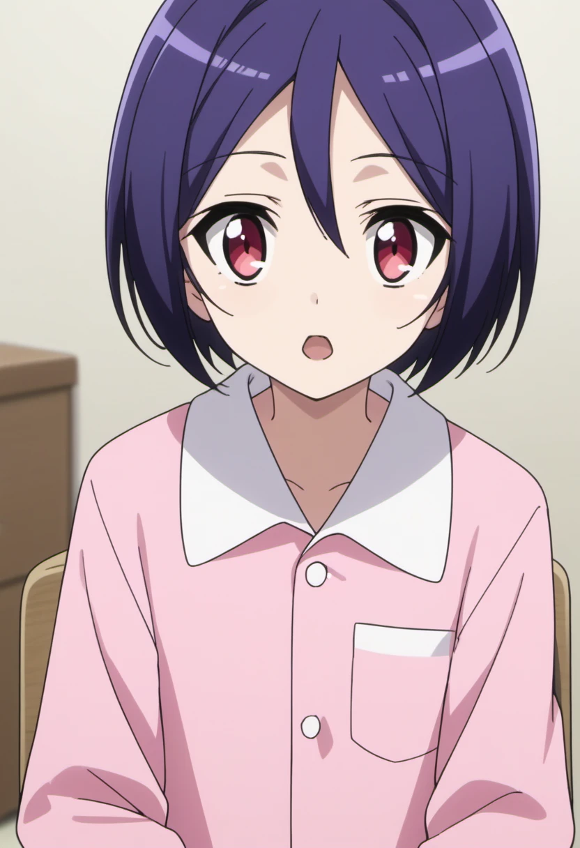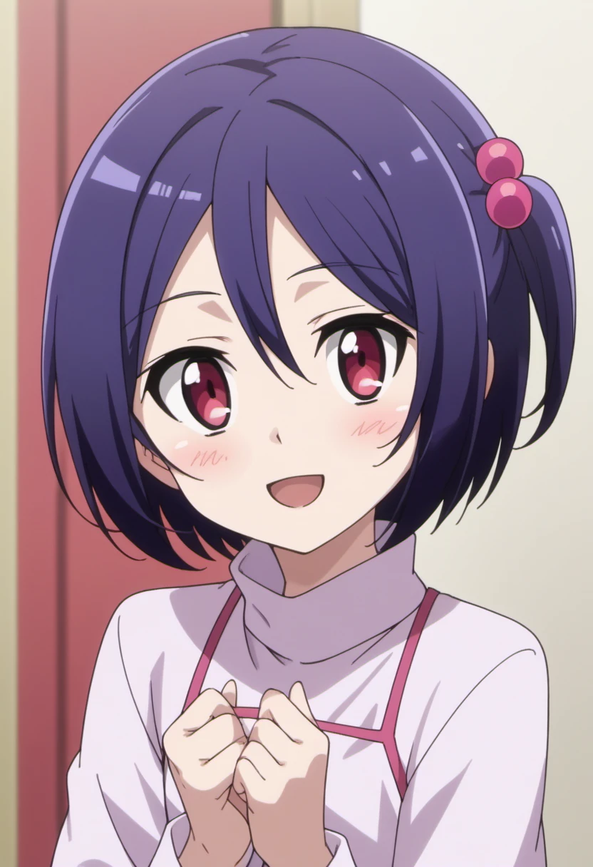 Trigger Words: sakurada shiori, short hair, purple hair, pinkish-red eyes