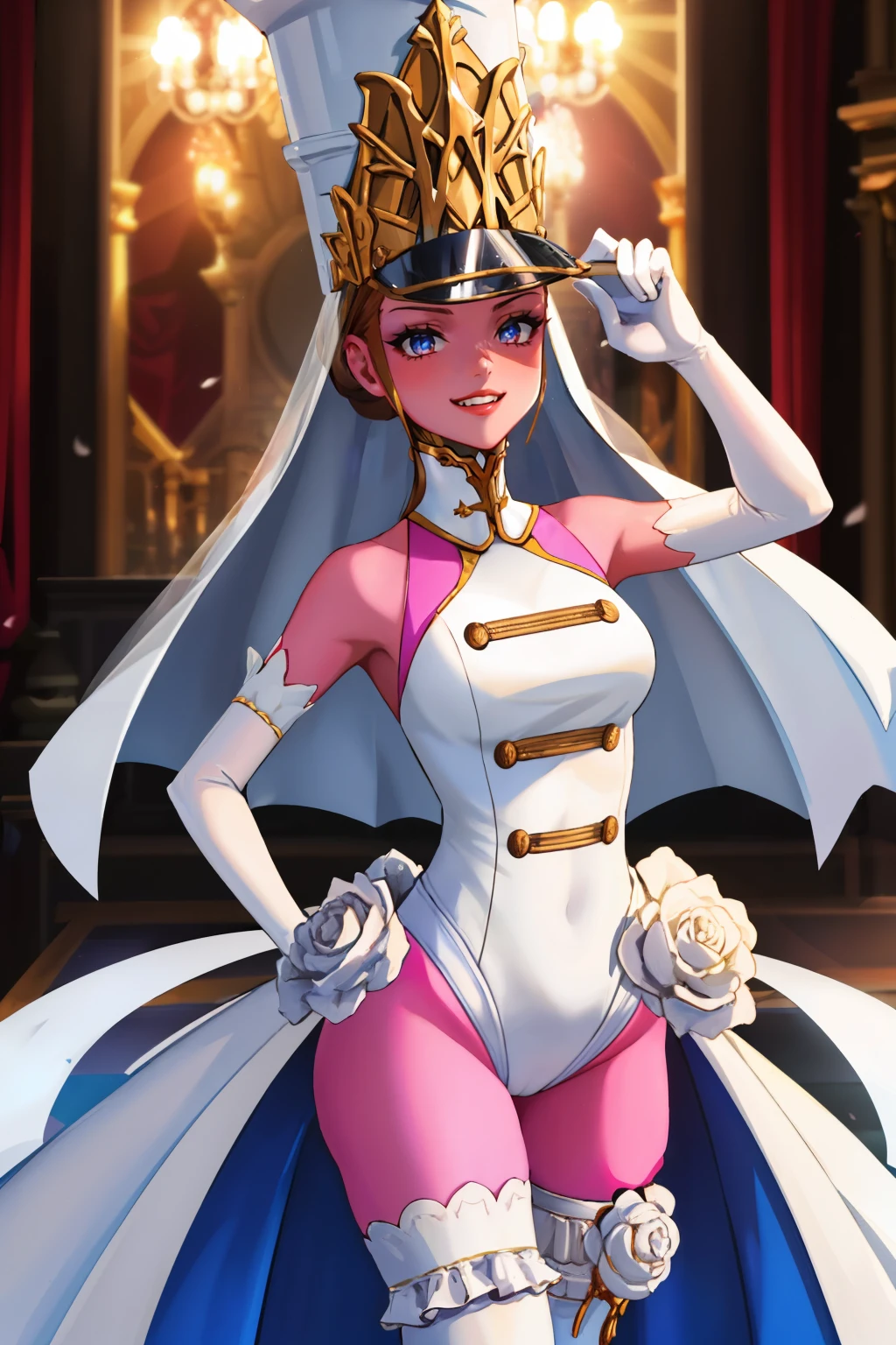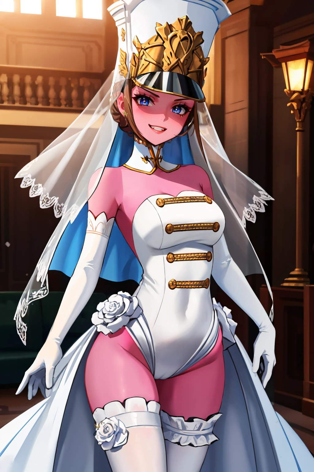 mariep5t, colored skin, hair bun, veil, leotard, wedding dress, thighhighs, elbow gloves