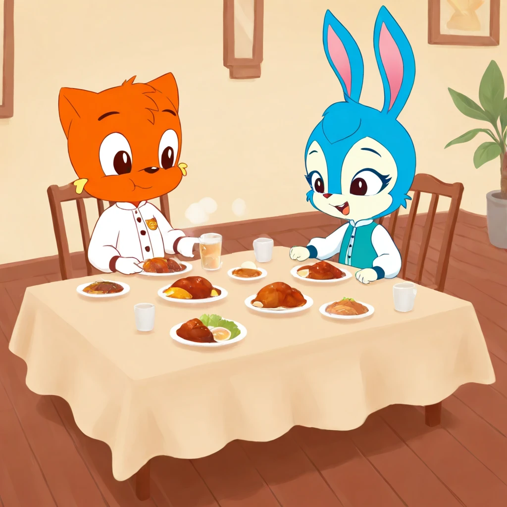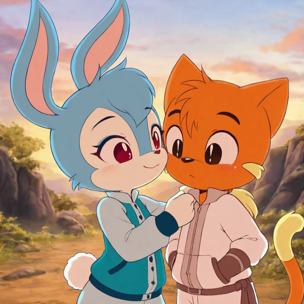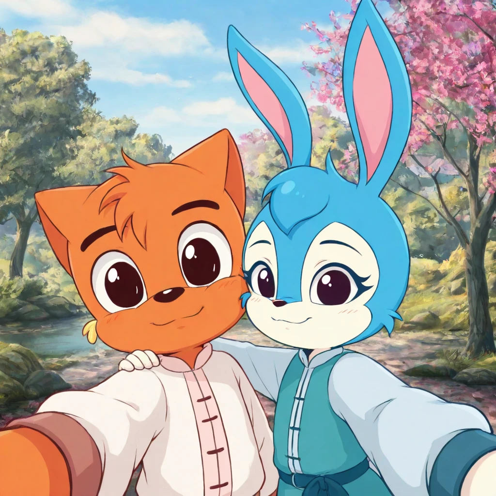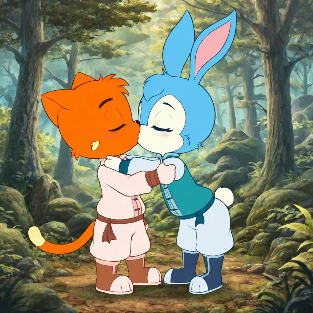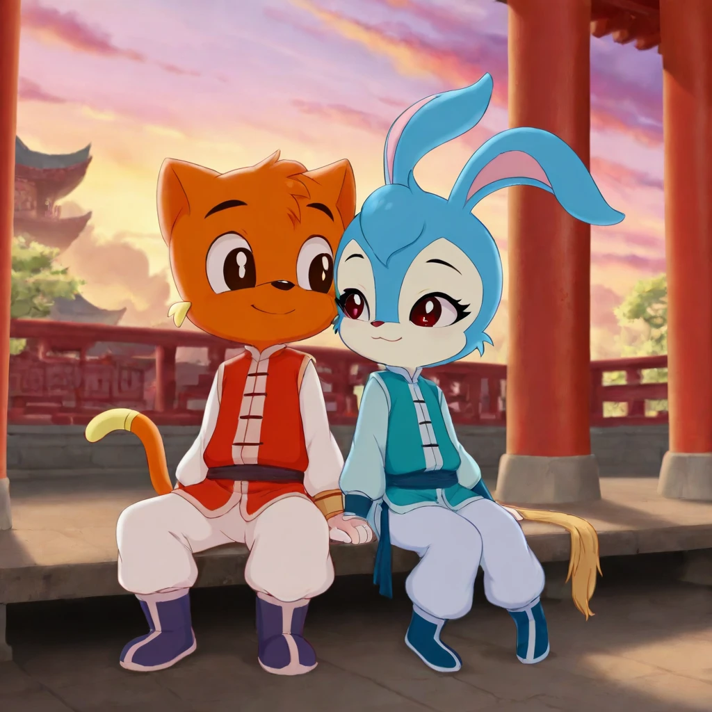 duo, cub, Lantu, Bilibili, bunny, cat, 1girl, 1boy