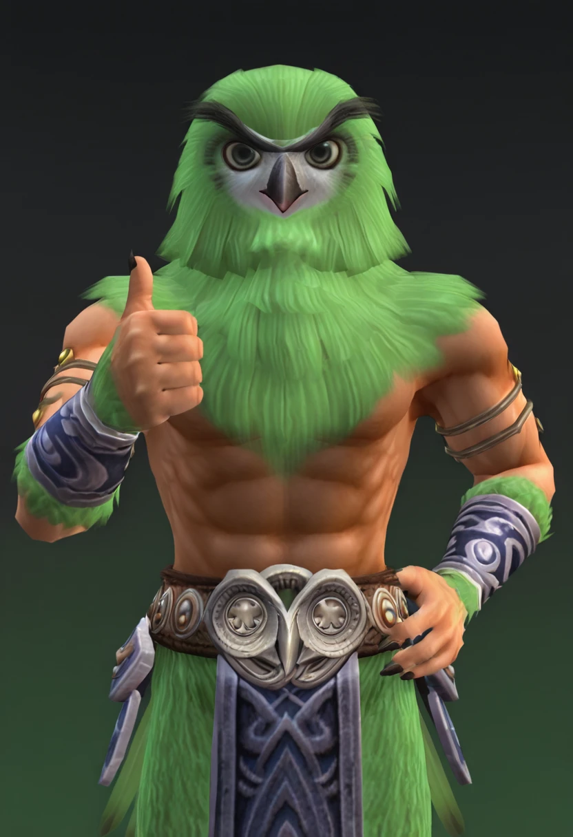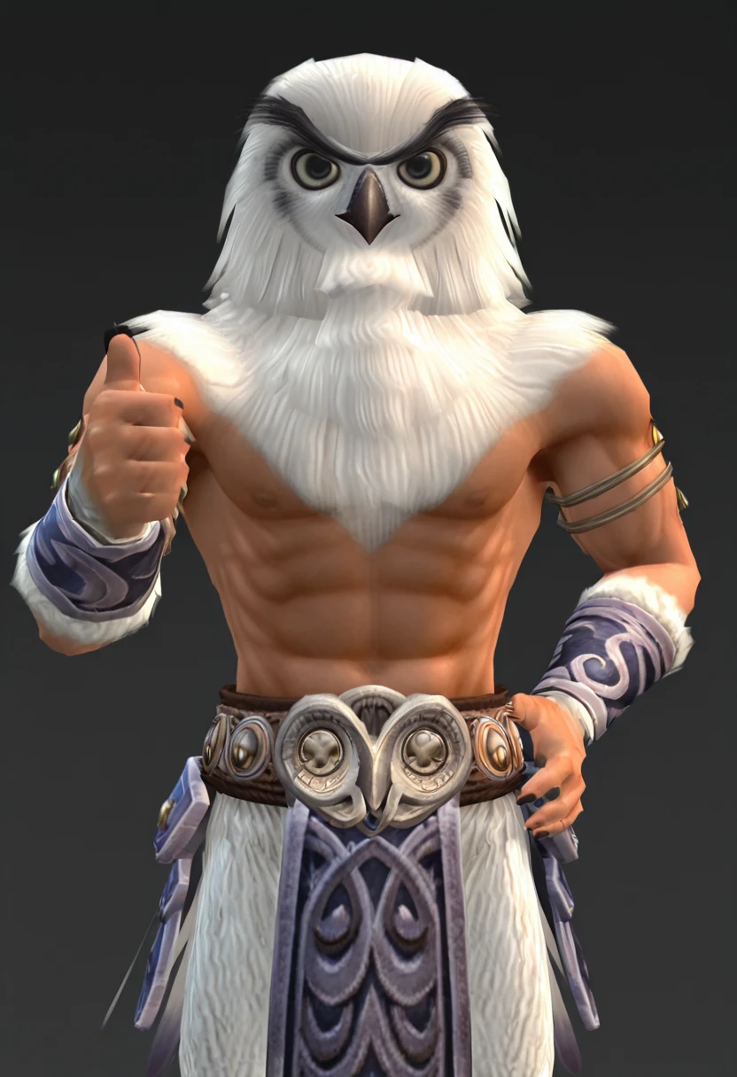 olcadan, 1boy, owl boy, black pupils, beak, feather tail