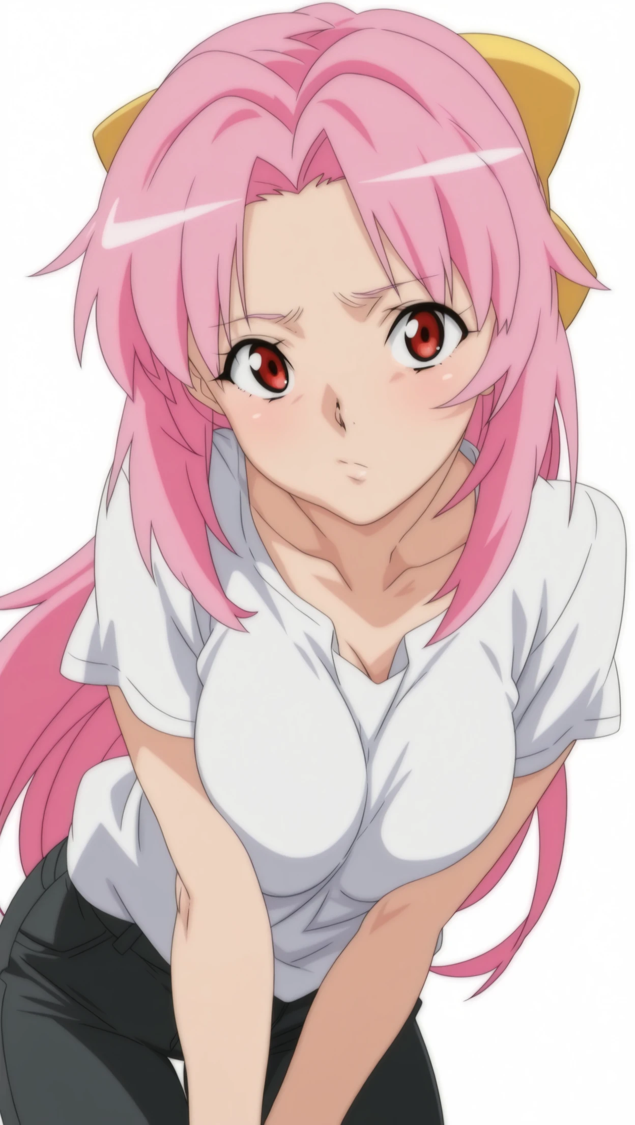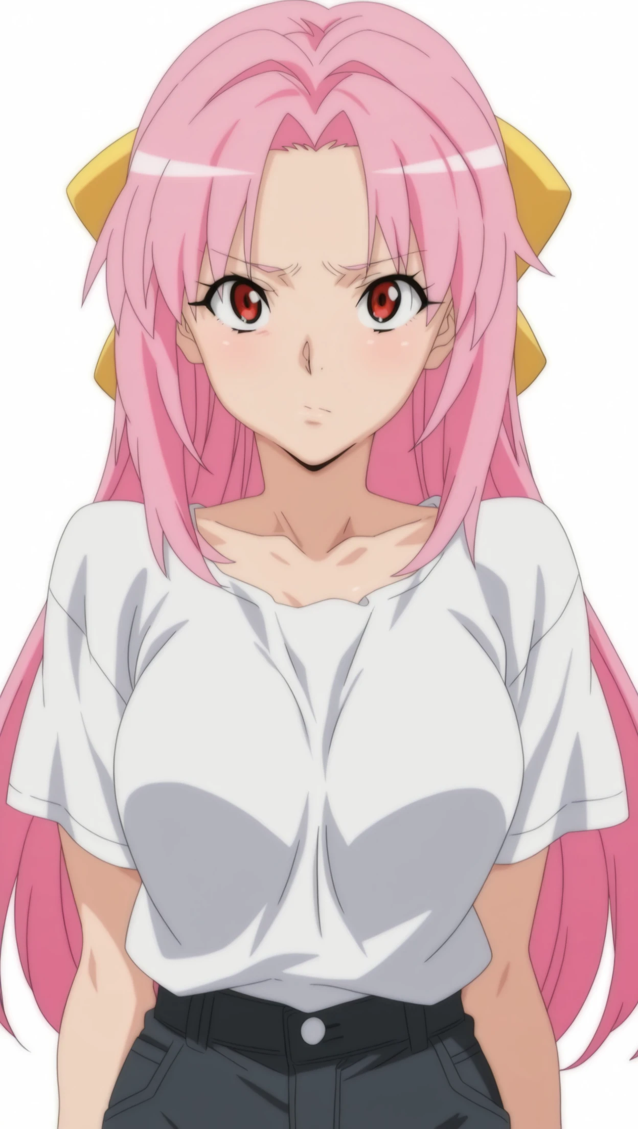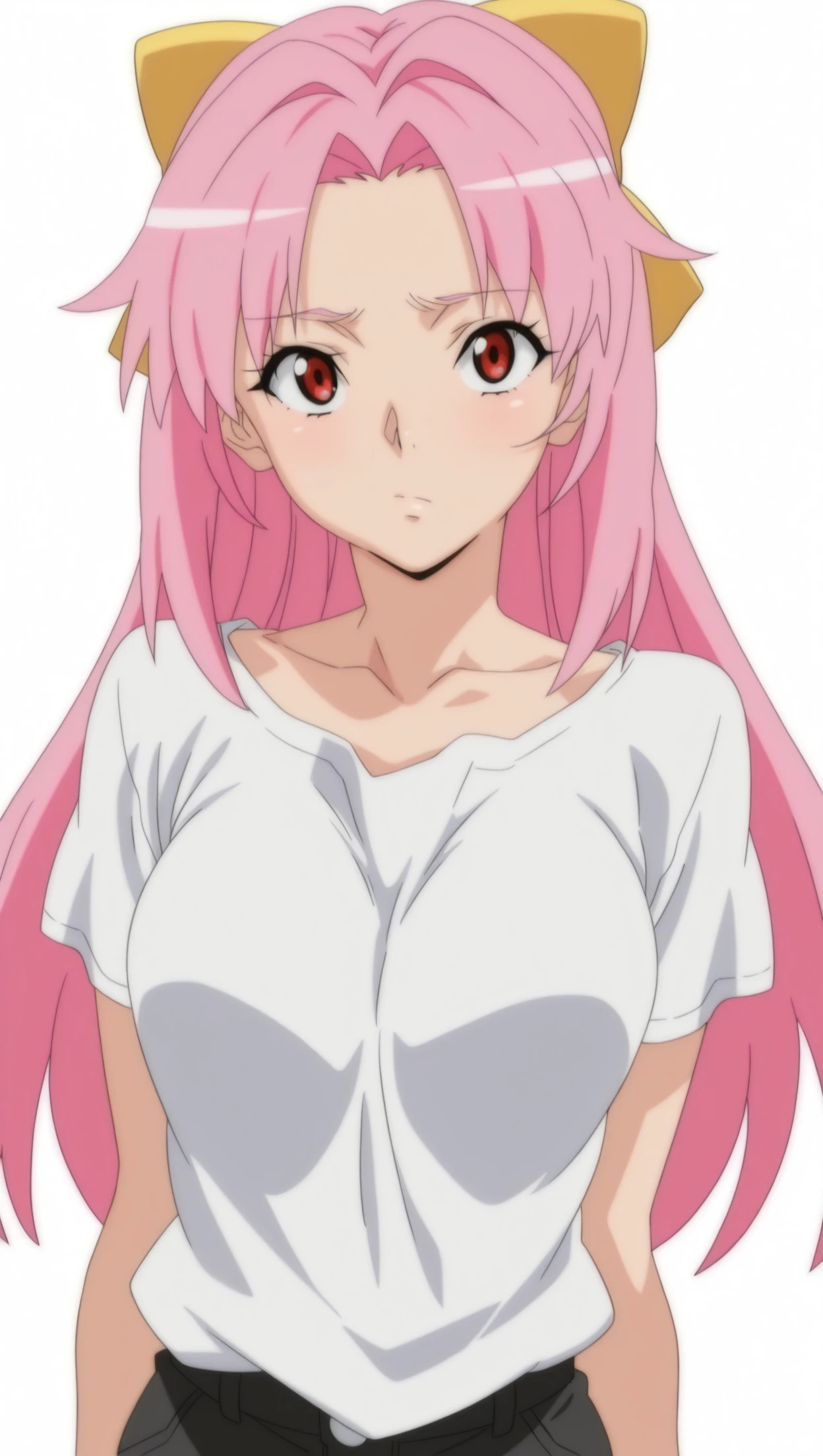 anime coloring, masterpiece, best quality, amazing quality, onoharamikage, 1girl, long hair, pink hair, red eyes, meidum ???????, hair bow, solo, pose, standing, looking at viewer, from front, ((((white background, simple background))))⚙️ Generation Settings