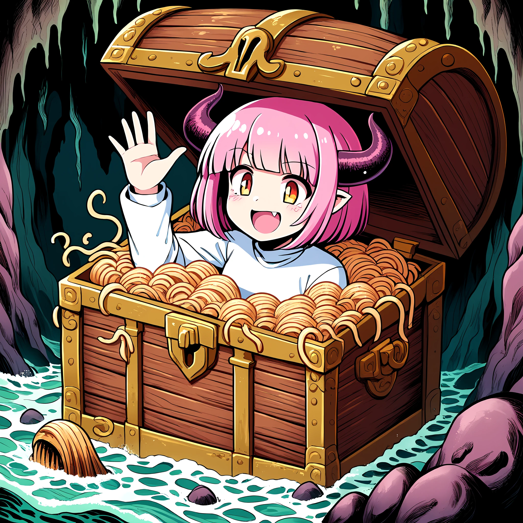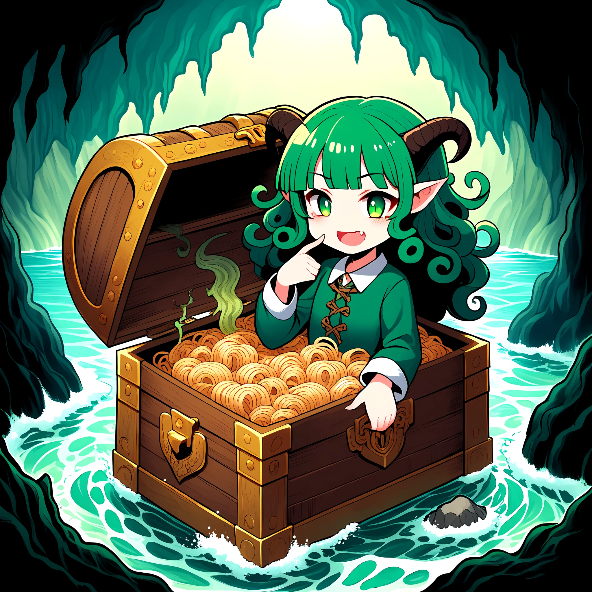 To protect these precious treasures from thieving hands, a cunning churchwarden summoned a creature's in the form of a treasure chest, equipped with sharp teeth and a wide tongue.