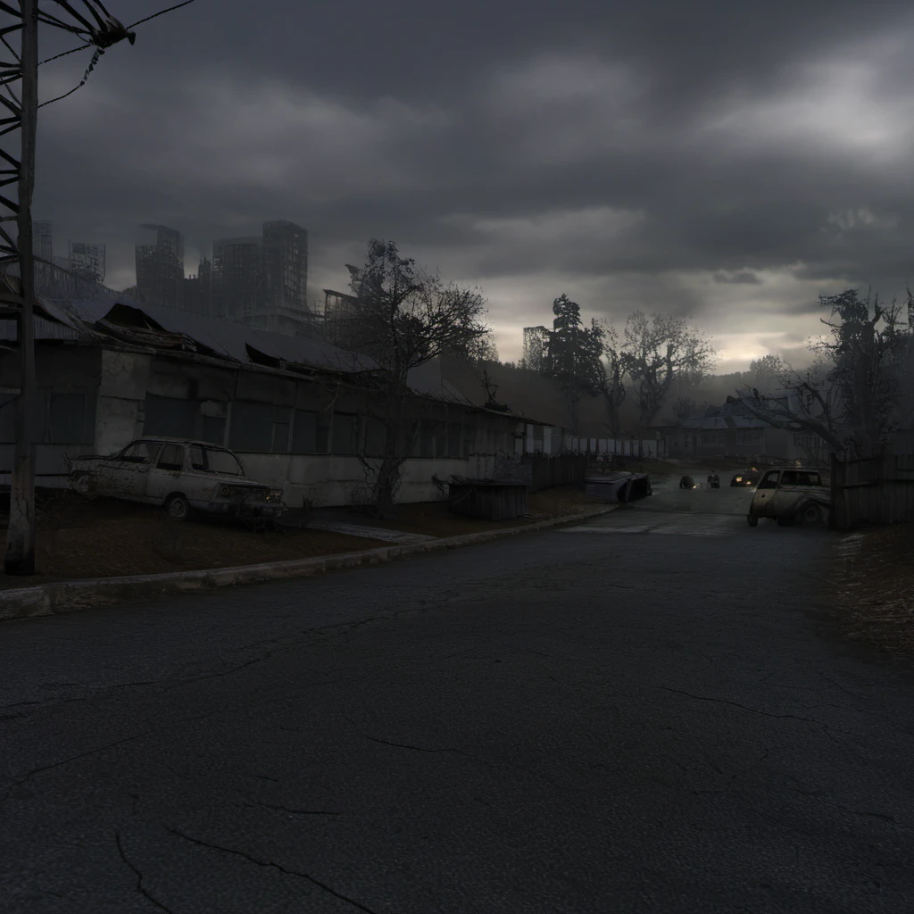 no humans, car, motor vehicle, ground vehicle, tree, scenery, road, outdoors, sky, cloud, building, street, window, cloudy sky, house,
