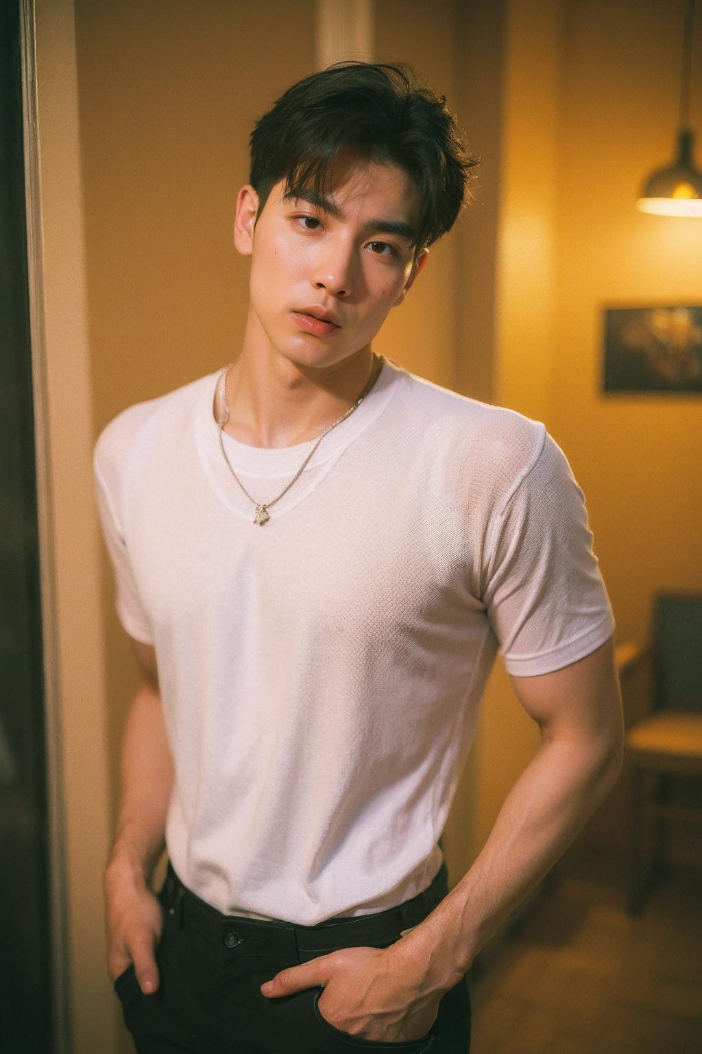 Positive words: Best Quality, Masterpiece, Ultra High Resolution, (Realisticity: 1.4), Original Photo, Cinematic Lighting, 1boy,