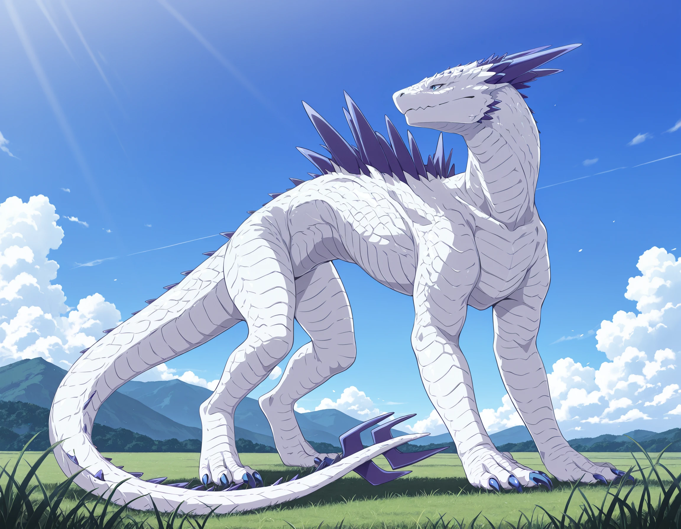 shimo, spike, white scales, scales white body, color claws, tail