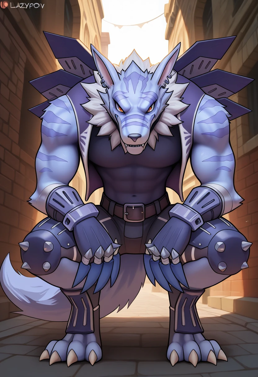 Supports nudity and NSFW. The tag "topless" helps to remove his vest. After testing numerous epochs, this one has a sweet enough spot with minimal feature bleeding.
