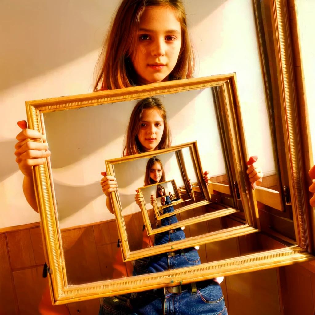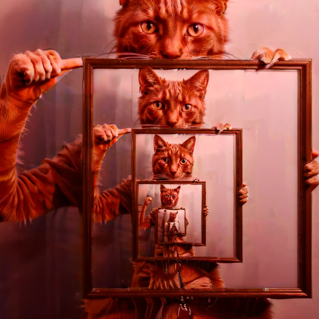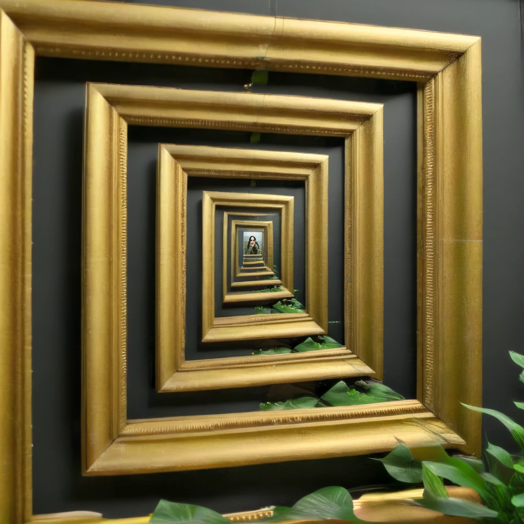 This time is no different; the model was supposed to create frames with a repeated image inside them. It's quite unpredictable (often creating illustrations of men or women holding the frame, sometimes completely ignoring the prompt). So, the flexibility of the model is quite specific; sometimes it does something completely different than what we wanted. We have some influence on this by changing its weight (I tested from 0.6 to 1.4) and selecting different base models.