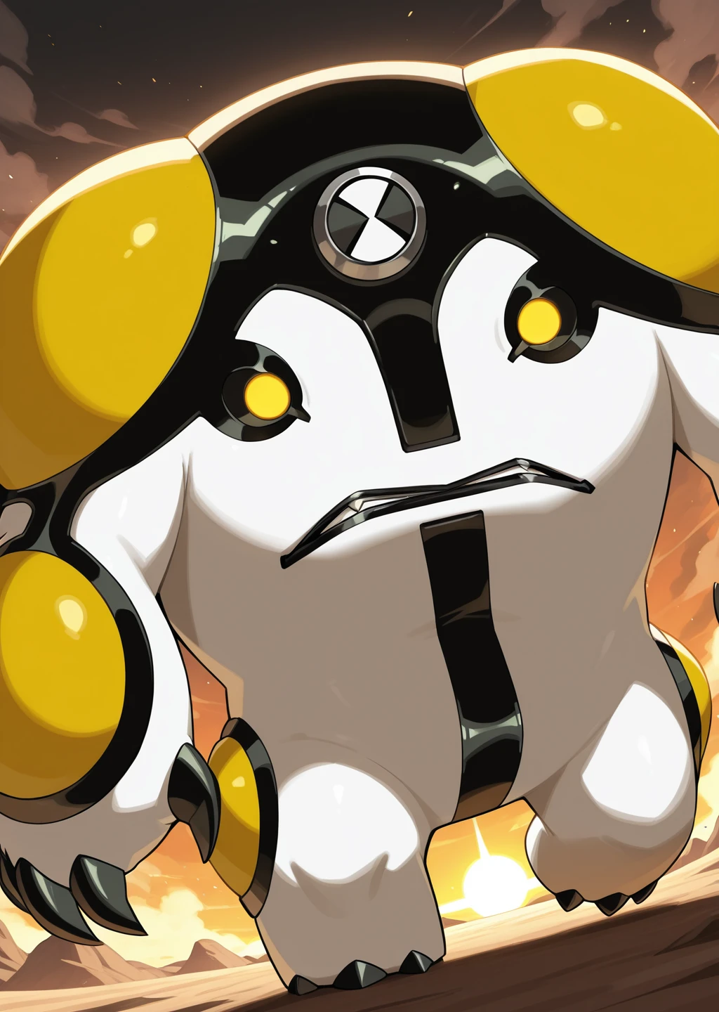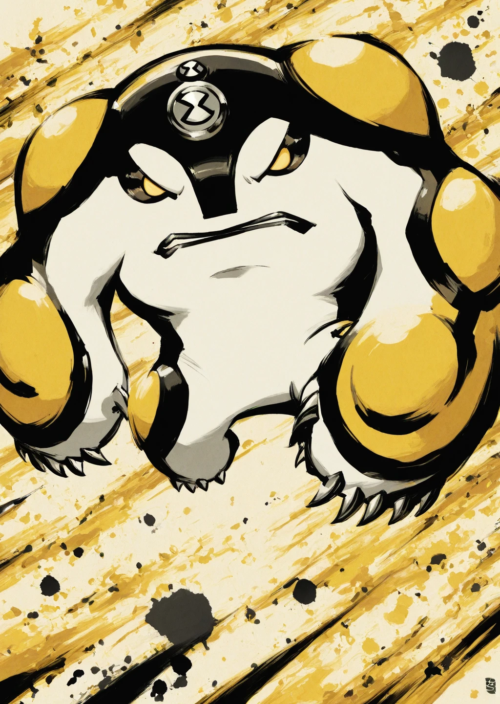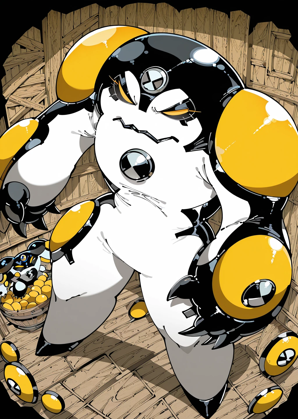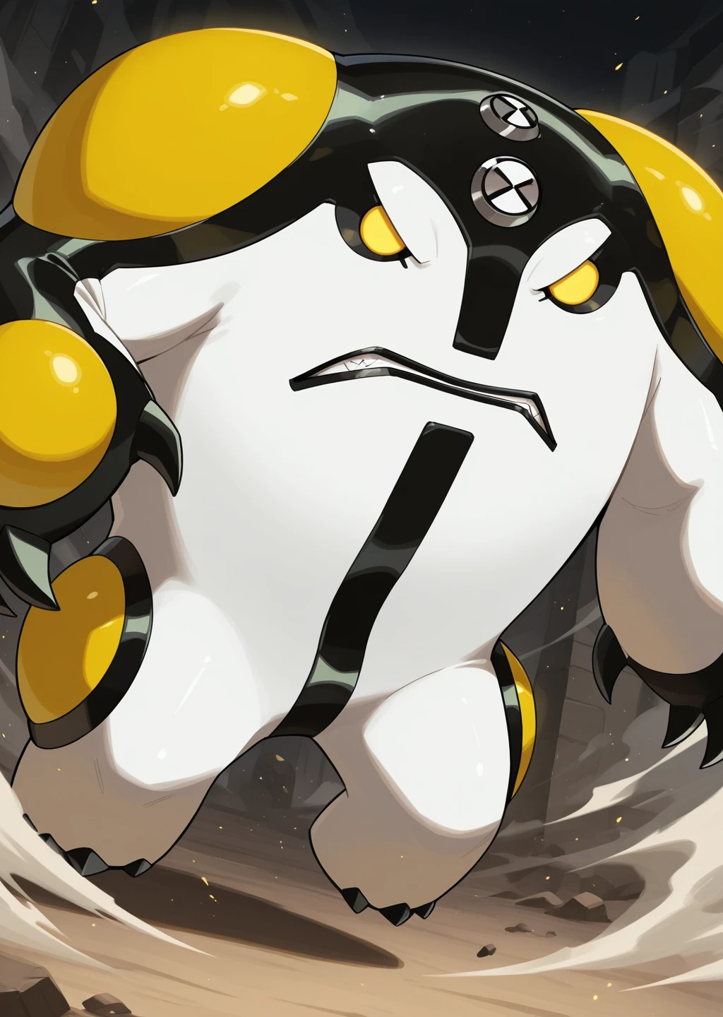 cannonbolt, yellow eyes, creature, black and white skin, yellow orbs, armour, black lips,