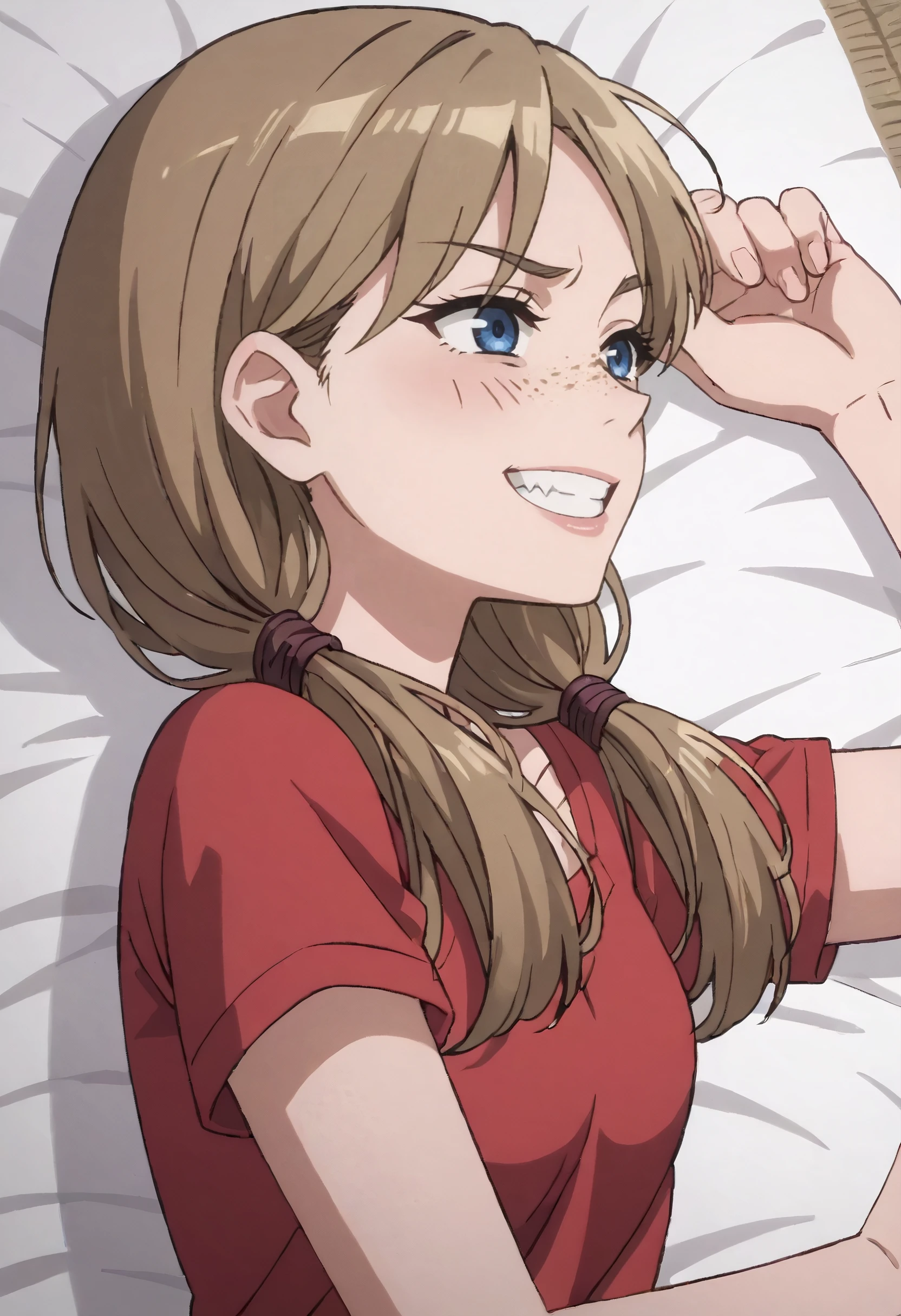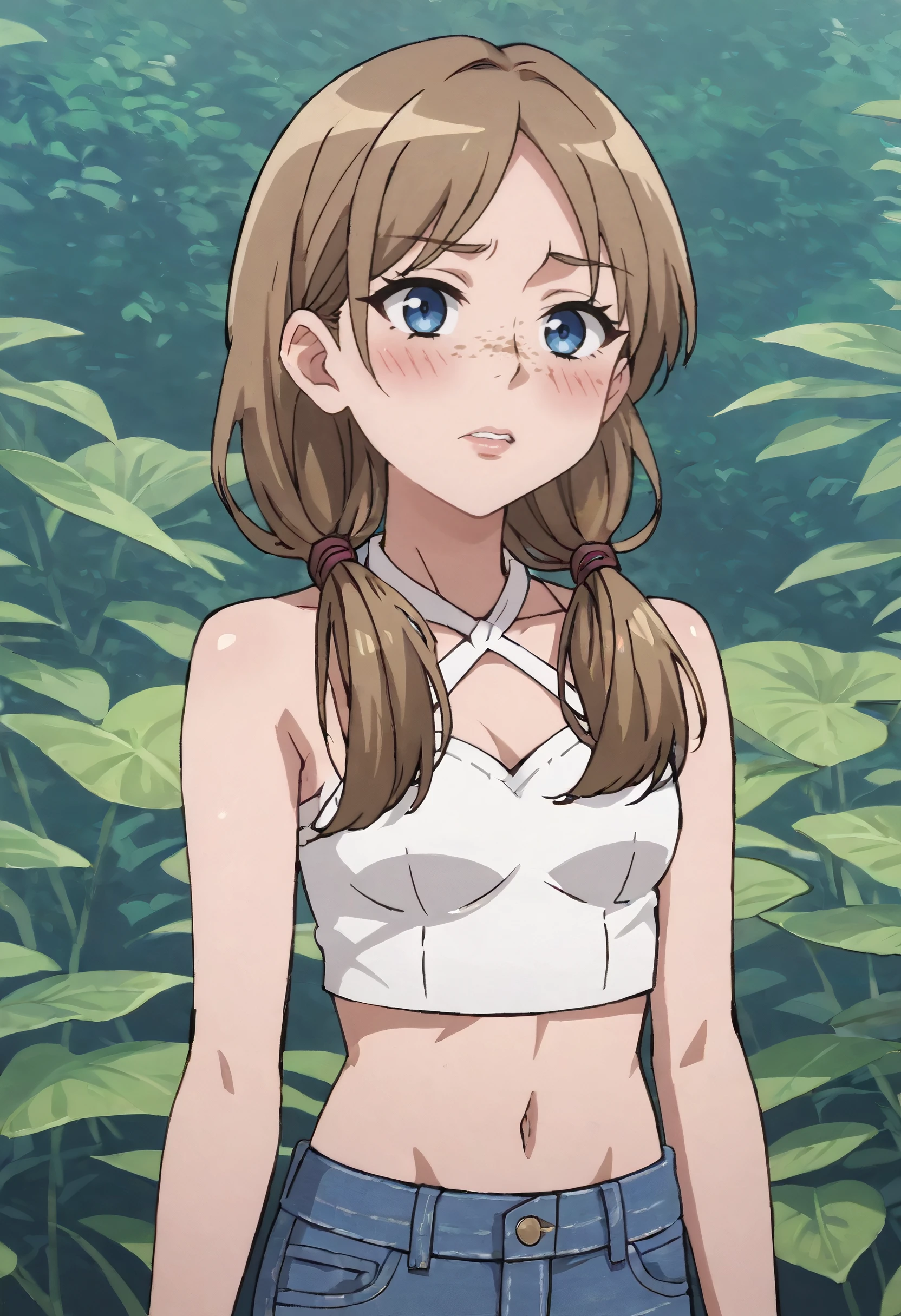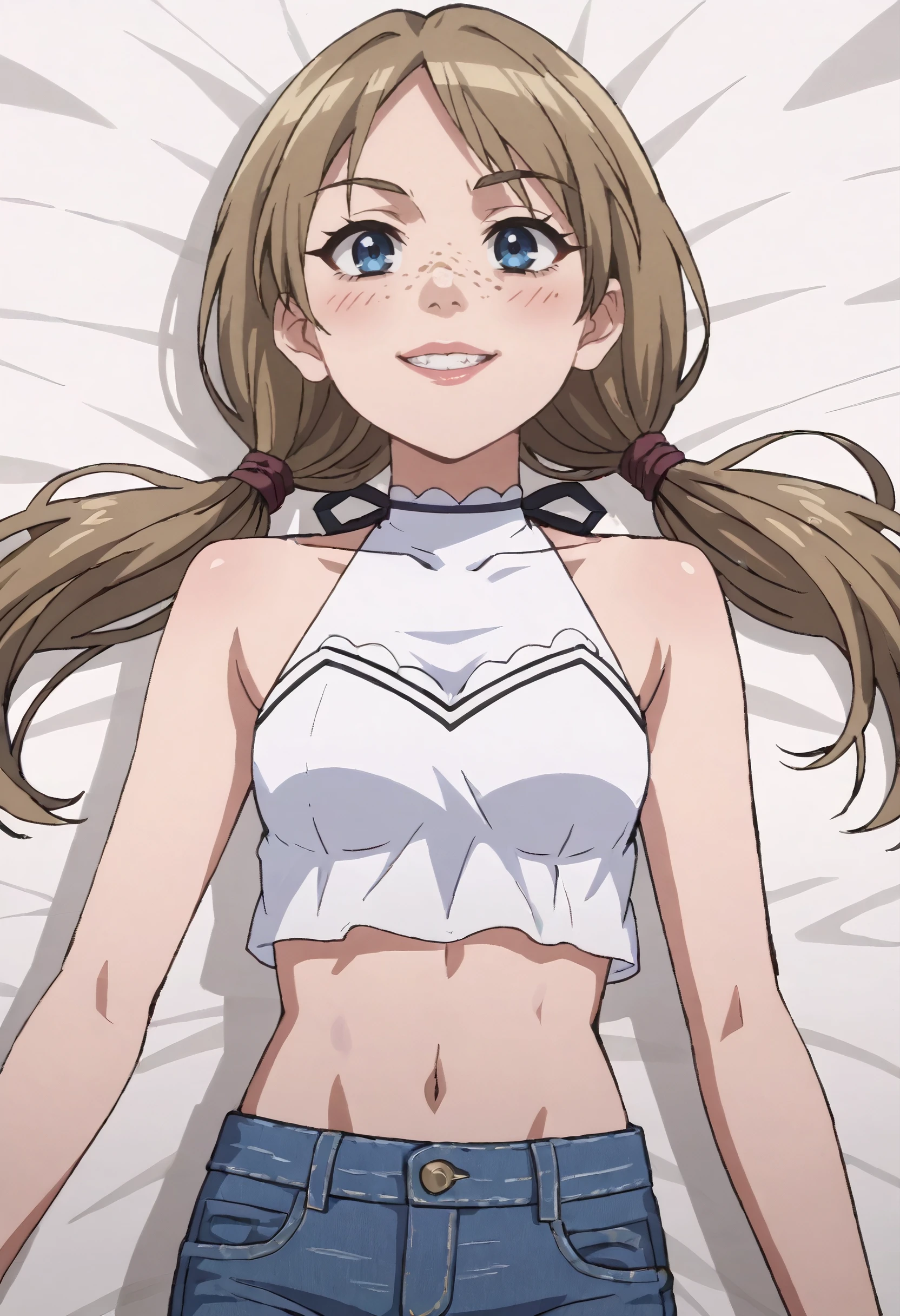 MOKKathy, long hair, brown hair, low twintails, twintails, freckles, blue eyes,