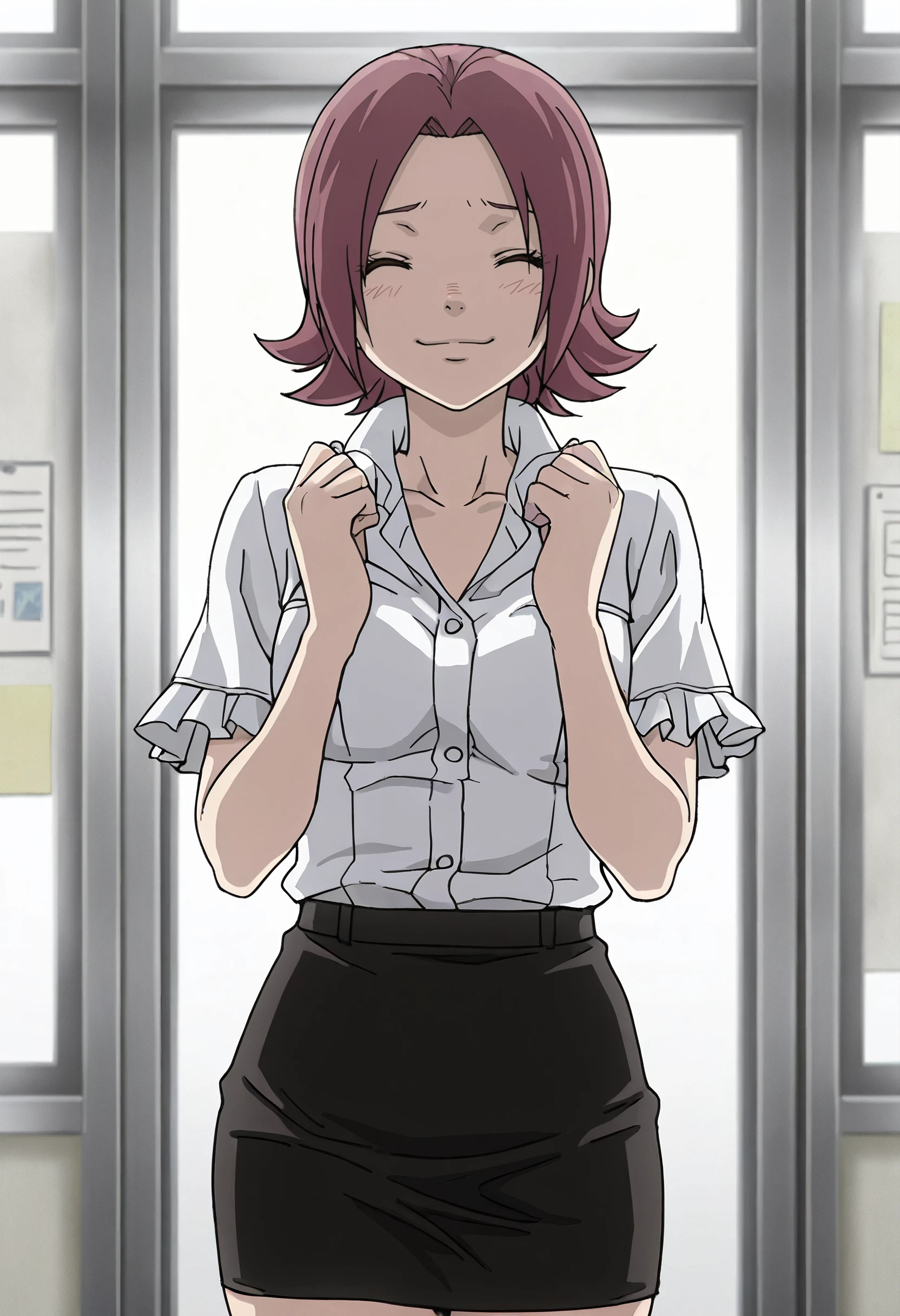 ZetHanako, short hair, red hair, brown eyes, flipped hair,