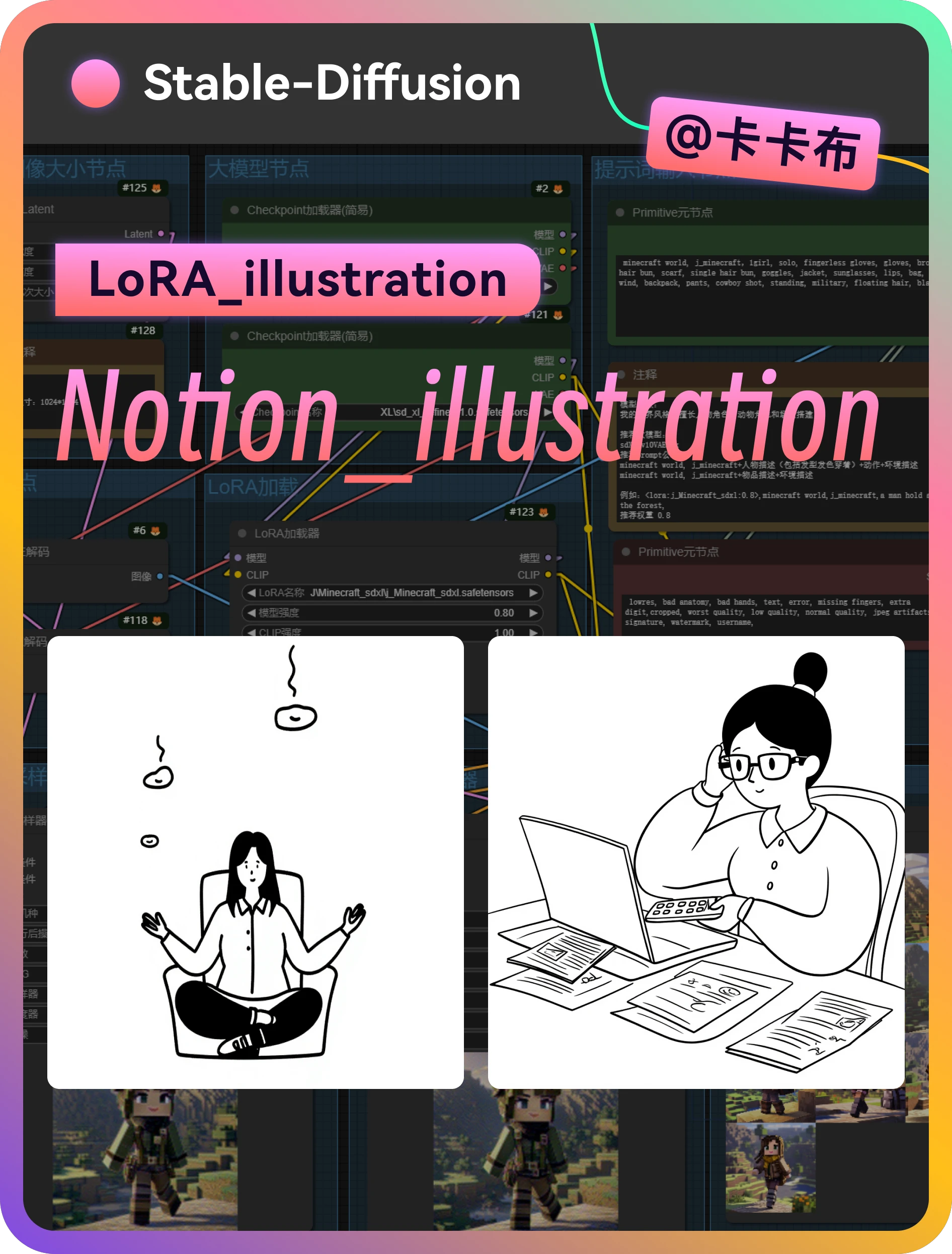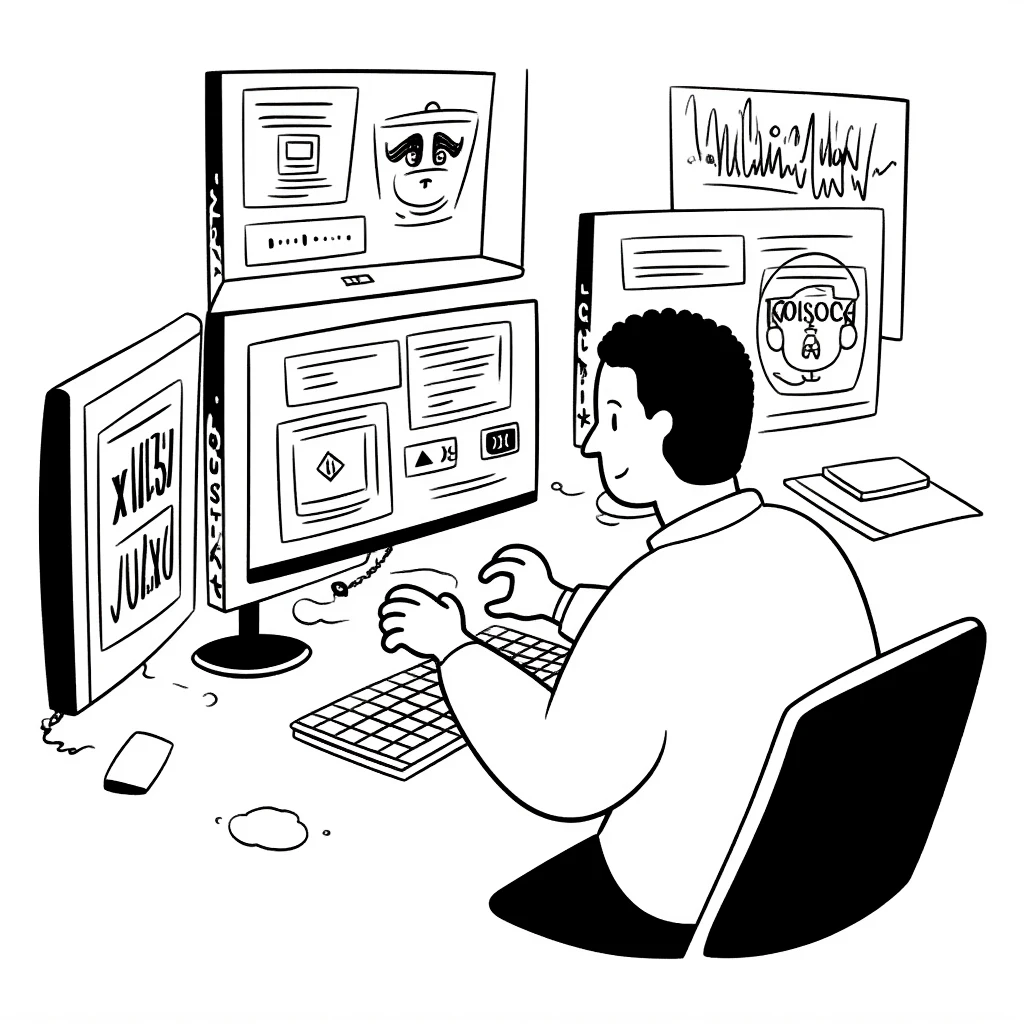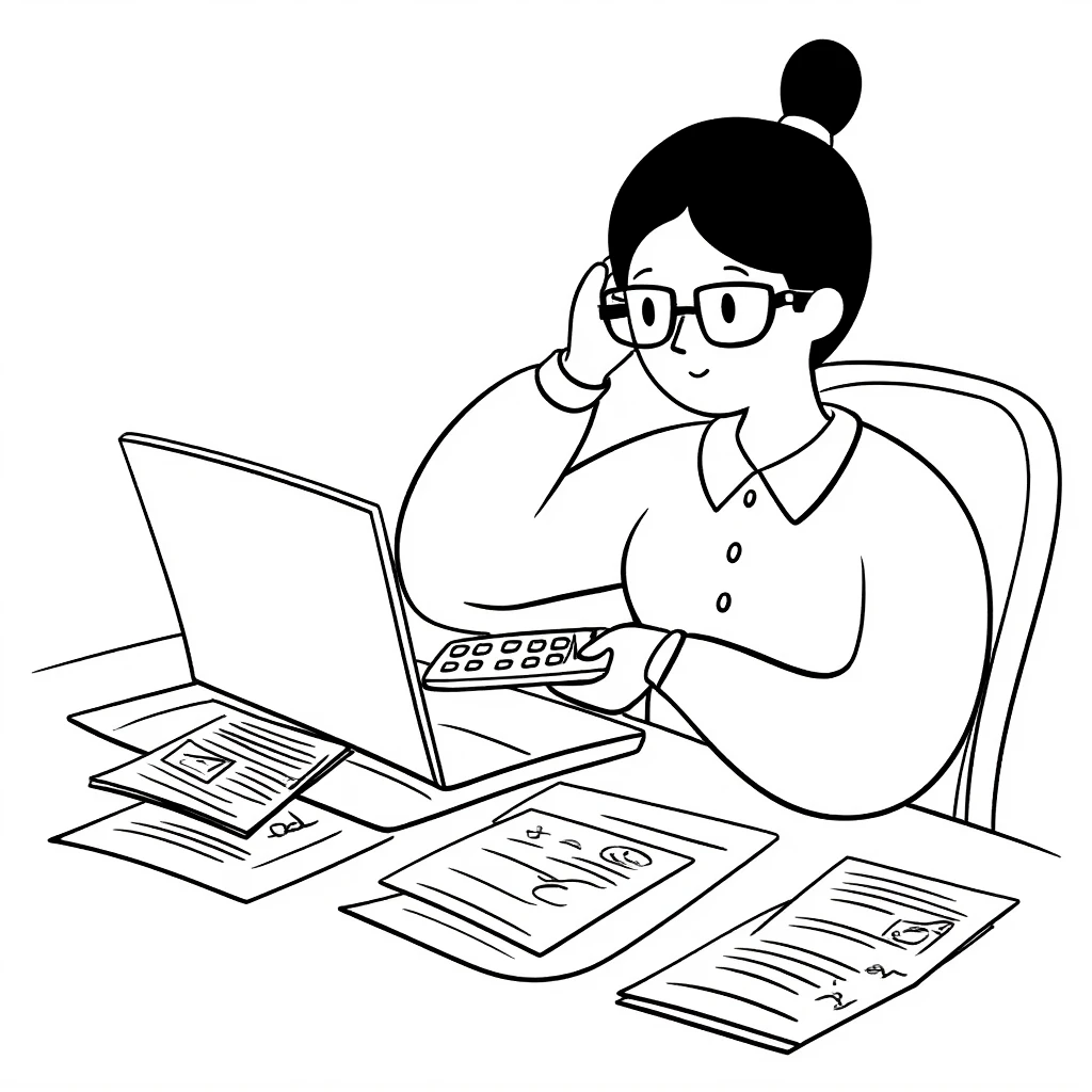 This model is an illustration in the black and white line style of Notion