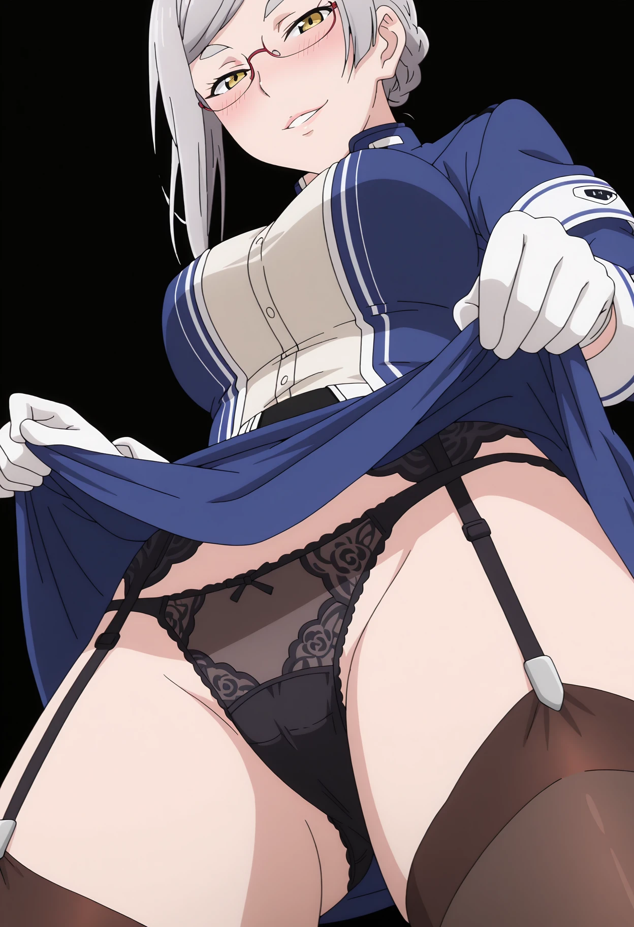 gloves, white gloves, military, military uniform, jacket, thighhighs, skirt, garter straps