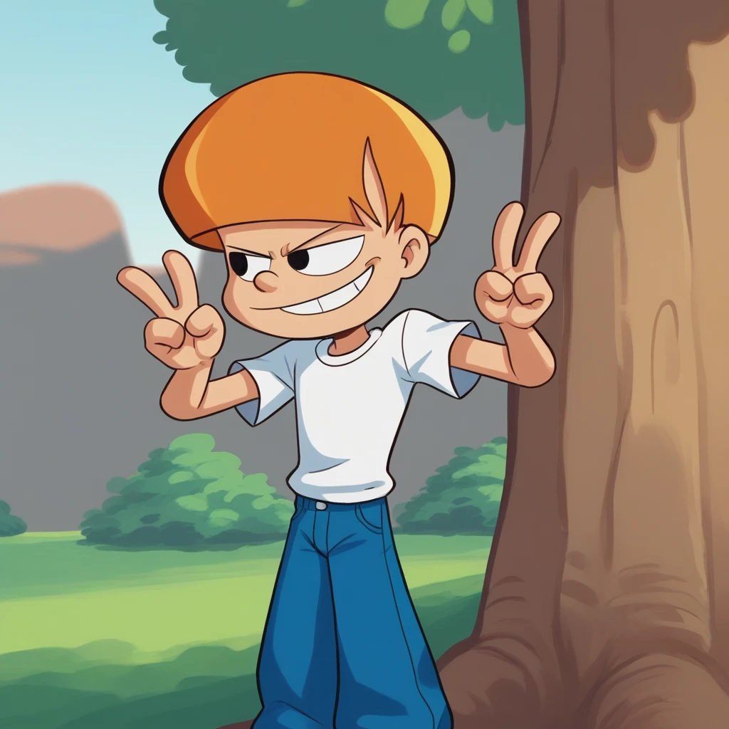 Tom, 1boy, solo, orange hair, short hair, black eyes,
