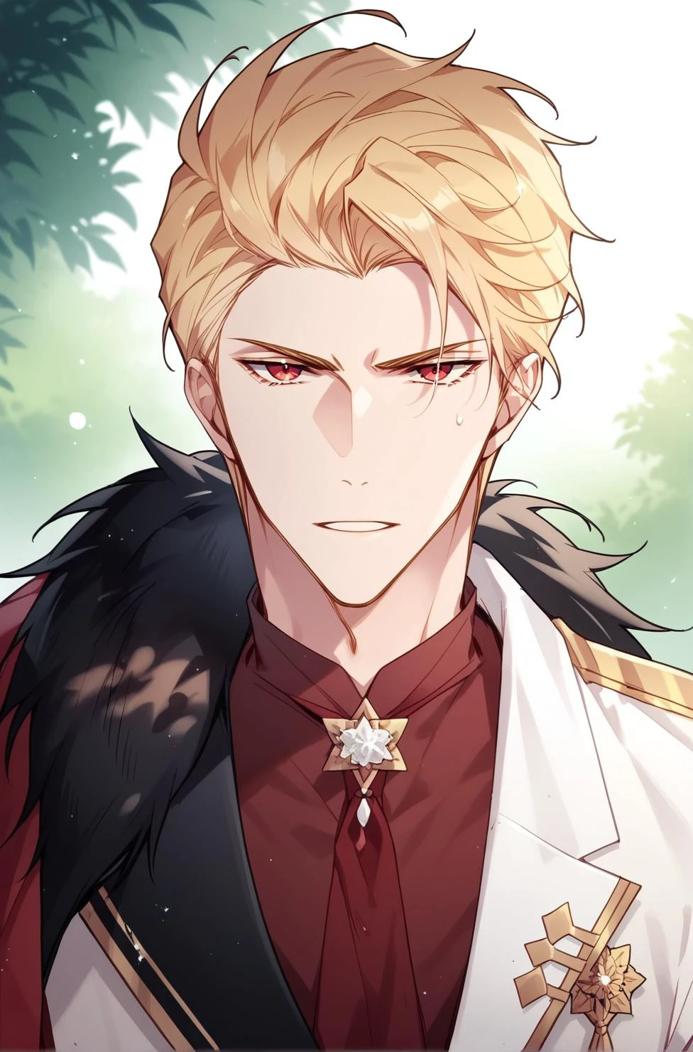 Prompt: callisto, callisto regulus, blonde hair, red eyes