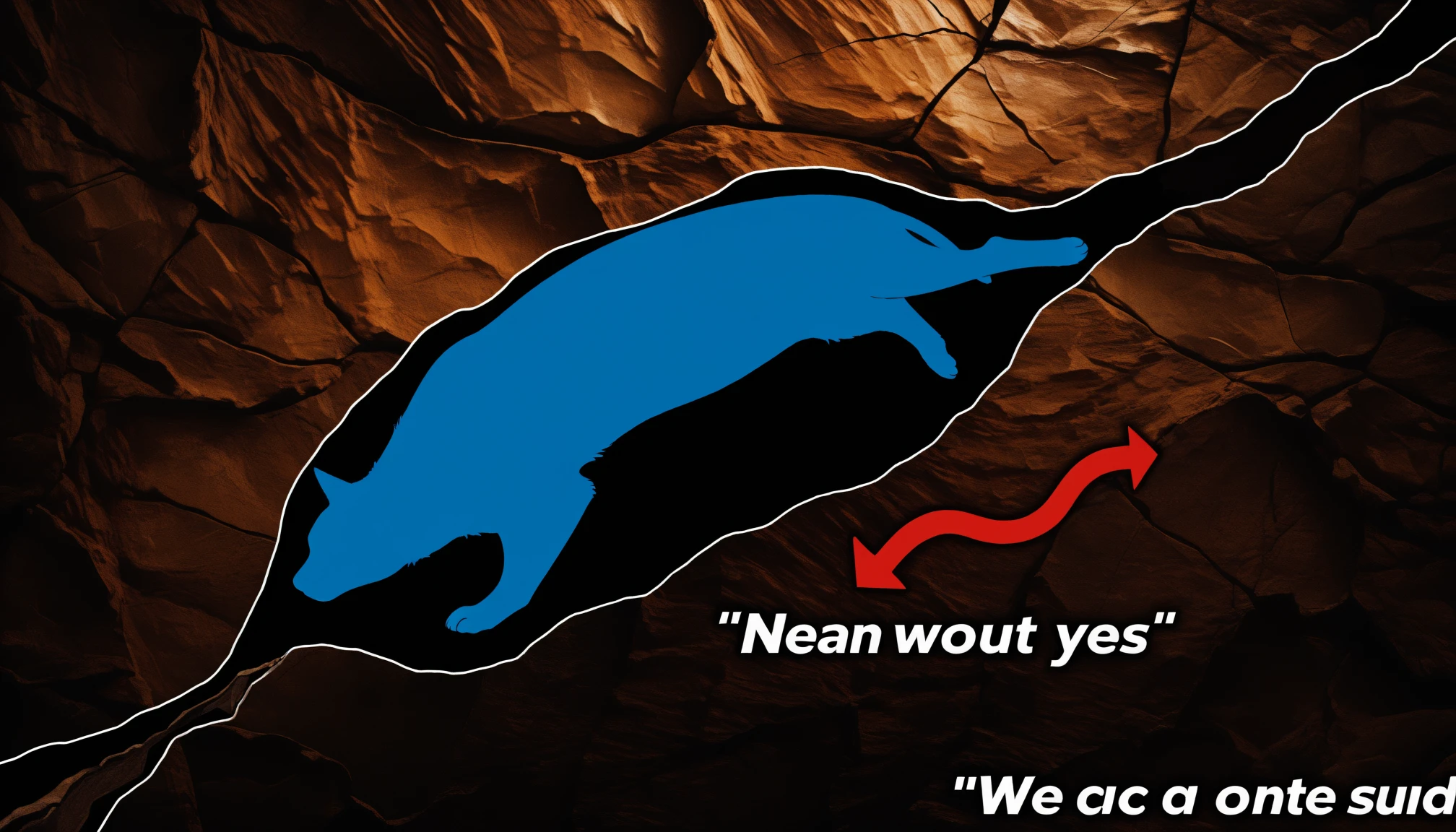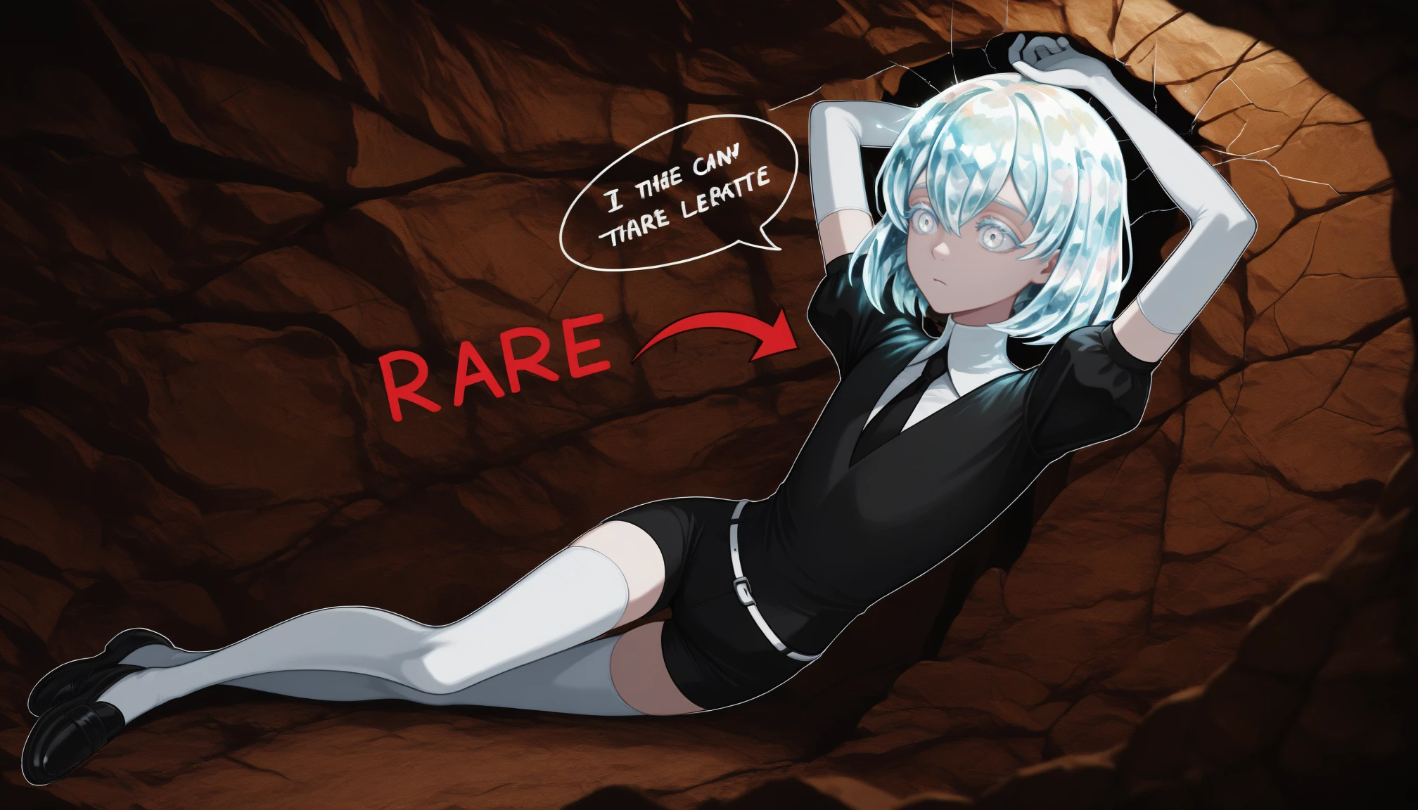 Tags:full body, white outline, silhouette, cave, crack, english text, arrow \(symbol\)