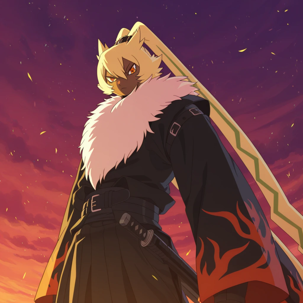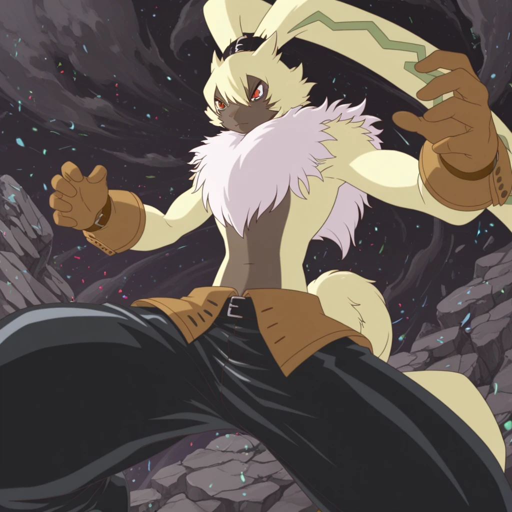 red eyes, furry male, fur collar, digimon, gloves, pants