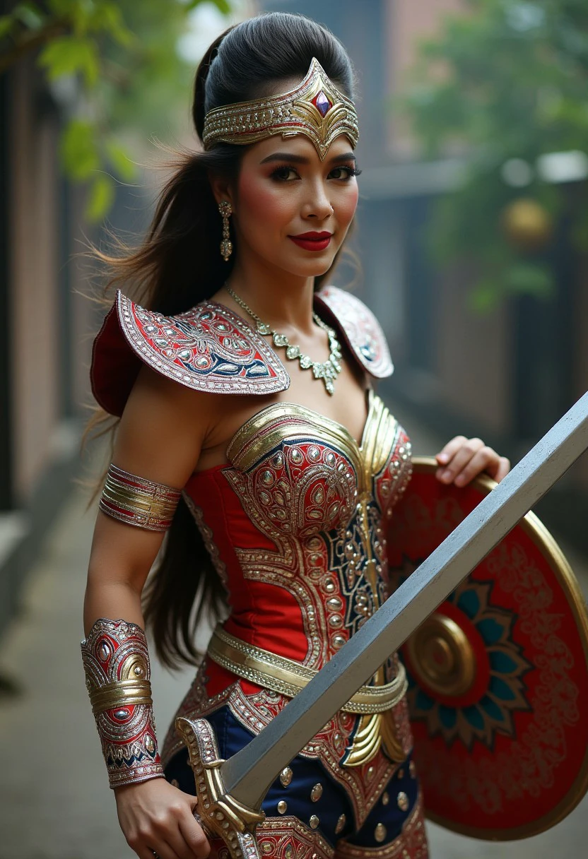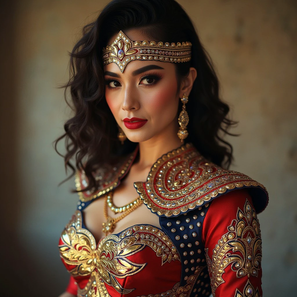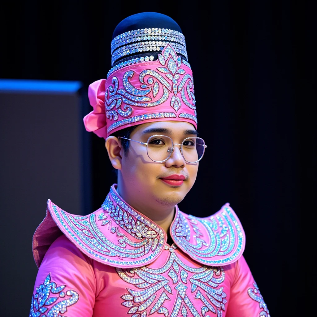 Likay is famous for its flamboyant costumes. Heavy make-up, from the darkest black eyeliner to the brightest red lipstick, and colorful, glittering, fake jewels for both men and women are standard. Responsible for most of the outfitting themselves, the actors not only bring their costumes but also create their own masks. For men, the costume includes colorful or golden stuffed knickerbockers, long white socks, blouses and vests with excessive ornaments, glittering earrings, and plumed headbands. The women wear clothes in both modern and traditional fashions of shining silk and satin