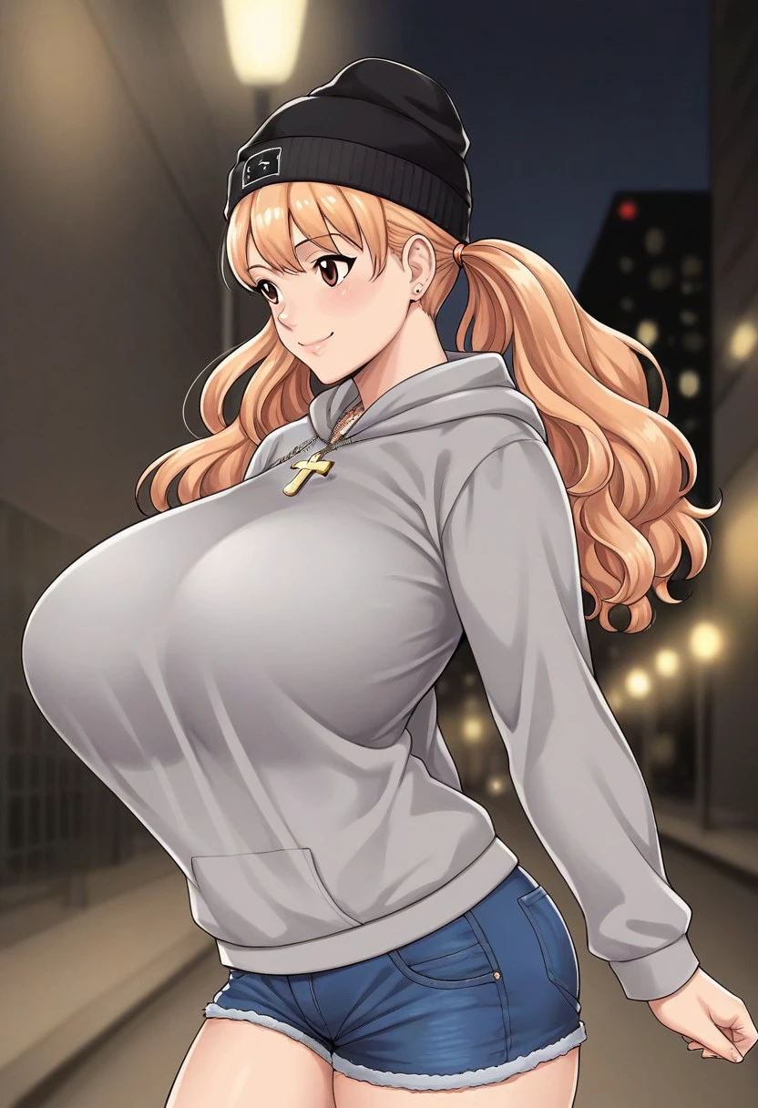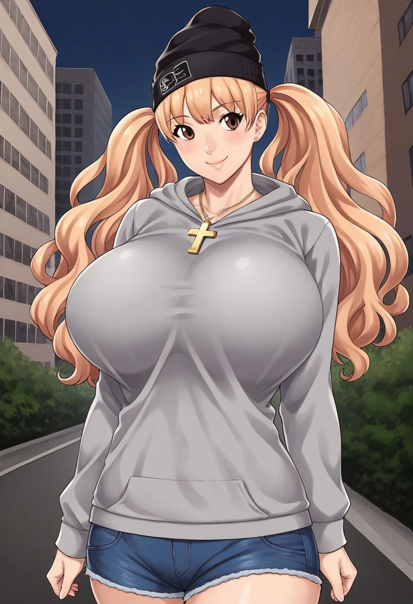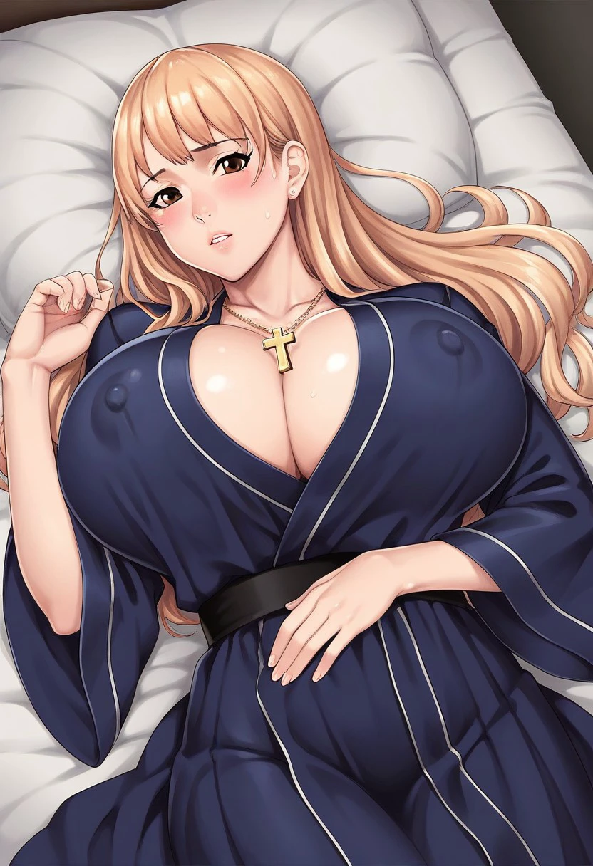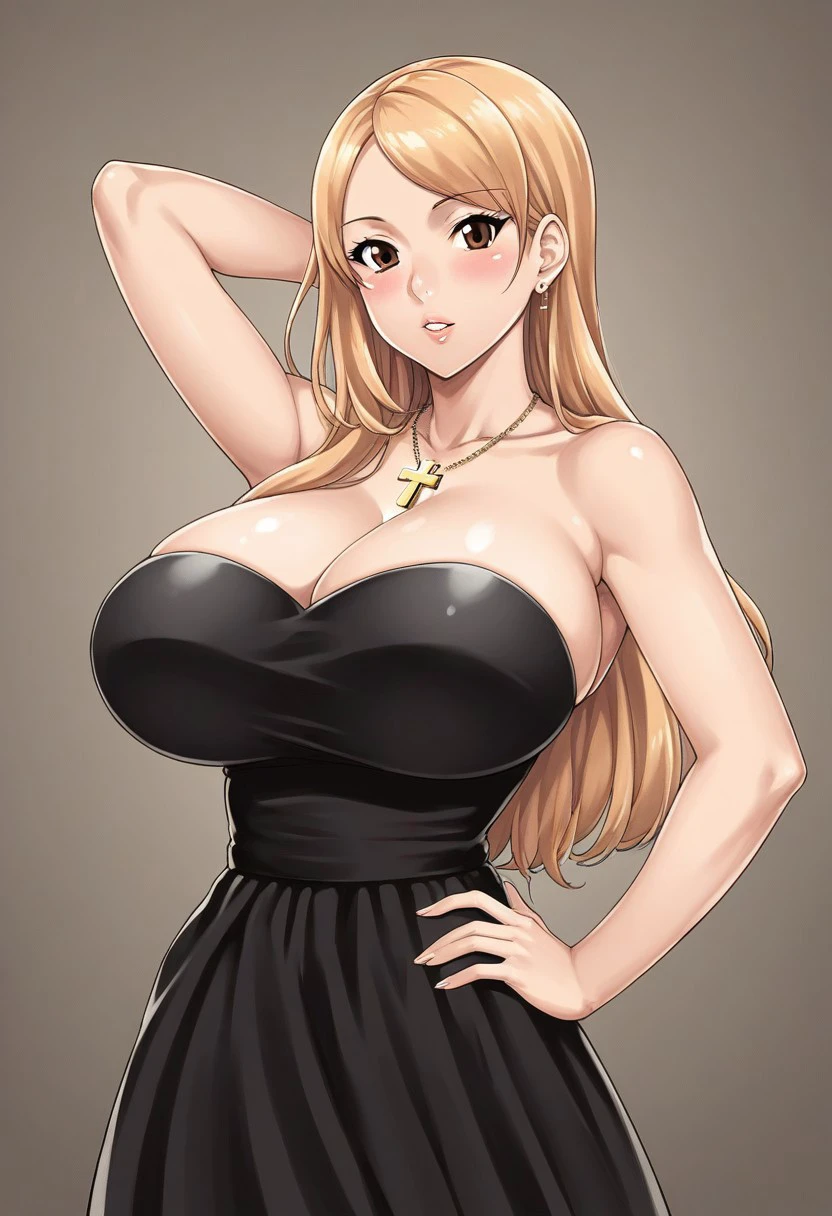 Tags: Satsuki Saijou, long hair, twin ponytails, blondish-yellow hair, wavy hair, brown eyes, huge breasts, gold cross necklace,