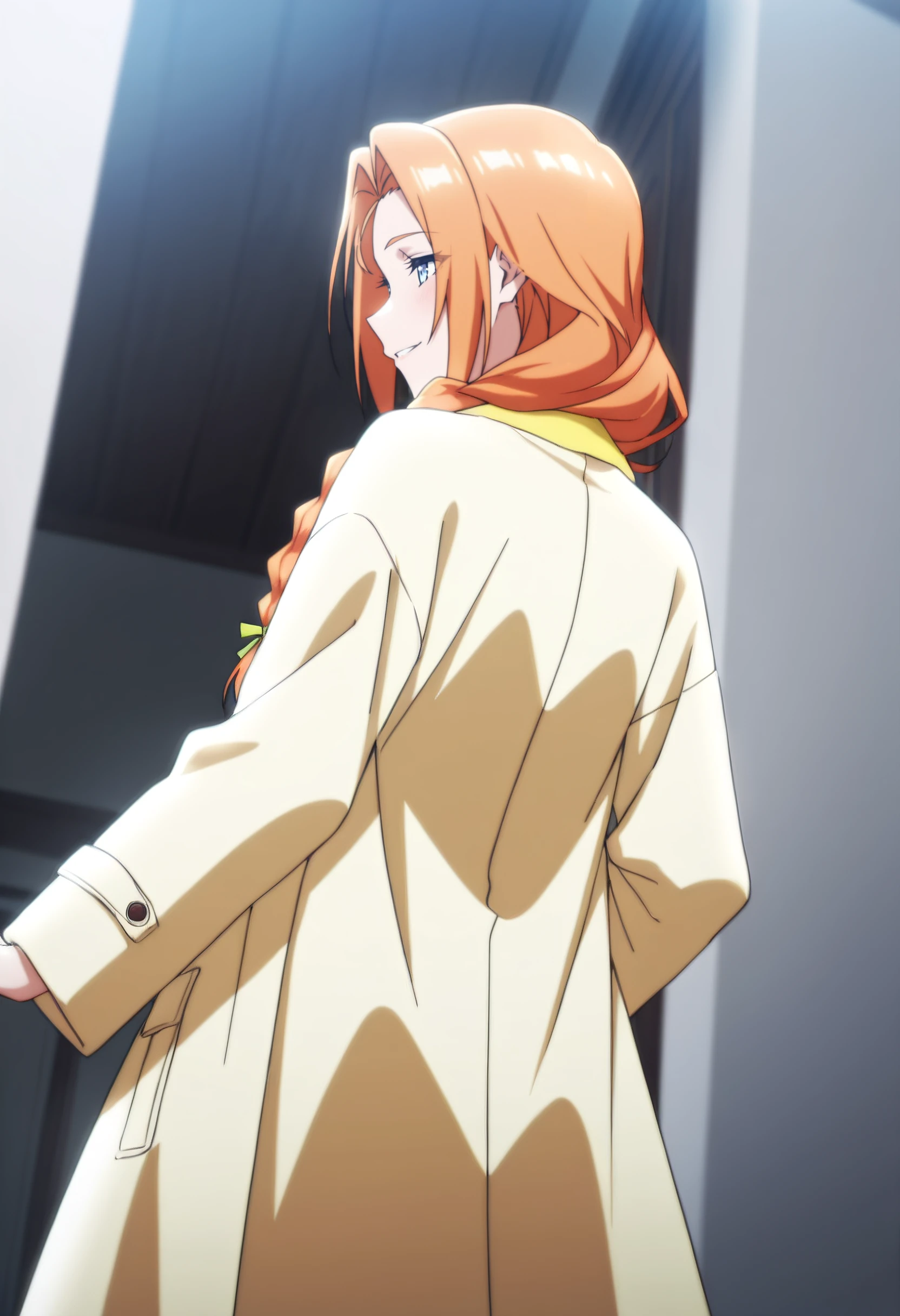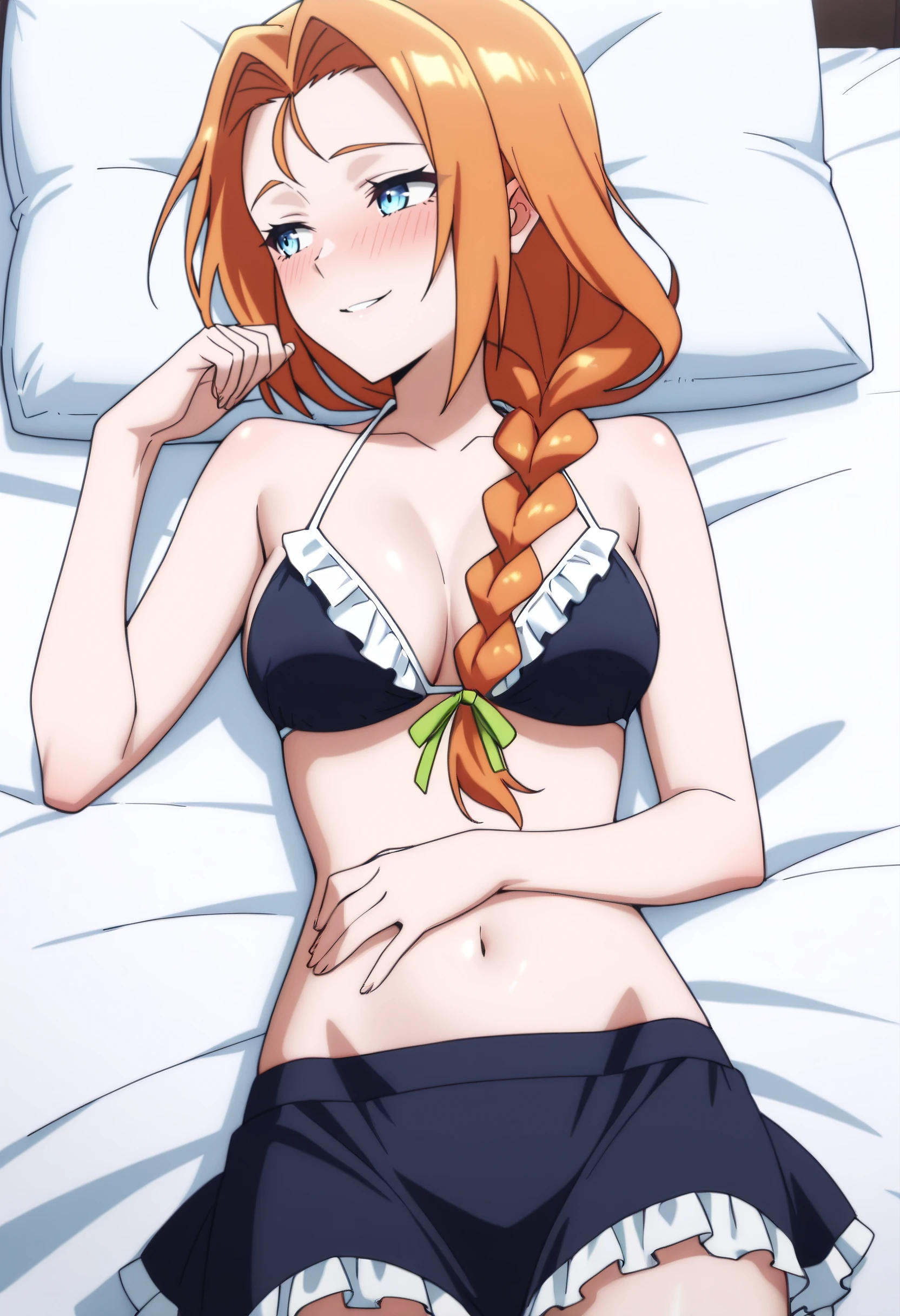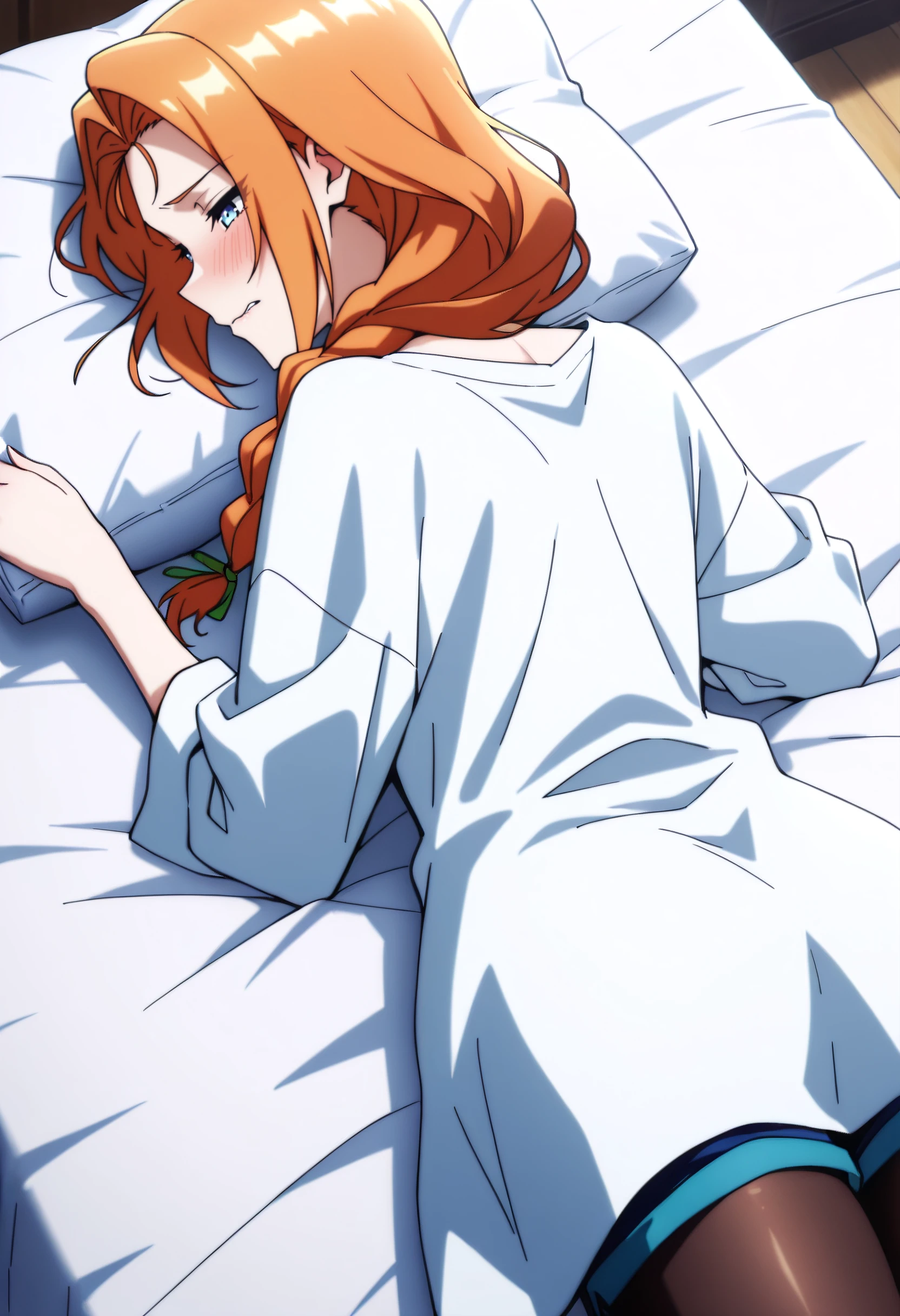 BNBAisha, long hair, blue eyes, braid, bangs, twin braids, hair over shoulder, single braid, orange hair, hair intakes, parted bangs,