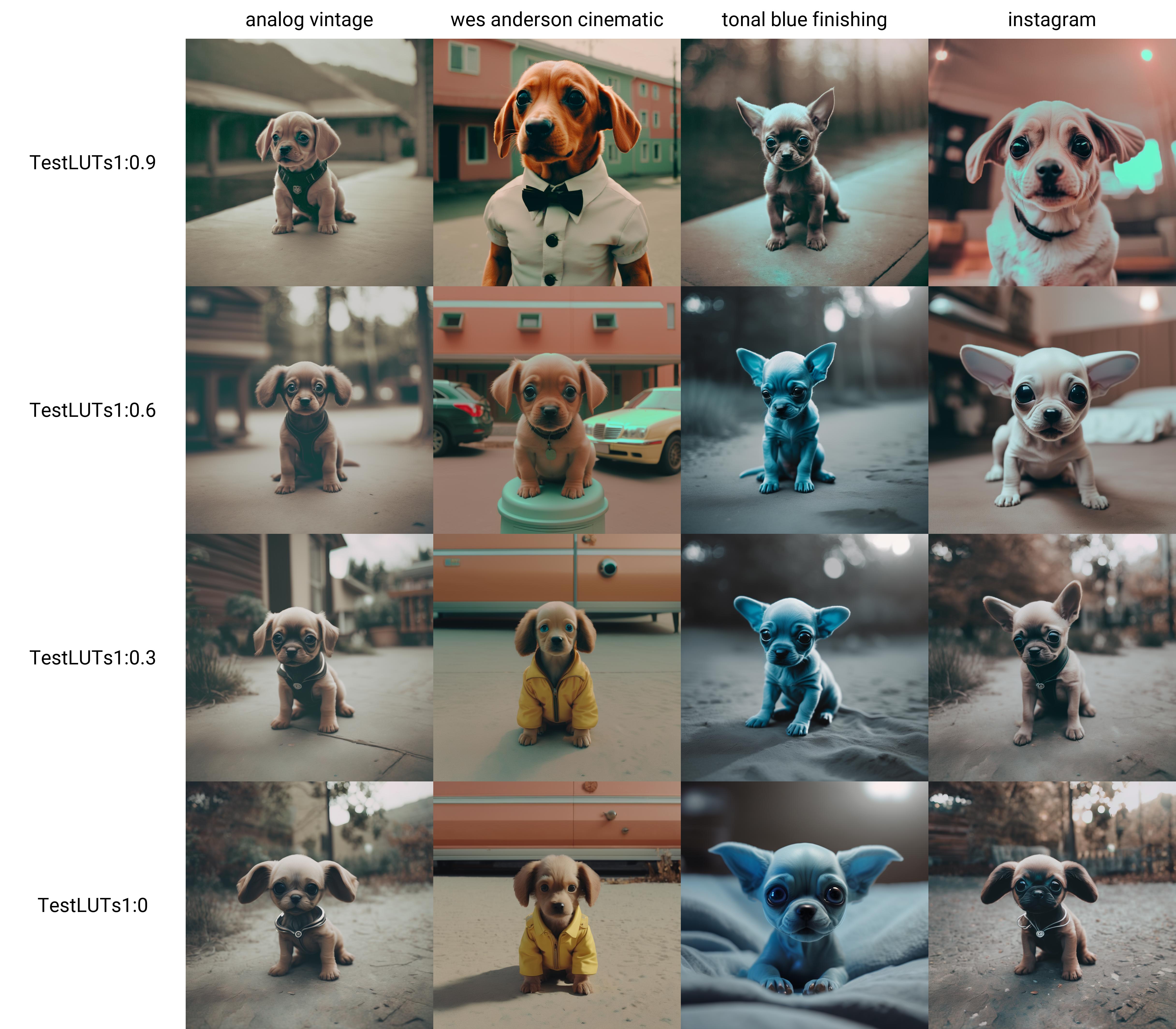 Trained a LoRA on around 800 LUTs, including some movie-related ones, finishing LUTs, wedding, analog, cinematic, drama, vintage, etc.