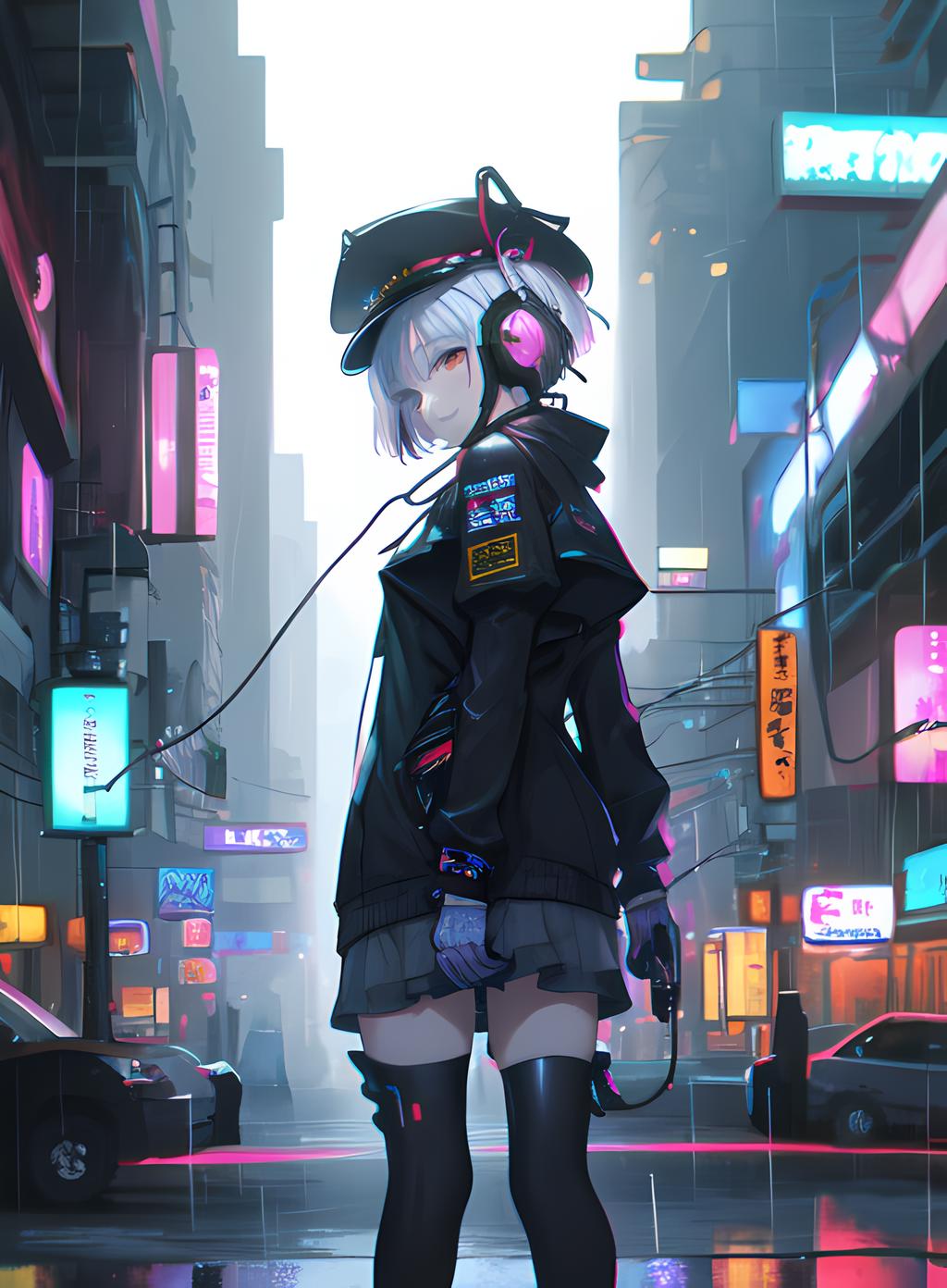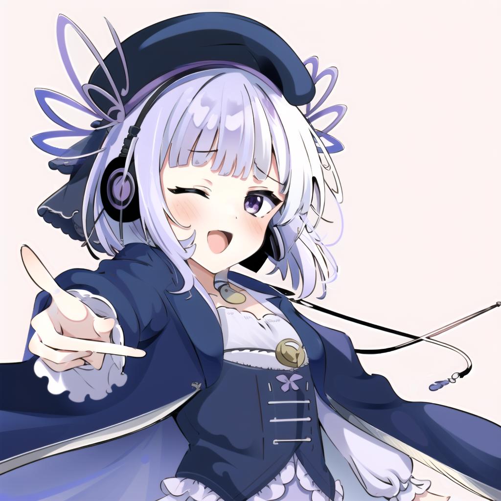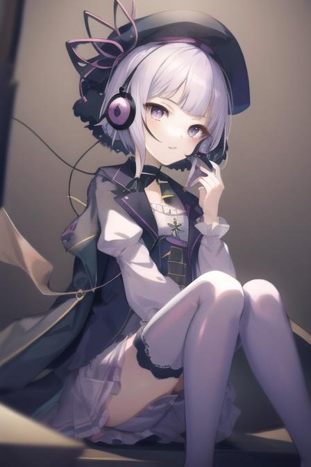 trigger word: lu_na, hat, white thighhigh, white hair,short hair,headphone