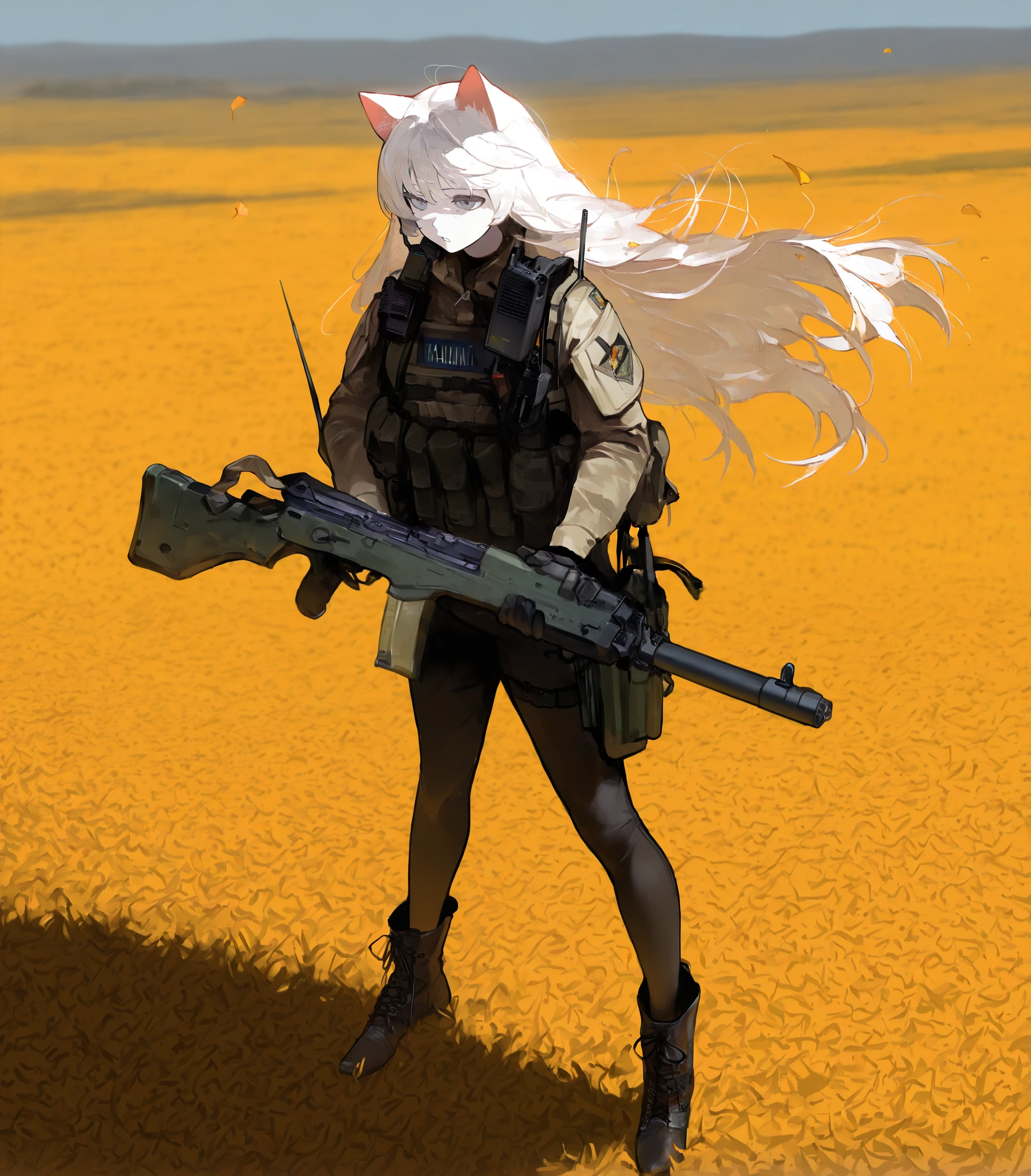 The other fancy tags that exist already, but were somehow forced into the LoRA are: kalashnikov_rifle, assault_rifle, bulletproof_vest.