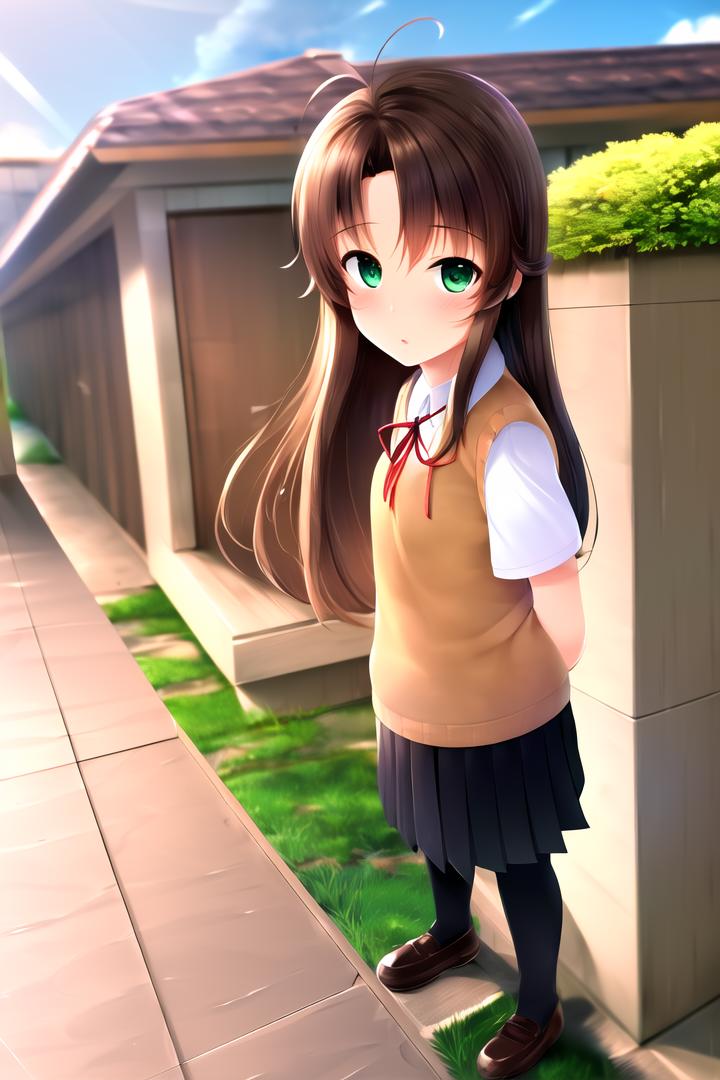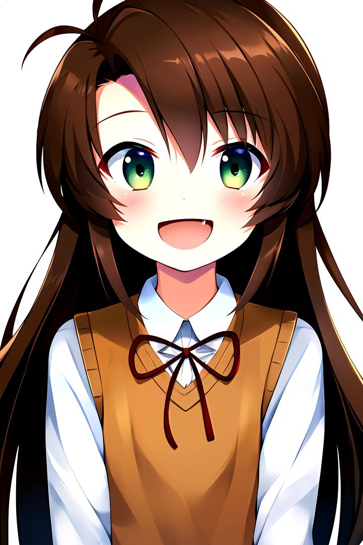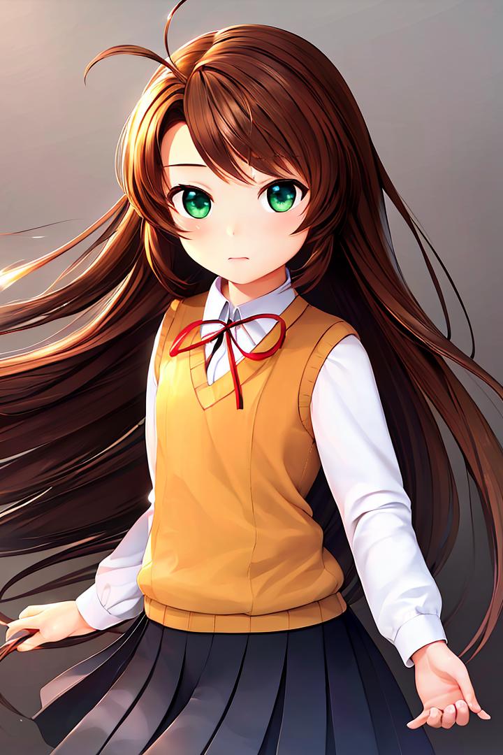 Trigger word / Appearance: koshigaya komari, brown hair, long hair, antenna hair, green eyes