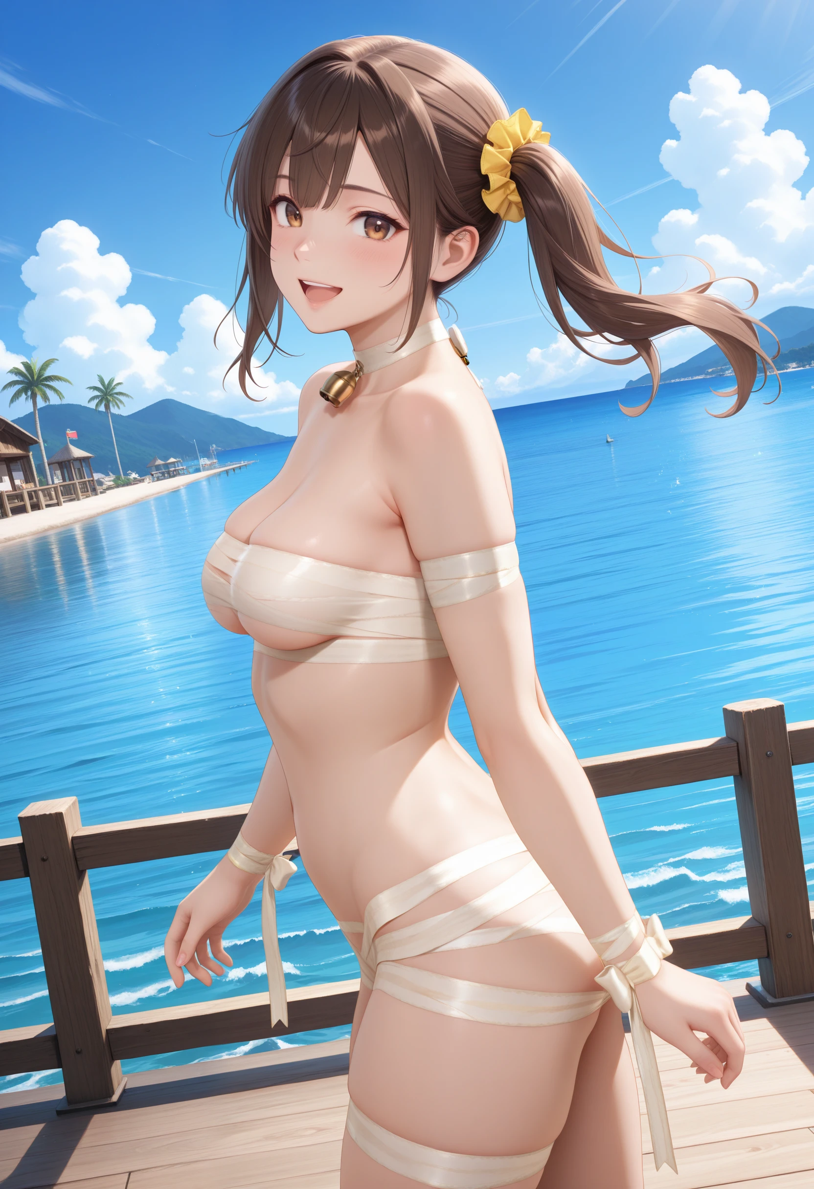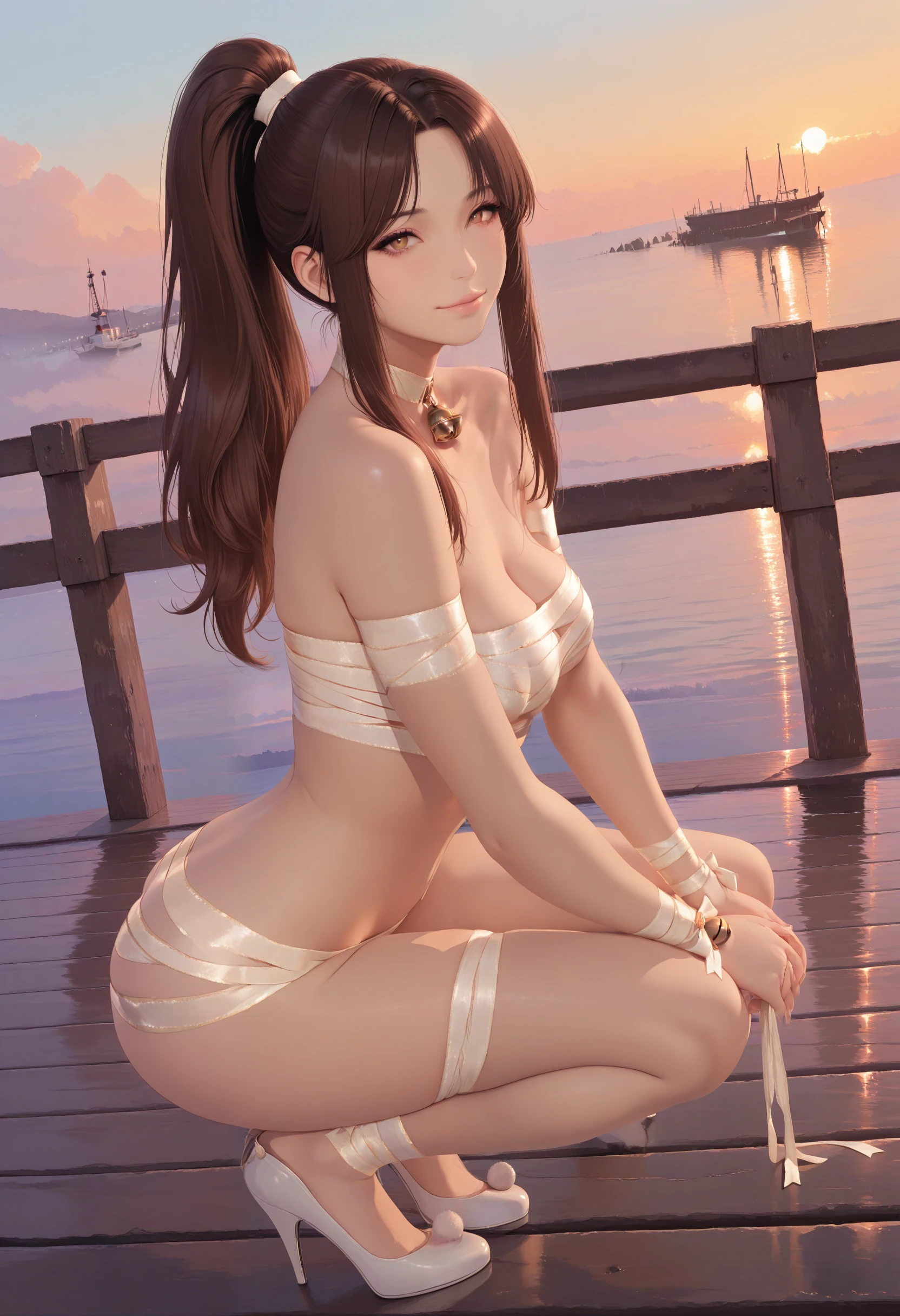 choker,neck bell, bandage,mummy costume,wrist ribbon,white high heels