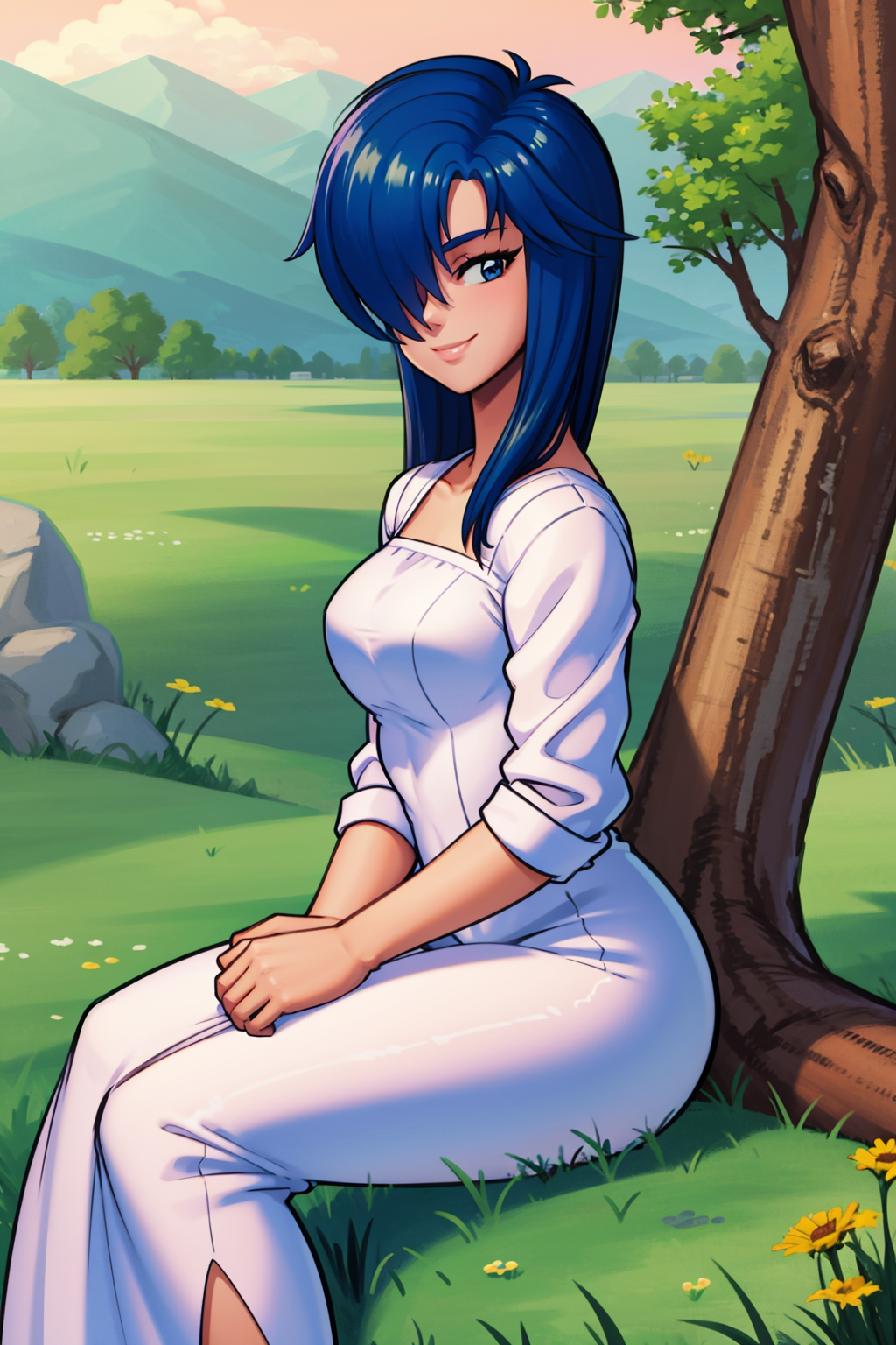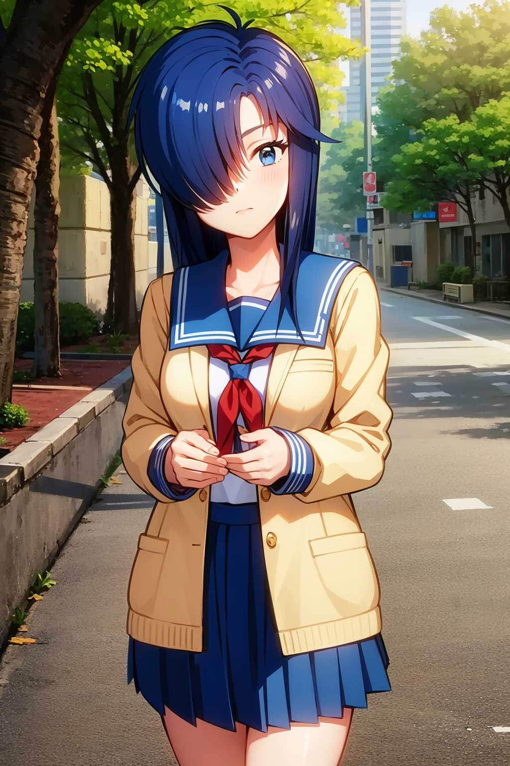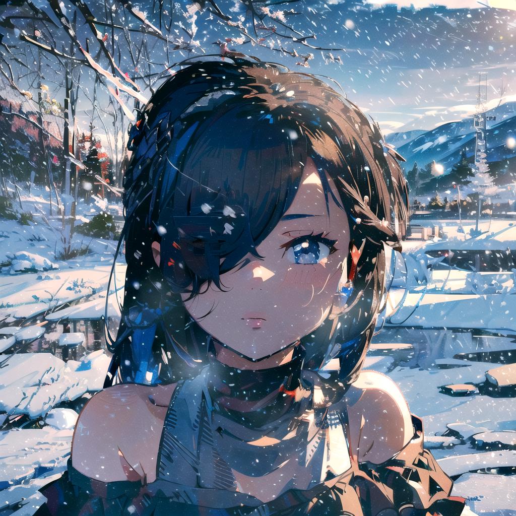 Other prompts : blue eyes, blue hair, hair over one eye,
