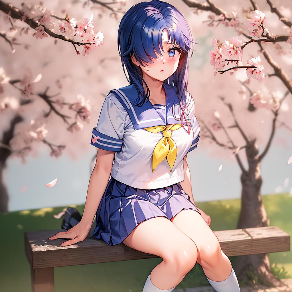 Schoolgirl outfit : school uniform, long sleeves, blue skirt, serafuku