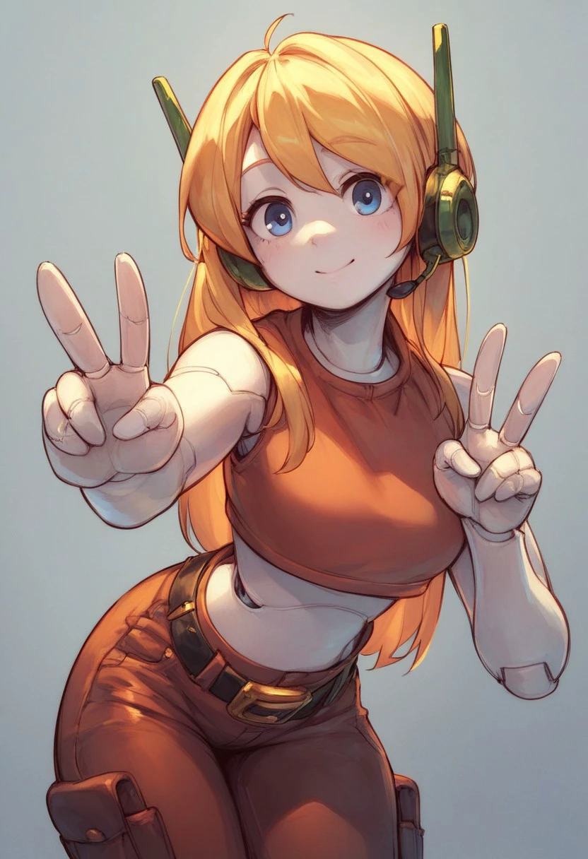 crop top, pants, belt, headset