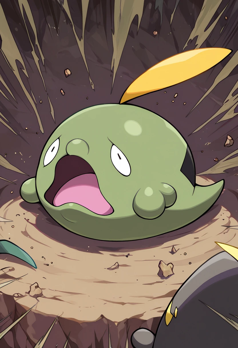 Gulpin trigger words: gulpin, pokemon \(creature\), green skin, o3o, closed eyes
