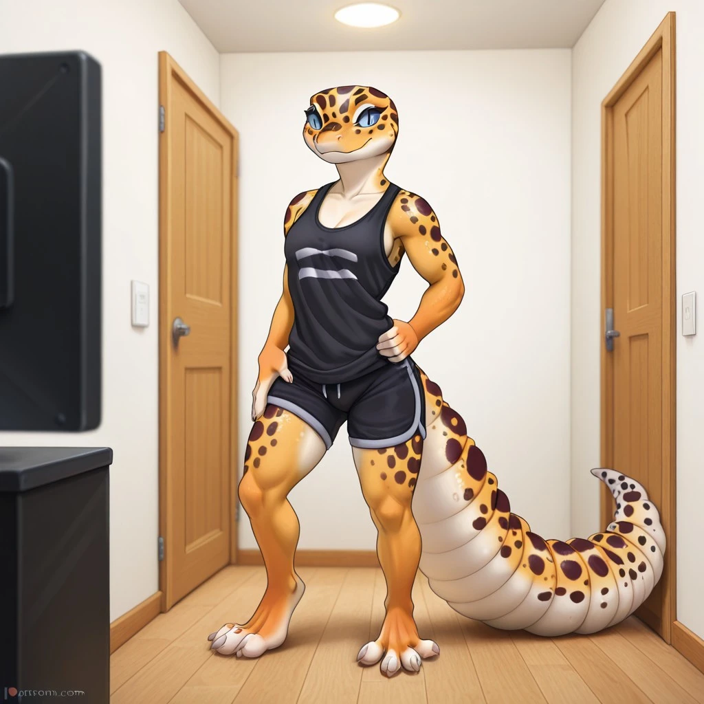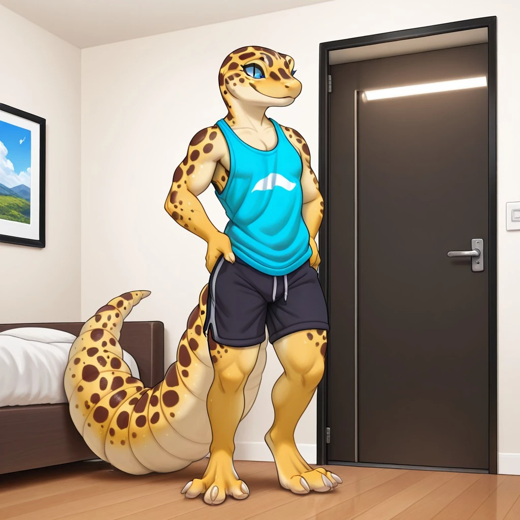 Lgeckoil, anthro, leopardgecko, reptilian, grey sclera, slit pupils, yellow skin, tail