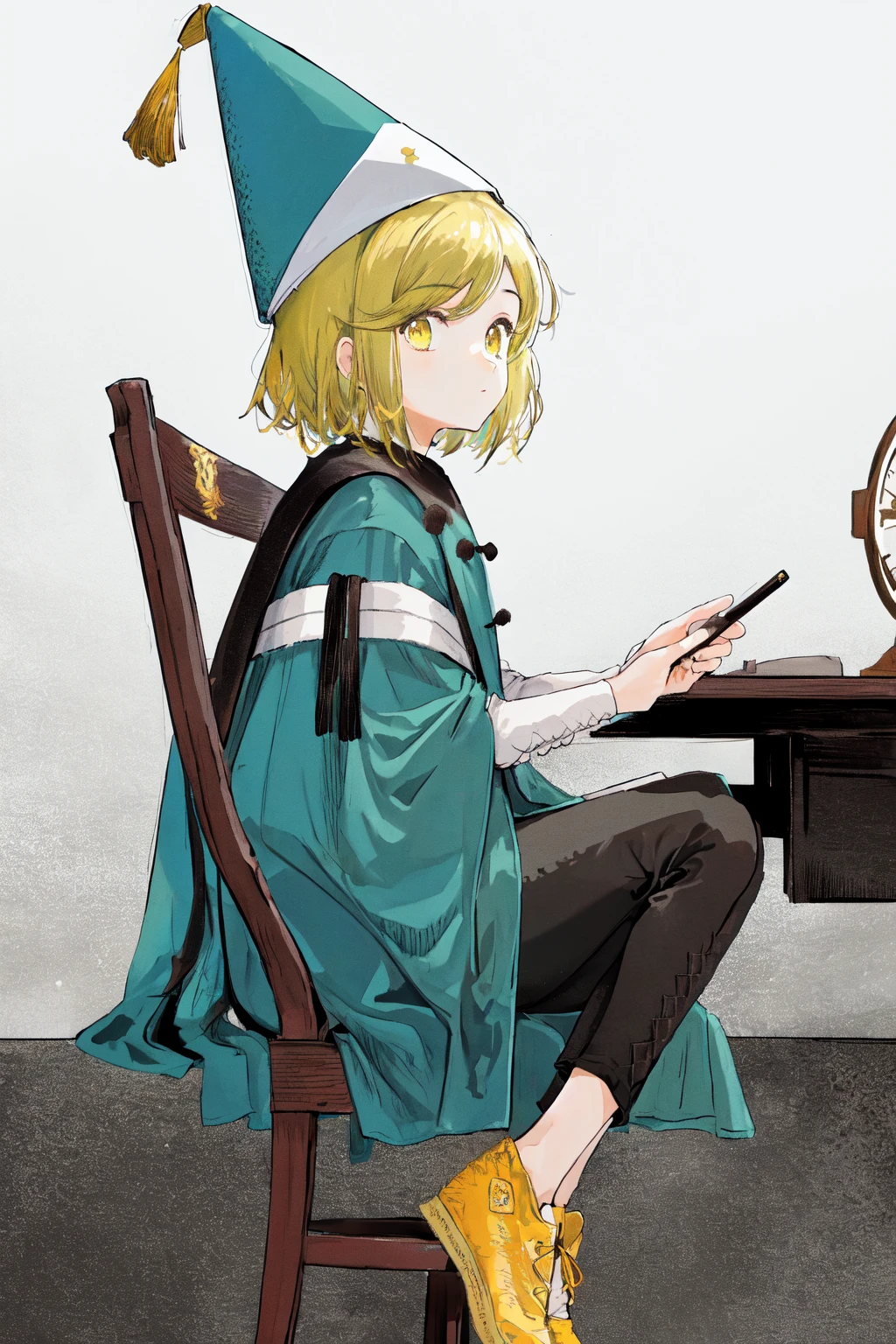 Default outfit: default robe long sleeves white dress black pants