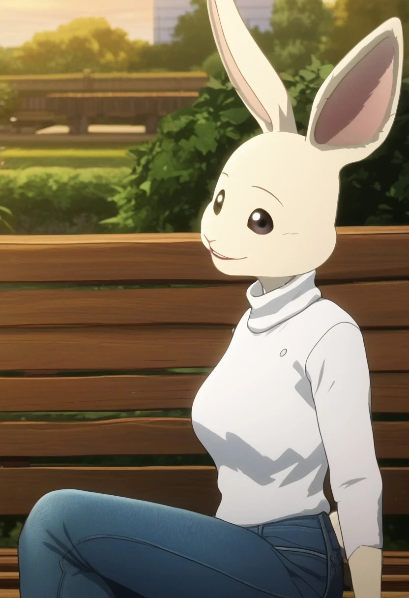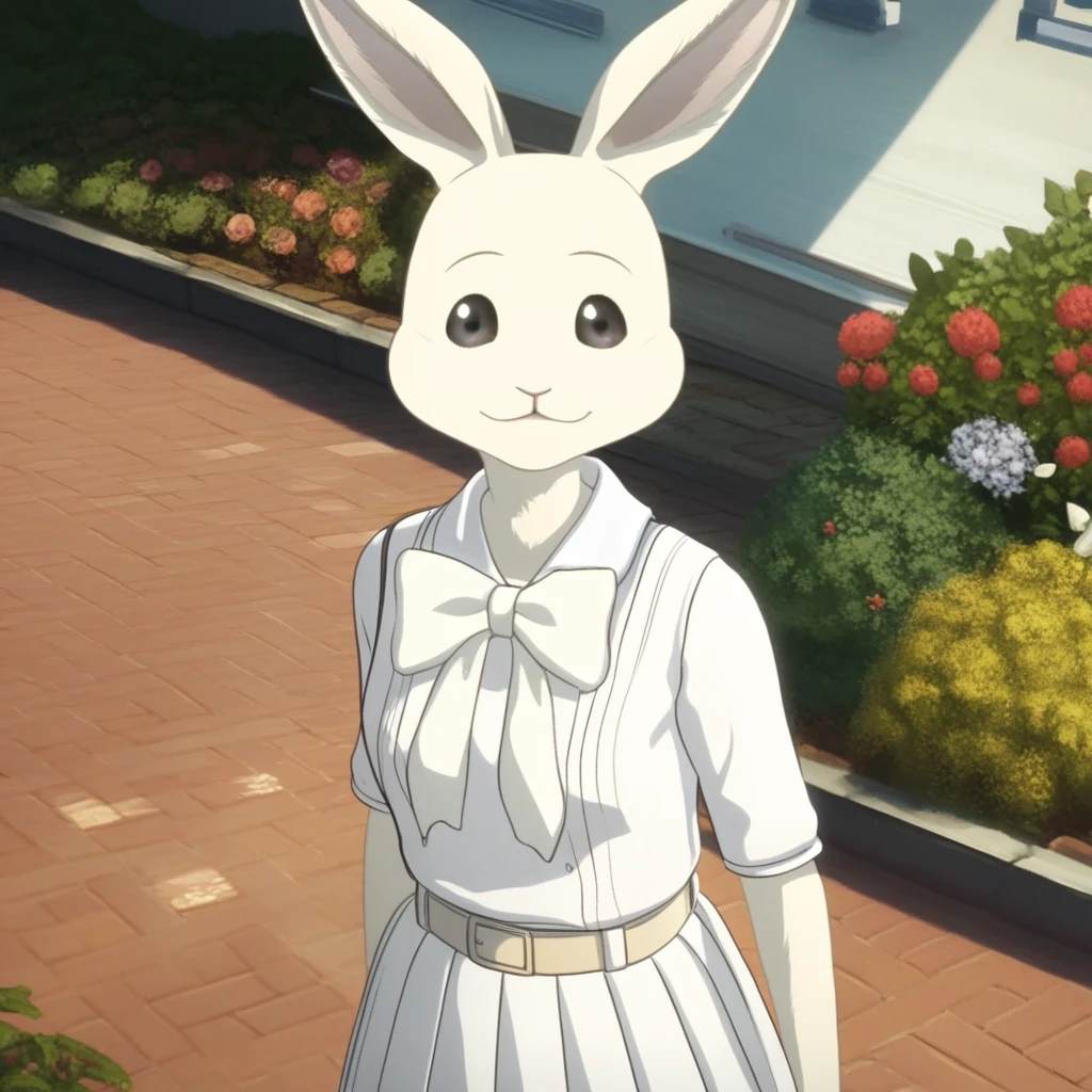 Haru, 1girl, mature female, female, anthro, white rabbit, animal ears, black eyes, light cream-colored fur