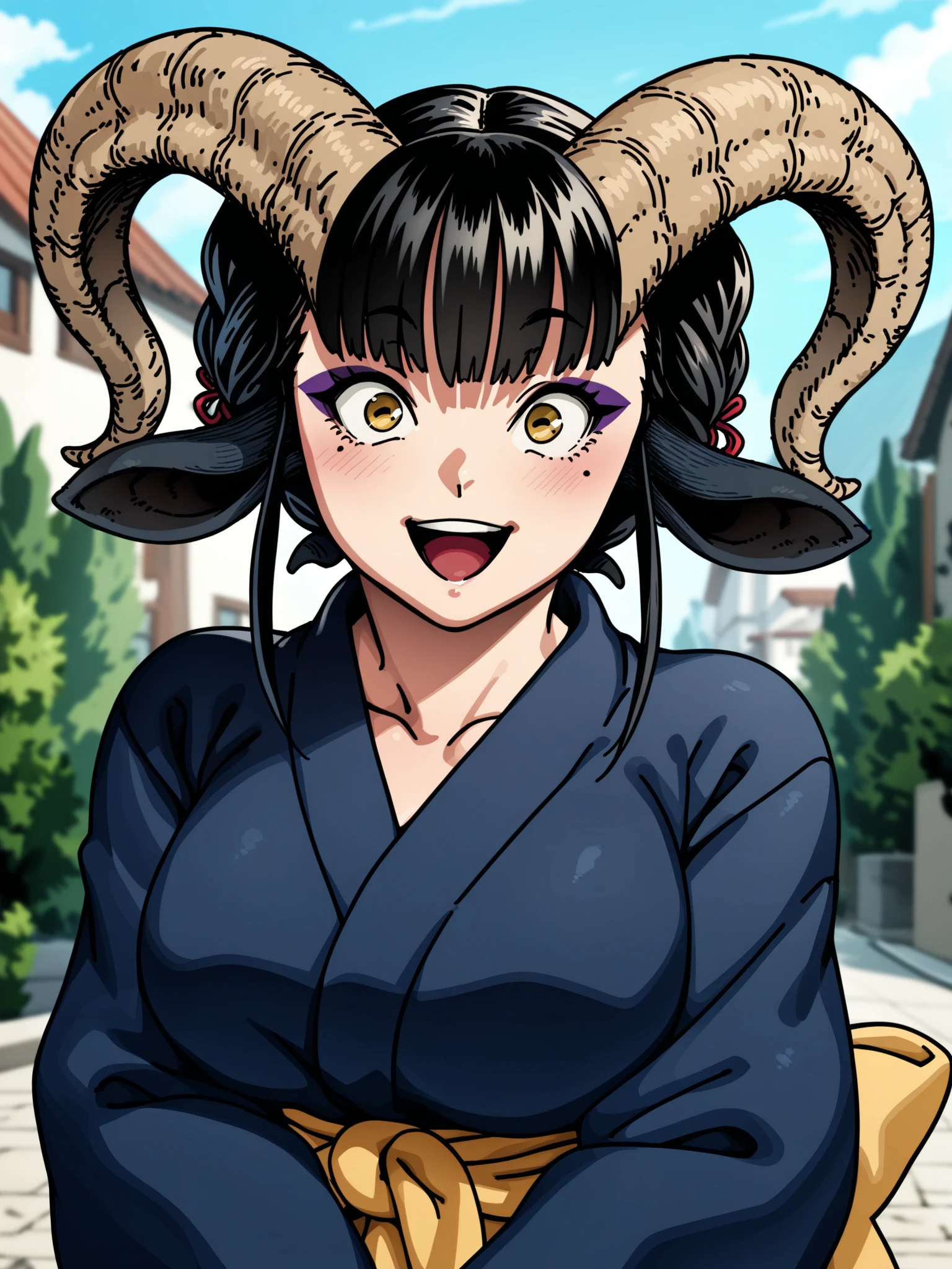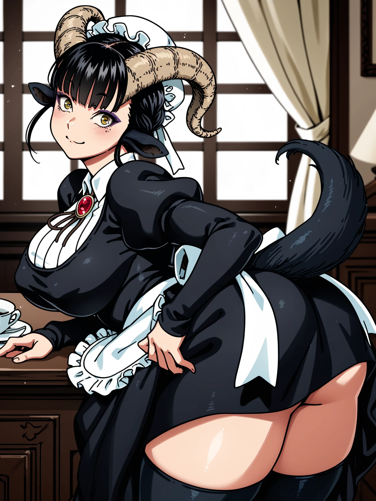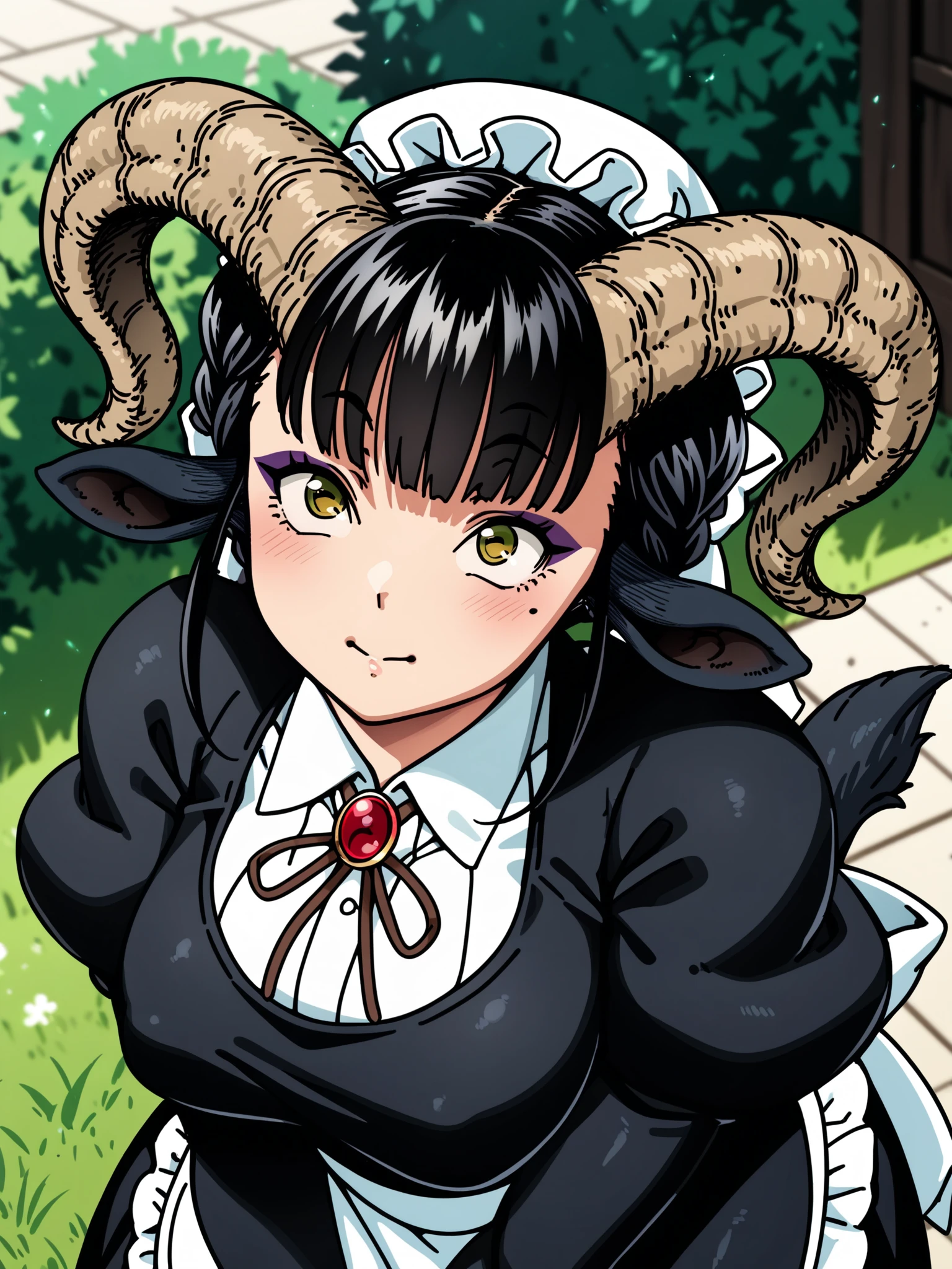 Recommended prompt: ht_maya, satyr, goat girl, goat horns, goat tail, hooves, yellow eyes, eyeshadow