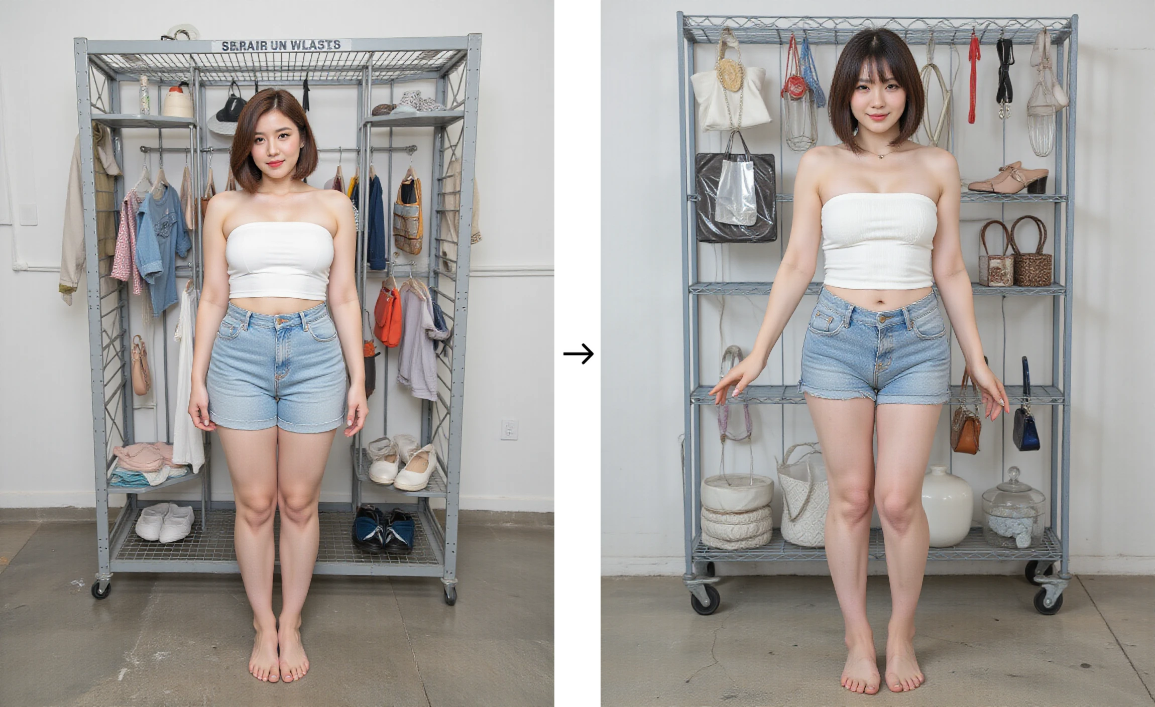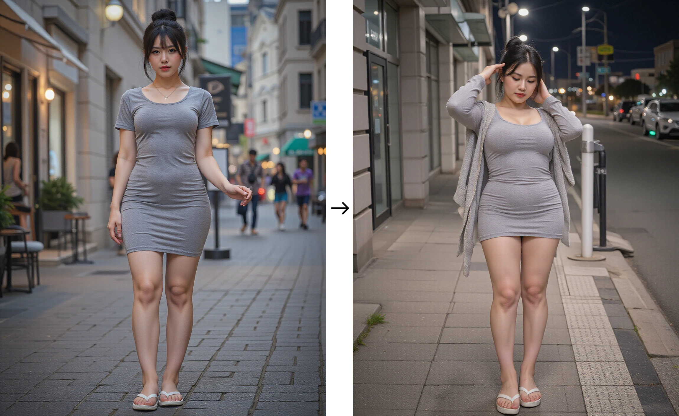 more images with various body orientations and different clothing types need to be added. Otherwise, there's a risk of being influenced by NSFW data, potentially resulting in exposed breasts.