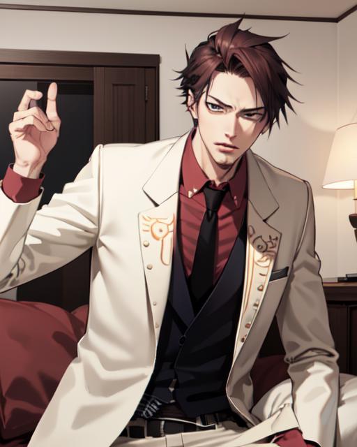 Canonically (Original VN) he has black eyes (B. Battler has red eyes), while PS3 ver. he has blue eyes. So, change whatever you like.