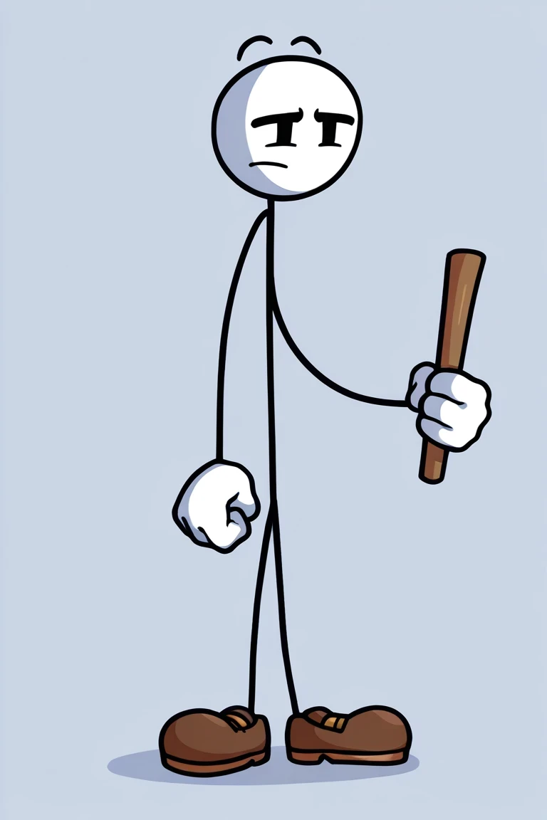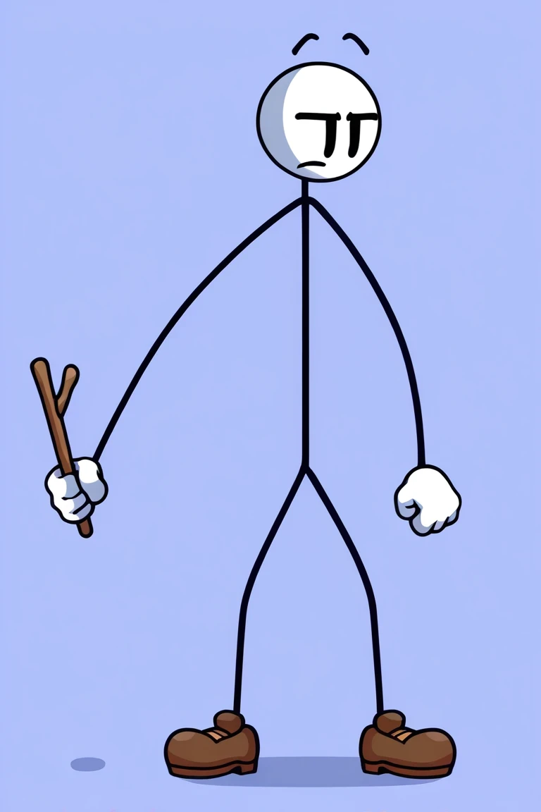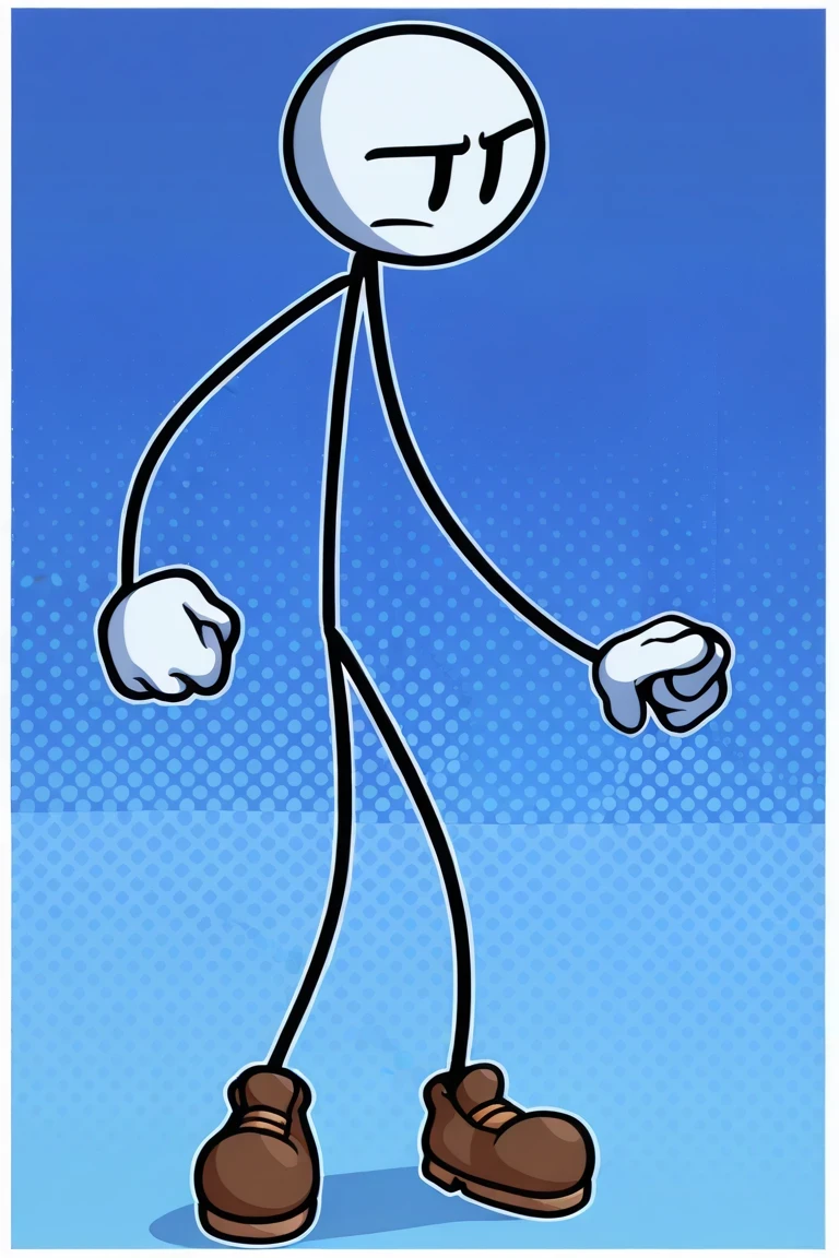 HenryFNFVHS, 1boy, pale white head, circular head, bald, black eyes, no sclera, stick figure, stickman, pale white hands, brown shoes